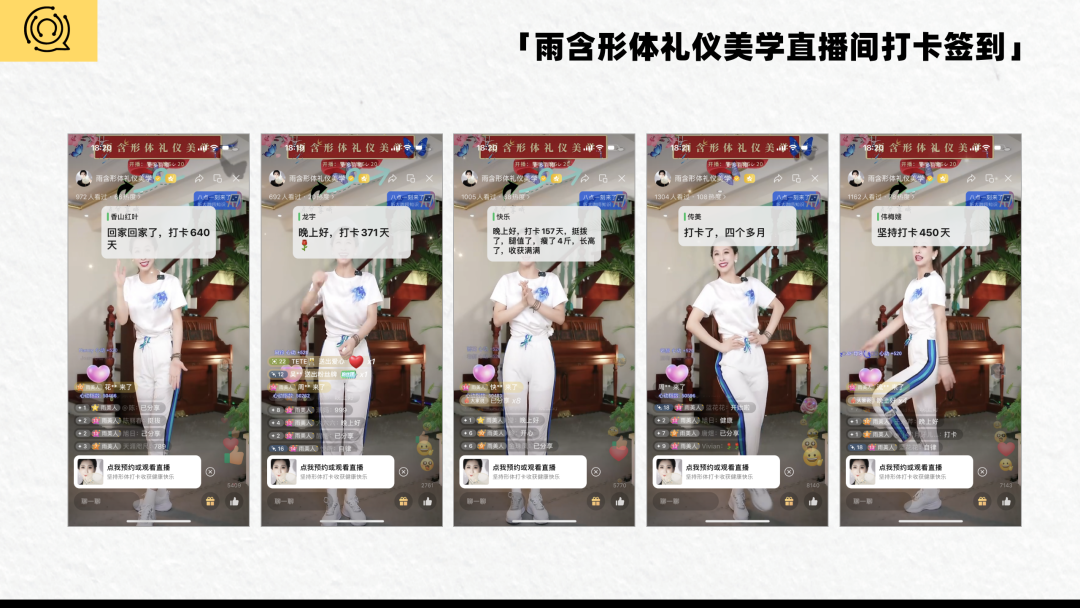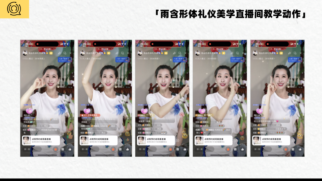 来源 | 鉴锋 文 | 少波 编辑 | Ja "欢迎素英姐姐、欢迎小桥流水姐姐、欢迎梁城铭妈妈... 欢迎所有的同学们,欢迎回家!" “10级以上的同学们来啦吗?6-10级的同学来啦吗?老同学给新同学做个榜样,打出三遍「回家啦」” “同学们,让老师看到你的名字飘在公屏上,完成打卡签到,记录我们的成长、记录我们的蜕变!” 伴随着节奏感十足的 BMG,「葛缓缓形体美学」直播间的三位老师正舞动双手欢迎进入直播间的粉丝们。与此同时,直播间的公屏正飞速滚动着“回家了”、“快乐回家”、“晚上好”等互动发言。如果再仔细看,你会发现大量用户都挂着十几级的粉丝灯牌,可以说都是“又肝又氪”的铁杆粉丝。 ![]() 「魔性」,是我在直播间停留 3 分钟后能想到的第一个词。 理论上,无论是按视频号的社交推荐或是算法推荐,我应该永远都不会刷到甚至停留在这类形体美学直播间。而让这件事情发生的契机,正是在搜集素材的过程中,偶然看到了去年双12视频号达人带货榜,TOP10 中竟有 7 位都是形体美学类达人。 这个比例着实惊人,通常来说达人生态往往是平台当下用户消费偏好最直接的体现,抖音东方甄选、快手辛巴、淘宝李佳琦都引领过生态风向。在视频号生态内尽管还没有超级达人出现,但形体美学这个达人群体无疑已经是风向标般的存在。同时脑袋里一连串的问题也冒了出来: - 为什么形体美学达人在视频号生态如此多? - 又是如何做到在带教同时还跻身带货榜TOP? - 从达人端我们能看到哪些生态中的真实情况? 秉着一贯“看不懂,就加入”的拆解逻辑,我们挑选了这类直播间中比较有特点的 5 个账号,分别是「葛缓缓形体美学」「孙天舒优雅形体」「雨含形体礼仪美学」「千祎形体礼仪」以及「前央视CCTV5形体老师杨杨」。 试图以前线观察者的视角,带你深度体验一番视频号主流用户的精神世界,看到信息茧房之外更庞大的生态消费者,解决以上的困惑。 ![]() 01.形体美学为中年人注入多巴胺能量 顺着那张2022年双12带货榜单,我打开了视频号的搜索框,想要检索下形体类达人的账号情况,结果出现满屏的认证账号让我愣住了,往下翻,还有好几页。 ![]() 为什么视频号的形体达人如此之多?难道是全网的形体达人都挤在了视频号里? 这个问题的另一面,也否定了形体达人在其他平台的生存情况。但随着我又扒完其他平台的数据,真相逐渐出现在眼前——形体类达人在各个平台中都有着体量不小的存在,但放到整个大盘里看,只占一小部分,都不如在视频号这般显眼。也从侧面反映了各个平台在主流用户群体上的差异。 在从业者的普遍认知中,视频号目前的主流消费群体年龄在45岁以上,其中女性占比高达80%,一二三线城市用户占比达60%。这个群体恰好对应了 1962 到 1973 年间我国的第二波婴儿潮,现在已然更迭为了退休潮,成为了短视频及直播生态中不可忽视的宝藏人群。 ![]() 如果用一个词来形容这批视频号生态的主流人群,就是“有闲又有钱”,已经习惯了线上内容消费与商品消费。而形体类达人之所以能占据了她们的手机屏幕,可以说是通过形体美学为新中老年注入了“多巴胺能量”。我们进入直播间具体的场景中,逐个来看: 跳不了刘畊宏,你就来学形体 去年4月,50岁的刘畊宏靠在抖音直播跳健身操,一天涨粉就近千万,一跃而成为抖音顶流,同时带火的还有“刘畊宏女孩”这个群体。但你可曾想过,为什么没有出现“刘畊宏阿姨”、“刘畊宏大妈”? 说到底,还是健身操的强度太大,社交平台上隔三差五就有人表示因为跳刘畊宏减脂操不小心大腿拉伤、扭伤脚腕、运动过量的,#杭州女孩跟刘畊宏跳操脚受伤#也登上过热搜第一。刘畊宏本人也在直播间不断强调动作要标准,动作不标准轻则无效,重则受伤。 尽管中年姐姐们的身体硬件不允许,但仍有一颗想运动起来的心,形体美学就成了最好的归宿。在「千祎形体礼仪」直播间,每期的主题直接明了:“不跑不跳,变瘦变美变健康”,每个字都深深戳在了阿姨们的痛点上。 ![]() 回到直播间的教学上,每个动作看似非常简单,伸伸胳膊、扭扭臀、转转眼睛、撅撅嘴,但都极尽优雅。一个动作循环往复几分钟为一组,让姐姐们在手机前足以跟得上节奏。这套形体训练千祎也将其总结为“千祎体系”,既可以对身体产生一定作用,还不会引起因超负荷导致的不良反应。 在达人「雨含形体礼仪美学」直播里,甚至还开发出了只有眼睛运动的保健操——眼睛跟随手指指向转动上下左右运动,不用费太大力气既可以完成。对于多看一会手机就发干发涩的姐姐们来说简单却又实用。我相信学会后即使没有在看直播,也会自己一个人对着空气比划着练一会。 ![]() 成为新中年女性的陪伴激励师 到此,如果你以为想要成为一名形体达人只需要会一些简单的伸展动作,那就太小瞧这个群体了。真正形成各自壁垒的,是老师们日复一次的坚持陪伴和训练全程不停的话术激励。 不夸张地说,形体美学达人群体称得上是视频号生态中,最勤奋的主播群体了。除了每场直播不停地运动外,每天雷打不动 2-3 场的固定直播陪伴粉丝,也让人望尘莫及。在年初微信公开课PRO上,曾提到2022年视频号看播规模增长300%,看播时长增长156%,优质开播增长614%,开播时长增加83%,形体达人算得上是撑起数据的主力军。 ![]() 在达人「雨含形体礼仪美学」的直播间每次