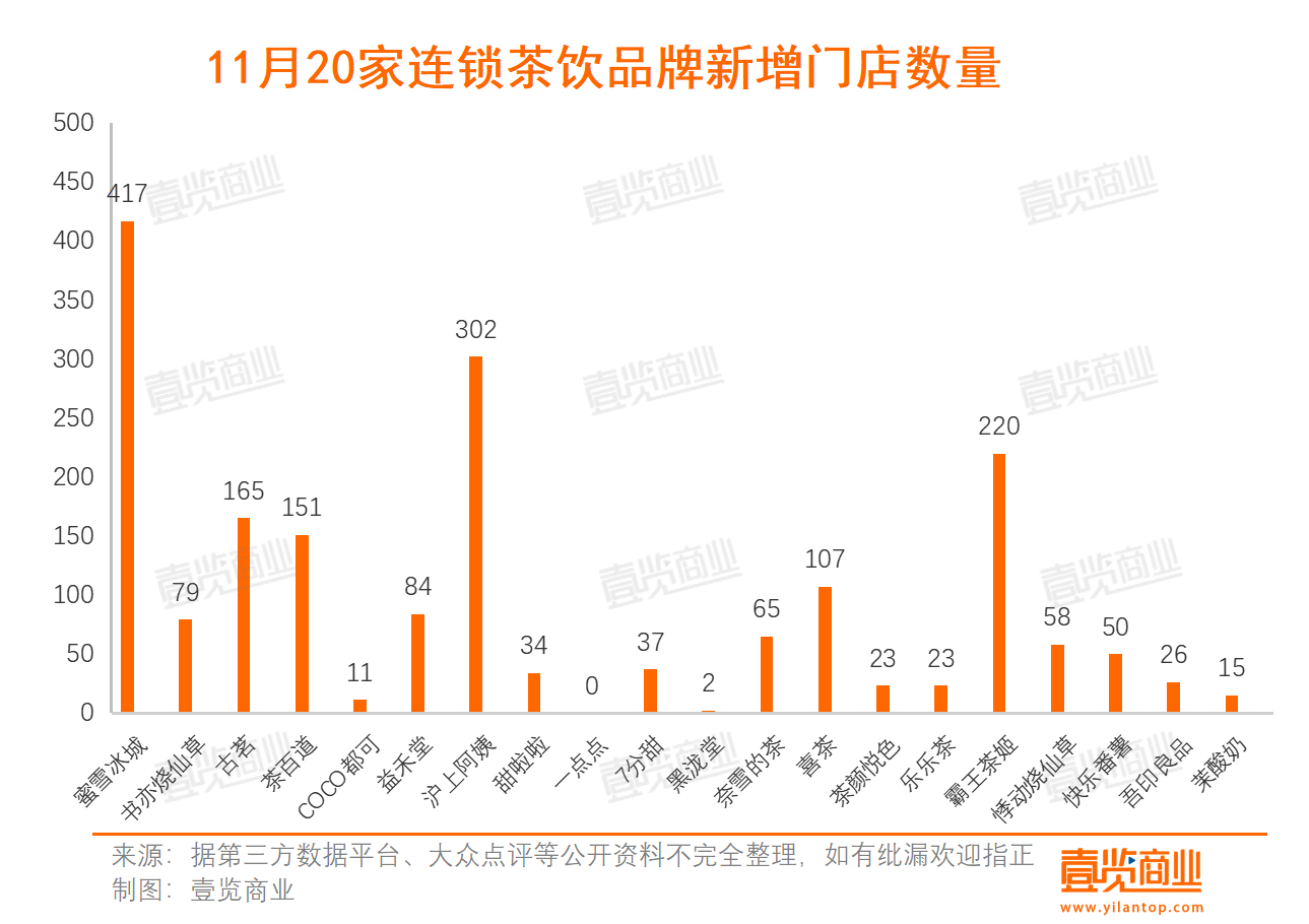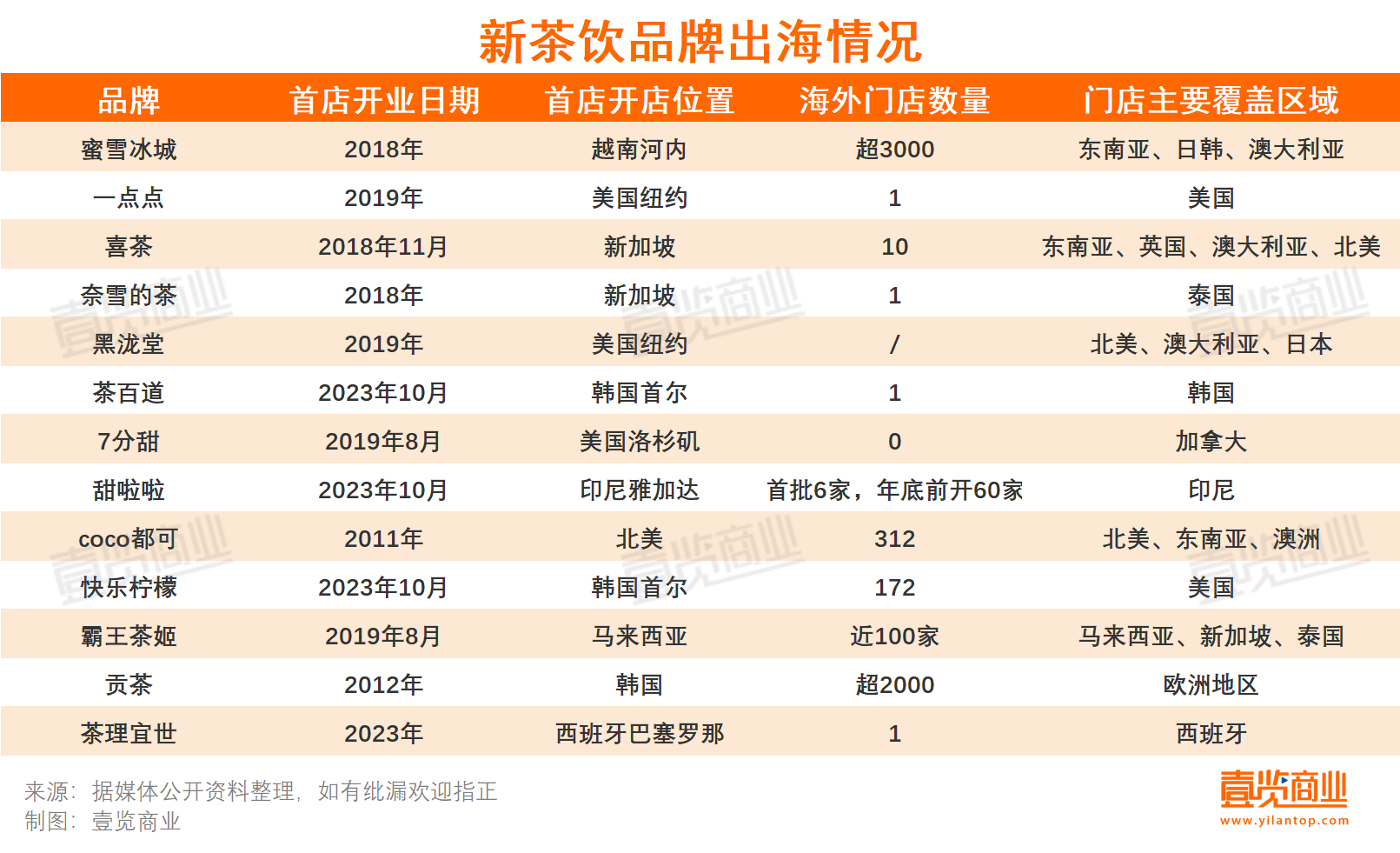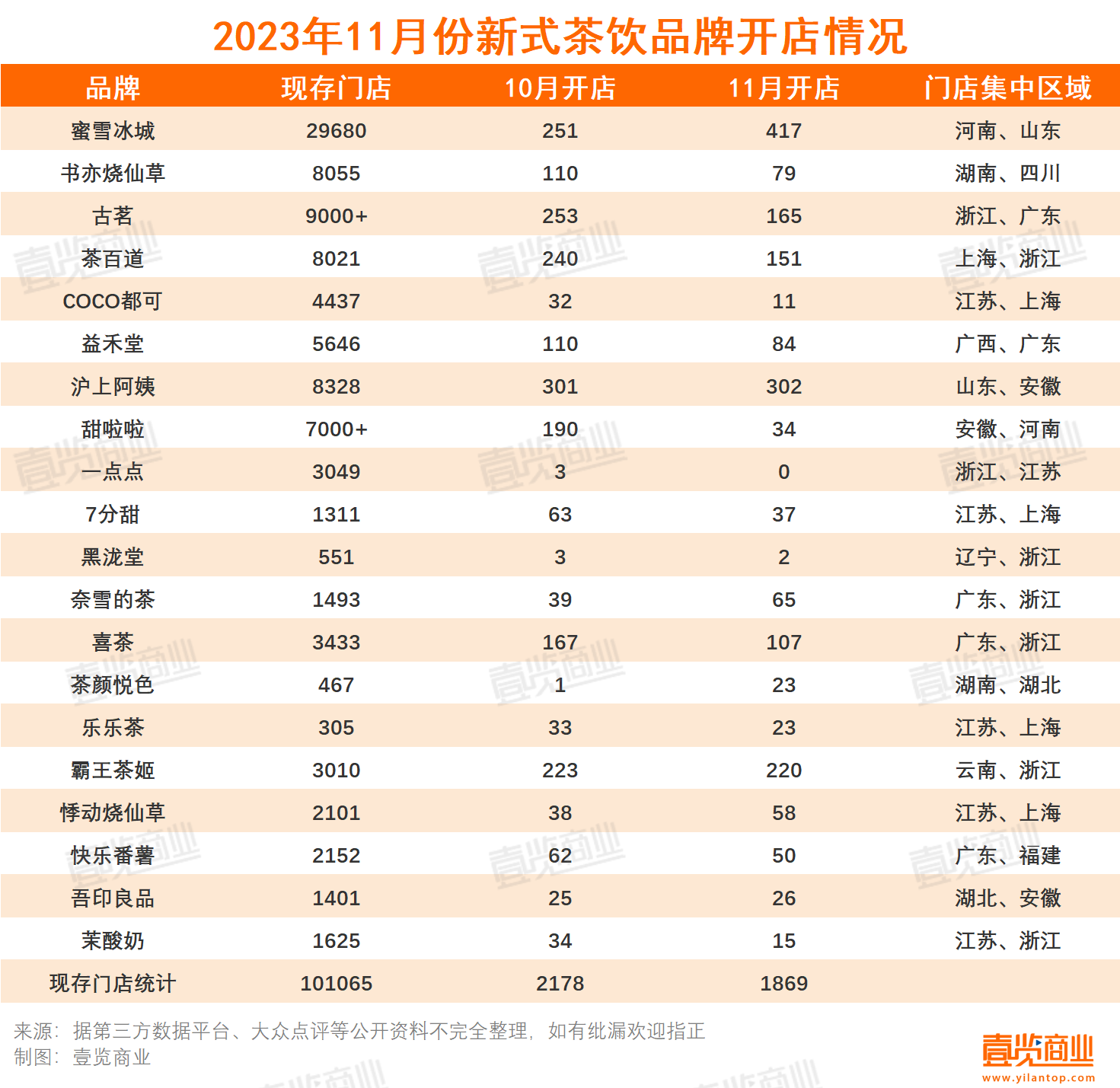 出品/壹览商业 作者/李彦 编辑/木鱼 11月,新式茶饮品牌现存门店量踏破10万大关。 11月份,壹览商业长期跟踪的国内20家连锁茶饮品牌共新开门店数量与上月相比减少309家。 整体行业情况:从整体开店数量来看,2023年11月份,国内20家连锁茶饮品牌一共新开门店1869家,与上月数据相比增速放缓,现存门店一共101065家。 ![]() 从品牌开业情况看:从开店量来看,蜜雪冰城继10月放缓开店脚步后,11月开店量重新达到417家,领跑行业。11月新开店量第二名的是沪上阿姨,在过去的两个月,沪上阿姨都稳定保持在月均300出头的新开门店数量。此后,霸王茶姬、古茗、茶百道分别开店220、165、151家,较上月相比都有不同程度的减少。 ![]() 从品牌现存门店情况看:现存门店排名第一的是蜜雪冰城,现存门店量29680家,按11月的门店扩张增速来看,蜜雪冰城有望在今年突破3万家。排名第二位是拥有9000+家门店的古茗。除此之外,霸王茶姬在11月突破了3000家门店,创立6年,霸王茶姬从今年起持续保持高速扩张,现有门店中,有2000+门店都是今年新开门店。 ![]() 新式茶饮品牌加速出海 今年以来,新式茶饮品牌不约而同地加快了出海速度。其中,各品牌有自己的一套出海打法。 喜茶在3月宣布开放包括欧美、澳洲在内的多个海外城市事业合伙人申请,随后在8月在英国伦敦、10月在澳大利亚墨尔本、加拿大本拿比分别开出首店,近期,美国纽约首店也进入营业状态。 壹览商业获悉,喜茶伦敦SOHO店从8月开业至今,单店单日最高销量达2,000杯,日均销量超1,300杯,单日销售最高超1.2万英镑(GBP)(超人民币11万元)。喜茶墨尔本Swanston店开业后,单日最高销量近3,000杯,单日销售最高超3万澳元(AUD)(超人民币14万元)。 ![]() 壹览商业统计发现,新茶饮出海,首站偏爱东南亚和美国。然而,直接把美国作为起点的茶饮品牌,想走远很难。 2019年,一点点、黑泷堂、7分甜扎堆在美国纽约开出首店,又先后在几年内关店。仅有一点点在今年6月再战此地开出新店。 对于更多的品牌来说,选东南亚是更加保守的选择。即便如此,奈雪的茶也在新加坡吃了闭门羹,今年再次出海选址泰国曼谷。近期,奈雪的茶首家泰国直营门店在曼谷正式开业。值得一提的是,这是新茶饮品牌首次在海外世界级高端商场开出直营门店。 据《中国新闻周刊》报道,奈雪首家官方直营门店所处的Emsphere商场被认为是泰国世界级高端商场、重要的商业和旅游地标。奈雪的茶曼谷门店更是位于Emsphere商场首层主入口的黄金位置,占据上下复式两层近200平的空间。 目前,在海外开设最多门店的,是已在东南亚布局5年的蜜雪冰城。早在2018年,蜜雪冰城就在越南开设了第一家海外门店。目前,蜜雪冰城已经拥有接近3000余家海外门店。 东南亚市场运营逐渐成熟后,蜜雪冰城还公布称,计划到2028年在日本开设1000家门店。 还有一些重点放在海外扩张的品牌,例如贡茶在海外门店量超2000家,仅次于蜜雪冰城,然而,窄门餐眼显示,贡茶国内门店仅239家。CoCo都可国内门店虽然扩张乏力,海外却已有312家门店,覆盖北美、澳洲、东南亚。 卷向海外市场,新式茶饮仍在拼速度。在中国食品产业分析师朱丹蓬看来,新茶饮出海到了一个水到渠成的节点。随着新茶饮头部企业综合实力的不断上升,出海是检验其供应链完整度建设的一个好契机。 朱丹蓬解释,“茶饮企业未来竞争的核心在于供应链的完整度。未来,只有头部企业才有对供应链进行完整布局的能力,而整个供应链的完整度决定了企业未来的可持续性。” 朱丹蓬进一步表示,喜茶、蜜雪冰城在国外市场已经形成了品牌化以及规模化,这对于其他新茶饮品牌而言是一个很好的指引,也是一个非常好的典范,整体来看,随着民族自信、文化自信等崛起,中国品牌出海的好时机已经来临。 新中式茶馆持续走红 继奈雪的茶推出奈雪茶院、茶颜悦色推出小神仙茶馆、霸王茶姬推出TEA BAR之后,11月10日首家喜茶茶坊在广州万菱汇开业,越来越多的头部新式茶饮品牌做起了“新中式茶馆”。 在新中式茶馆的开店策略上,几大品牌各有不同。 奈雪在深圳华侨城、广州粤海天地的两家茶院,都有大几百平米的空间,并且与书吧联名,设置了开放式的独立空间,甚至推出了私人影院区域,选择走大店路线。 喜茶茶坊则采用“全开放设计”。整体门店面积并不大,60平米左右的空间,在设计上偏向新中式风。在产品设置上,喜茶茶坊目前共有17款SKU,两款纯茶单价仅8元。15款鲜萃奶茶、柠檬茶单价在13-16元。相较主店,喜茶茶坊更为平价。 茶颜悦色的小神闲茶馆,设置了提供年轻人玩桌游的区域以及独立包厢,更像是一个合适的聚会区域。同时,小神闲茶馆除了有茶颜悦色手冲茶之外,还有限定茶饮以及蛋糕甜点,与茶颜悦色相比,小神闲茶馆的饮品偏向于果汁特调,部分单品含有酒精。 霸王茶姬的TEA BAR,则强调中式古典与现代时尚金属元素的碰撞。说是茶铺,却又融合了各类吧台元素,员工们会在现场制作装在啤酒瓶里的东方冰茶。与此同时,TEA BAR还有扎啤机、磨茶粉机等多款全智能化设备。 壹览商业观察这几家新式茶院发现,在产品上,所有品牌都推出了专属茶馆的限定新品,在价格上,定价相较主店单品基本持平或更为低价。同时,四个品牌的茶馆并不限于“做奶茶”,果饮特调、轻酒精饮品都可能成为其主打单品。 做新业态,可以理解为新式茶饮品牌