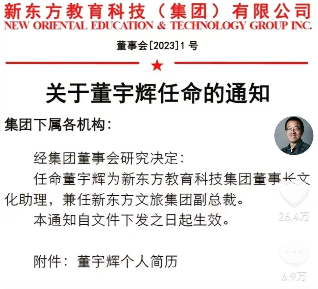 来源| 发现报告 最近,东方甄选的“小作文”事件引发了轩然大波。这件事不仅导致东方甄选在短短一周内损失超过250万粉丝,股价也在5天内暴跌近22%,直接蒸发了约70亿港币的市值。 舆论声浪中,最终以“免去孙东旭CEO职务,任命董宇辉文旅副总裁”落下一段帷幕。 ![]() 图片来源:公开资料,发现报告整理 在此期间,新东方股价起起落落,公司也经历了诸多调整。从教培行业大变动后,新东方一直在找寻自己的第二增长曲线,现在来看,直播和文旅或许最有挑起大梁的可能。 报告酱对这件事对公司的影响十分好奇,以及,这两大业务能撑起来整个公司吗?未来又将如何演变? 从“小作文”到“二选一”,一切纷争要从小作文的归属权说起。 12月8日东方甄选开启的三天“吉林行”。在置顶的“宣传文案出自谁手”的解答评论中,小编回复称:“每一次小作文制作,都是主播在镜头前,背后是文案创作团队、拍摄团队、剪辑团队的小伙伴们,大家协作,才有了一篇篇专场小作文。” 这番言论引发了一些董宇辉粉丝的不满,认为小编在“背刺”主播。此后董宇辉及原东方甄选CEO孙东旭的回应等各方的表态,将这一事件演变成为全民关注的热议话题,东方甄选迅速掉粉、股价出现暴跌。 让事情愈发不好收场的是,12月12日晚,时任东方甄选CEO孙东旭直播回应这一争议,却因为“今天来开个会”的表述,以及随手将手机扔在桌子上的态度,引发网友强烈不满。此外,孙东旭当众提及董宇辉的收入状况,也被指出不职业。 12月13日凌晨,董宇辉发文回应,澄清文案创作内情,同时表达了对饭圈文化的抵制态度;12月14日午间,新东方创始人俞敏洪作出回应,向董宇辉表达歉意,同时认为小编做法严重缺乏职业精神,并指出CEO孙东旭行为的不恰当;东方甄选直播间主播天权直接“炮轰”粉丝,直言“网友们非常有文化呀,网友们的想象力创造力比我们想象中高得太多了,我们设了那么多的屏蔽词,还可以换着法的来。佩服,真的非常佩服。”并称:“想搞垮东方甄选,就趁在取关前先买一单。” 此番言论后,有媒体称,东方甄选当晚迅速掉粉70万,直接导致公司16日停播。 12月16日上午,东方甄选官方抖音置顶人事任免通知,小孙被罢免CEO职务;16日晚,俞敏洪与董宇辉合体直播;12月18日下午,俞敏洪在其头条号发文:祝贺宇辉,风雨同行!附图为新东方教育科技(集团)有限公司关于董宇辉任命的通知:经集团董事会研究决定,任命董宇辉为新东方教育科技集团董事长文化助理,兼任新东方文旅集团副总裁。 现在回头看“小作文”风波对东方甄选的影响:直播间人气骤降,掉粉数十万,股价跳水。 不过,直播间的粉丝虽然在掉,但是带货的数据还是很好——12月17日周日,东方甄选恢复直播。飞瓜数据·抖音版显示,直播GMV预估达到1亿以上,观看人次也接近7000万人,是近一个月以来平均观看人次的七倍。回看12月14号、15号的直播数据,东方甄选也是当日带货榜第一名。 事件对公司影响较大,但对直播间带货影响较小,接下来的业务将如何发展呢? 新东方的第二条路,东方甄选 2021年7月,国家正式出台双减政策,禁止教培机构为中小学生提供营利性校外辅导服务,这对新东方来说,几乎是致命打击,毕竟教培是公司的核心业务。 2021年全年,新东方公司的营收下降了80%,股票市值下跌了90%,6万名员工被解雇,公司退还学费、退教学场地租金共支付了近200亿人民币。 在公司濒临破产之际,俞老板决定转型农产品直播带货,创立东方甄选。 东方甄选直播间于2021年12月上线,首场直播GMV约500万元,2022年1-5月月均销量10万+。2022年6月,粉丝数从100万飙涨到1800万,新东方在线的股价从2元涨到30元,这是一周内发生的奇迹。产生如此效果的大概是双语知识带货。这个品类,这种形式,在目前所有的直播场景中是独一无二的,是“稀缺”的供给。 ![]() 而稀缺,一定是商业的巨大动力。 从财务数据上看,FY23直播电商业务总营收39亿元,其中H1营收17.66亿,H2营收21.34亿,直播电商营收H2相较H1增长20.84%。全财年GMV100亿,其中H1为48亿,H2为52亿,H2的GMV较H1增长8.33%。同时期的营收增速远超GMV增速,预示公司营收高质量增长。 ![]() ![]() 此次“小作文”事件,本质上是直播电商企业在商业模式调整过程中必经的波折,中长期看该类型公司想要实现业务的持续增长,最终必须完成由达人驱动向供应链选品驱动的商业模式调整。 短期而言,东方甄选对母公司新东方影响有限,且目前东方甄选在线教育业务已注入新东方,即使后续东方甄选销售出现波动,对新东方利润影响亦较为有限。 未来的想象空间,文旅业务 从新东方2023财年收入贡献看,传统业务表现稳定,新业务贡献收入增量。