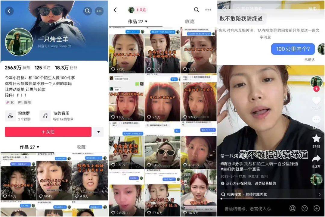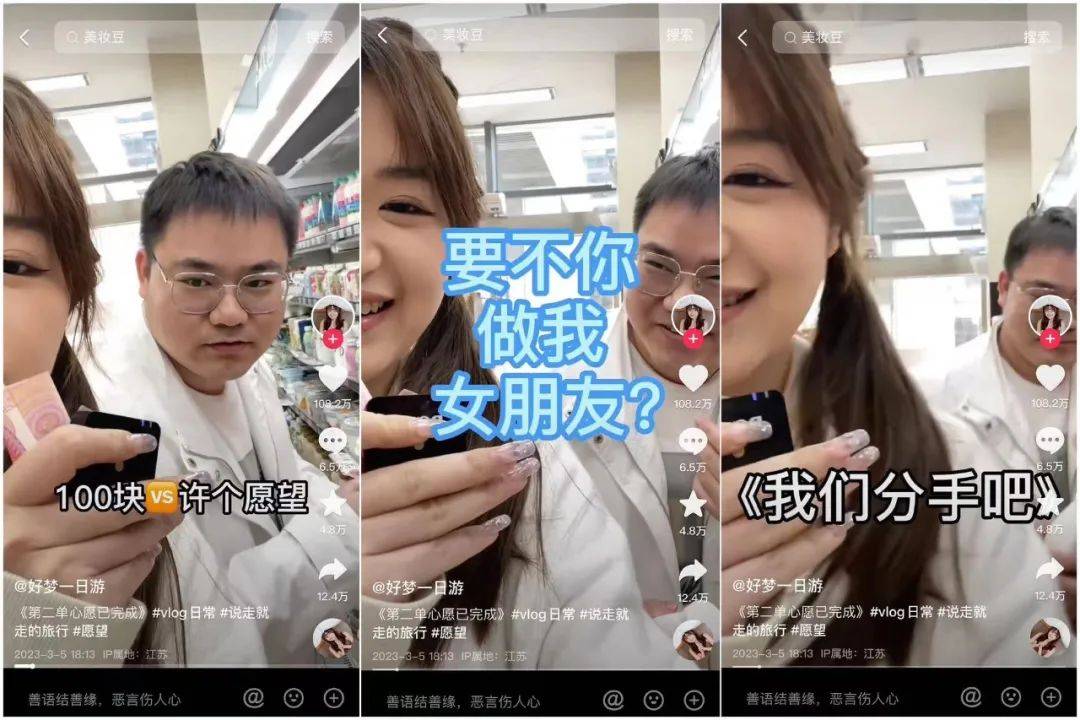 来源:卡思数据 封面来源:@好梦一日游 抖音视频截图 100块钱还是许个愿望? 和100个陌生人做100件事。 和100个陌生人做礼物交换。 越来越多的创作者,开始“摇”陌生人和自己一起拍视频。这类作品最大的特点就是博主只设定一个前提,并做出“征集”的动作,具体的创意和事件都由陌生人或者粉丝代为完成,拍摄主题充满了不确定性,某种程度上讲,就像是在开“短视频盲盒”。 “短视频盲盒”背后的逻辑是贩卖惊喜感、满足感、快感,能够迅速激起观众的好奇心。卡思观察到,这类型的创作者和视频形式已经越来越多,并且很多人都实现了从0开始迅速起号涨粉。 在短视频里“开盲盒”真的这么快乐吗? 37个作品涨粉238W,@好梦一日游 助人亦助己 “一百块钱还是许一个愿望。” 当@好梦一日游 的主人公游子拿着100块出现在街头随机“抓”路人时,被选中的人总是会面临这样一个不算大的抉择。虽然也有人会出于对陌生人的天然不信任,选择立即拿走100块,但每一个敢于在镜头前说出愿望的人,总能收获到超乎想象的快乐与感动。 博主完成的第一个心愿,来自一位刚分手的女生的“委托”:希望游子能帮她把和前男友恋爱时,挂在千岛湖上的同心锁拆下来。 ![]() @好梦一日游 抖音截图 听到这个愿望,博主没有丝毫犹豫,直接买了高铁票,跨越300千米直奔千岛湖拆锁。 300千米的距离只是第一道难关,在乘船进入景区后,游子被告知由于景区规定,她仅有一个小时的时间,游览“目标锁”所在地月光岛。 景区里的锁成千上万,当游子终于找到委托人的那把锁时,距离必须离开的时限只剩10分钟,从市区叫来一个开锁师傅显然是不可能的,游子又被迫掌握了“发夹开锁”的新技能。 视频结尾,游子将锁交给委托的女生,还配上了一束花,花语是“别怕前路漫漫,相遇的人不会走散”,给了女生美好的祝福。 ![]() @好梦一日游 抖音截图 虽然取同心锁只是一件小事,但博主全心全意替别人完成愿望的心意,还是吸引了很多观众的喜欢。作为账号的第一个作品,该视频截至目前的点赞已经达到37.3w,更为重要的是,这条视频还将博主“真的能实现陌生人的愿望”的视频主题传播给了更多人知晓。 从今年2月28日发布第一支视频开始到现在的半年时间内,@好梦一日游 共拍摄了37个视频,完成了37个“陌生愿望”,与此同时,账号粉丝数已涨至238W,这样的涨粉速度还是相当可观的。 总的来看,游子能够得到这么多人的喜欢,有着多方面的原因。有的粉丝欣赏游子的高情商,认为她在和形形色色的陌生人的交流中,表现得游刃有余,面对一些“小绊子”也能机智的回答。 比如曾有人在许愿时向游子提出“你可以做我女朋友吗?”,游子就四两拨千斤的回答“我们分手吧”,看上去既完成了对方的愿望,又留下余地,没有让双方尴尬;有人向她许愿父母身体健康,她回答“这不是愿望,是正在发生的事”,让看到的人心里暖暖的。 ![]() @好梦一日游 抖音截图 有粉丝喜欢她不服输的勇气,虽然她的准则是帮别人实现“不离谱的愿望”,但其实每个看似普通的“小愿望”,执行起来都要面临很多困难。 比如在和小姐姐去内蒙古寻找蚂蚁森林的梭梭树时,即使有着明确的定位地点,但因为风沙和路况,车子完全无法前进。最后,游子和小姐姐一起在内蒙古的沙漠里“为地球种下两颗新树”,虽然许愿人和屏幕前的粉丝都没有见到愿望中的那棵树,但“一趟飞机+6小时的车程”的奔波,让地球多了一抹绿色,所有人都觉得“这很酷”。 ![]() @好梦一日游 抖音截图 更为重要的是,虽然@好梦一日游 的每期作品都有不同的“许愿人”,每个人都有着不同的目标,但游子总能从一些平凡的事件种挖掘出亮点,制造超出观众预期的惊喜,并且从结局上赋予“愿望”更多的意义,给观众带来了很好的情绪价值,这或许是她能够走红的根本原因。 帮在密室做NPC的小哥上了一天班,让小哥得以偷闲去鸡鸣寺看盛开的樱花,这是游子送给大家的“生活的暂停键”;帮女生向学生时期暗恋的学长表白,虽然两人最后不一定会成为真正的情侣,但数年的心意终于能够被知晓,视频末的配文“想重新认识你,从你叫什么名字开始”,激起无数人的青春回忆。 ![]() @好梦一日游 抖音截图 游子视频中的最后一句文案,总能给人一种治愈和向上的力量。而游子就像一个超能力者,让那些看似“不切实际”的梦想得以实现,给了更多人在平凡生活中保持期待的理由。 多少创作者迷上了“随机挑战”? 从大街上随机“挑选”幸运观众,一起拍摄短视频的创意或许可以追溯到@小鱼海棠——一个“励志和999个很帅的男生拍照”的美妆/摄影博主。 主人公小鱼会在篮球场、校园、地铁、公园、商场、健身房等不同的地点中“物色”长相帅气的小哥哥,邀请对方和自己拍照。 视频中出现的一个又一个不同类型的帅哥给了观众视觉上的满足感,同时也给了大家“下一个帅哥是什么样”的暗暗期待,@小鱼海棠 成为第一个把“短视频盲盒”开成功的博主,目前她在抖音有1983W粉丝,这个粉丝量级已经是平台内绝对的头部。 ![]() @小鱼海棠 抖音截图 而在去年7月的抖音涨粉榜中,卡思也曾写过在短视频开“探店盲盒”的@二百者也,通过200元定额挑战的玩法,打卡全国各地的美食店铺,与商家共创,掀起一股“店家上啥我吃啥”的挑战风潮。 用户一方面在预设好的前提下,