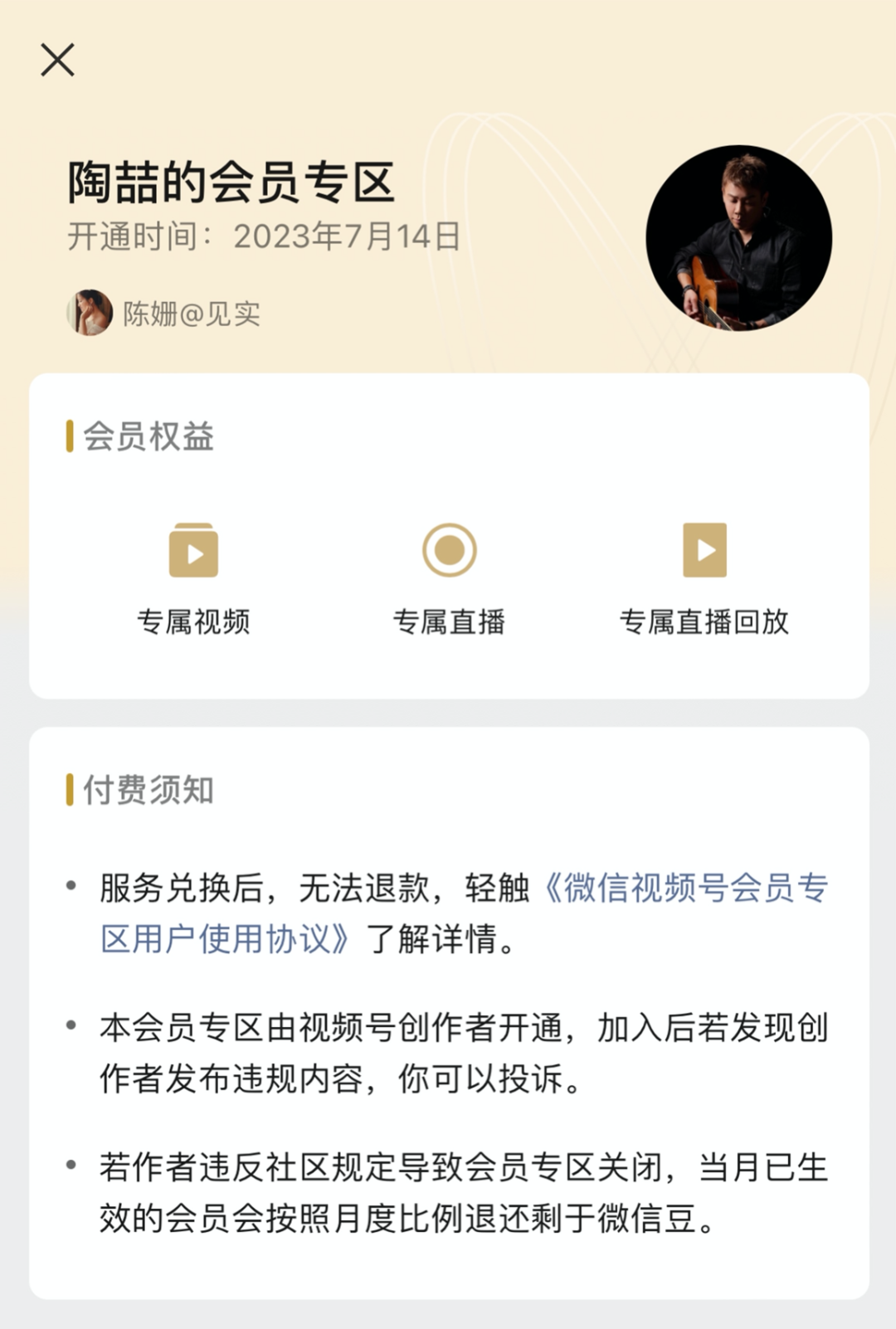 来源:见实 7月14日晚上8点,陶喆在视频号举办了首场线上演唱会。 开播前5分钟,直播间已有178.6万人看过,截至演唱和花絮播放完毕(未包含回放),有3200多万人在线观看了这场演唱会。另据微信指数显示,“陶喆”7月14日当天,创造了7000多万搜索热度。 同一时间,还有蔡依林也在快手进行了直播。开播约一小时,蔡依林快手账号最高观看人数超570万,点赞超4.9亿次。根据官方数据,这场演唱会直播预约人数总计1927万,直播最高同时在线人数达695万,直播总互动量超8.1亿。 各大明星驻扎短视频平台开演唱会似乎成为了一种惯例,演唱会数据也保持在一个比较稳定的水平。 在昨晚的演唱会上,见实留意到了视频号此前灰度测试的功能「会员专区」正开始放大招,不出意外,这个功能在大范围开放后,或将成为内容IP、优质内容创作者的一个重要收入来源。 ![]() 01「会员专区」花钱来爱视频号创作者 视频号「会员专区」功能早在几个月前就开始内测,据官方介绍,会员权益包括:专属视频、专属直播、专属直播回放等。 在昨晚陶喆的视频号中,我们看到该账号有了内测机会。在视频号首页可以清晰看到「成为会员」,点击后可以看到花费84个微信豆(安卓系统用户花8.4元,iOS系统用户花12元)就可以成为月度会员,观看会员专属视频,以及点赞和评论。 ![]() 成为会员后,再进入视频号首页,就可以看到「会员专区」,点击进去可以看到更多会员专属视频。 在昨晚演唱会结束,播放幕后花絮时,会员可以收到「陶喆的会员专区」的推送,点进去可以看到专属视频,非会员则不会收到。 将会员专属视频发给好友,显示如下页面和提示:成为作者的会员,即可观看全部专属视频。 ![]() 在账号播放回放期间,会员专区更新了几条新视频,为演唱会的剪辑视频,评论区的粉丝账号都会带有明显标识「作者的会员」。 很多粉丝都评论了“花钱了,来了,爱你”、”花钱来评论了“、做老大的会员”、“尊贵的本会员来了”、“听得我要哭了”等暖心的话。 ![]() 喜欢陶喆的粉丝聚集在这里,可以尽情表达自己对歌曲的喜欢,以及表达对明星本人的喜爱。 因此「会员专区」功能可以通过付费,筛选出真正对视频号作者、创作者喜欢的粉丝,以及可以为知识付费博主筛选出优质付费用户。 02功能还在内测中,或将成为创作者和腾讯营收新增量 有内部人士告诉见实,「会员专区」功能目前还在逐步灰度测试中,还有很多功能待完善,因此目前开放规模还比较小。 有内测资格的视频号创作者,可以通过视频号后台「视频号助手」开通会员专区,但目前只有受邀用户才可以看到开通入口。登陆视频号 PC 端后台「视频号助手」,点击「会员专区」,查看并勾选协议,按照提示操作即可申请开通。 不过需要提的是,「会员专区」目前功能确实还比较少,在曝光上也只有主页可以看到。如下图所示,会员在直播间也可以收到推送,非会员在直播间看不到推送。 ![]() 那么本次演唱会,有多少人进入了付费会员专区呢?我们根据会员专属视频的播放量和点赞量可以进行一些推算。 如昨天上午11点30分,专属会员可看到的一条视频,爱心点赞量为1259,演唱会开始10分钟后点赞量变为1430,截至目前发稿,爱心点赞量为1671。 根据行业推算,好的账号,其点赞量通常为播放量的百分之一。因此根据这个数据来算,一天时间内,专属会员可看到的这条视频播放量从12.59万涨到16.71万,涨了4.12万播放量,背后或也能代表新增的进入会员专区的粉丝数量。(这里为粗略计算,不同类目和账号播放和点赞比率不同) 从数据来看,本次演唱会直播,给陶喆带来了更多新增会员。 值得一提的是,在今年3月的微信公开课PRO上,官方就宣布视频号即将发布付费订阅功能,支持创作者设立付费内容专区,以此帮助优质创作者获得更多收入。 从当时的介绍截图来看,付费订阅功能可帮助创作者更好地服务付费会员,用户可以通过缴纳月费成为会员,获取创作者付费内容专区/专栏内的专属原创直播、视频、直播回放等。 ![]() 现在看,正在内测的「会员功能」即为当时所提的这个付费订阅功能,官方对该功能有了更清晰的产品形态和定位。该功能在大范围开放后,或将成为内容IP、优质内容创作者的一个重要收入来源。 另据腾讯最新Q1季度财报,视频号拥有超过1万个粉丝的创作者数是去年同期的三倍多,同时视频号成为其营收的新增量,对其广告收入和企业服务业务收入贡献了新增量。 而新的「会员专区」功能,创作者也要为平台功能贡献20%的抽成(内测阶段为扶持作者,平台抽成比例为10%),后续视频号「会员功能」大范围开放后,或也将成为腾讯收入新的增量。 文章来源:“见实”,未经允许不得转载。 文章代表作者观点,版权归原作者所有,热传平台仅提供信息存储空间服务。 |