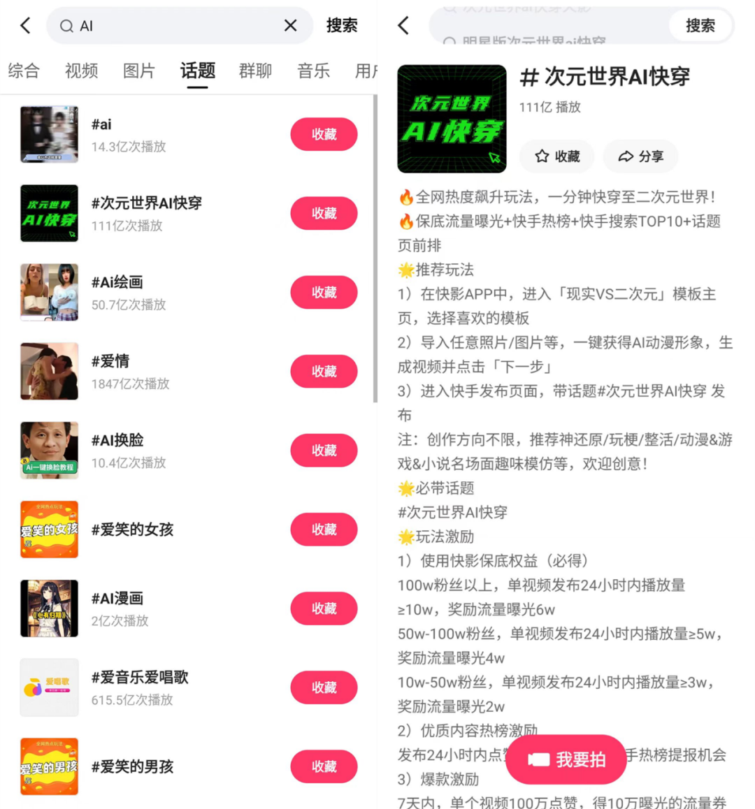 来源 | 微果酱(wjam123456) 作者 | 陈出木 短视频赛道已经很久没有新故事了。AI风起,会是老对手们的新机会吗? 在不久之前,直播短视频赛道如日中天,流量神话屡见报端。而当前,数据缩水几乎成为行业共识,AI成为被热议的新贵。 互联网历来喜新厌旧,短视频双巨头的“南抖音、北快手”也渐渐到了增长天花板,亟需新鲜事物输送活力。所以,任何新的风潮都会成为相争的奇点,AI显然是下一个山头。 01 201亿播放的AI话题,能救得了瓶颈期的短视频吗? 抖音挂钩AI这事儿被大范围认知,得回到去年AI绘画爆火的那一阵。 一个“AI绘画”特效,让全民都参与到了AI爆发的前夜。用户只需要上传一张图或者直接拍一段视频,就能收获AI生成的二次元风格图片。一时间掀起热潮,让抖音用户初次感受到AI的娱乐性,以及流量。 ![]() ![]() 在AI绘画爆火的期间,尽管此时抖音的AI仍然局限于特效,但也相当于降低了用户对AI的认知和接触门槛。 ![]() 面对这样的高热度,隔壁快手也推出了类似的玩法。其话题#Ai绘画#的播放量超50.7亿,#次元世界AI快穿#更是累计高达111亿次播放。虽然数据不比抖音,但是按照两个平台的体量来说,这样的效果已经足以证明AI在全民层中的普遍走红。 彼时,快手还趁热推出了官方活动。比如播放数据最好的话题#次元世界AI快穿#,快手表示提供“保底流量曝光+快手热榜+快手搜索TOP10+话题页前排”的利好,引导用户使用官方视频编辑App“快影”,并提供阶梯式的流量激励。 ![]() 在平台和用户的共同推动下,AI绘画以特效的形式在短视频赛道刮起了风暴,让大家看到了短视频这种内容载体融合新技术的可能性,也在一定程度上增强了对赛道保持活力的信心。 但不像一杯生椰拿铁就能够救下瑞幸,对于处在瓶颈期的短视频来说,仅仅是特效还不够,用户对AI的期待不止于此。 所以,AI绘画只是一个追热点的功能,抖音快手在AI一道上尚未开始真正的短兵相接,但已经能看到相互较劲下的汹涌暗潮。 02 短视频的兵家必争之地——AI 作为先火起来的玩法,AI绘画的底层逻辑是AI大模型的落地应用。 2021年1月,如今这场AI狂欢的缔造者——OpenAI发布了DALL·E大模型。随后,字节跳动智能创作团队开始跟进相关技术,并在Stable Diffusion发布后启动了AI绘画的项目。 根据公开资料,字节跳动是在Stable Diffusion开源模型的基础上,用十亿规模的数据集训练出通用型和动漫风格两种模型。 ![]() 动漫风格的Diffusion Model模型生成的图像风格 图源:“抖音集团” 除了在AI绘画上落地,抖音官方的视频编辑工具“剪映”也早早推出了AI配音功能,用户输入字幕后即可选择“文本朗读”自动配音。 显然,目前AI之于抖音更多是发挥辅助工具的作用,以便捷操作和新鲜玩法吸引用户,达到流量转化的目的。 但无论抖音,还是快手,它们都明白,C端的生意总是像捡钢镚,B端才是更大的金矿。 在6月9日,有消息称抖音正在内部测试一款AI对话类产品,名字暂定为“Grace”。对此,官方回应称,Grace是一个AI对话类测试项目的内部代号,目前还处于初级阶段,仅用于内部体验测试。 还没等来Grace,旗下的火山引擎便在6月28日发布大模型服务平台“火山方舟”,面向企业提供模型精调、评测、推理等平台服务,目前集成了百川智能、出门问问、复旦大学MOSS、智谱AI等多家大模型,并已启动邀测。据悉,抖音集团内部已有十多个业务团队试用“火山方舟”,使用场景包括代码纠错、文本分类、总结摘要、数据标注、归因分析等。 就此来看,火山方舟更像是一个大模型市场,任用户选用。 ![]() 而实际上,早在今年四月,张一鸣就在公开信中提到,字节跳动无法错过AGI(通用人工智能),他确信AGI是抖音TikTok在全球发现新的增长机遇不可或缺的伙伴,它可以解决字节跳动的第二曲线增长困境。 掌舵者对大局的判断,决定了巨轮的航向。抖音对AI的重视,以及将其视为产品增长、熬过瓶颈期的希望,从最近的人事调动也可见一斑。 根据“Tech星球”消息,就在一周前,抖音社交负责人陆游调岗至大模型团队担任相关负责人,向大模型团队负责人朱文佳汇报。另外,字节内部正在研发新的大模型项目,代号“O”。 值得一提的是,作为对抖音社交项目做出过贡献的负责人,陆游曾经孵化出重要服务“抖音时刻”,其转向大模型业务恰好说明了公司重心的倾斜。 ![]() 另一边,早在2019年,快手就曾经因为“萌面Kmoji”功能火过,可以将视频中的人物头像变成卡通风格。 ![]() 使用了“萌面Kmoji”功能的网红“手工耿” 图源:“量子位” 快手的Y-tech团队还把AI技术融合进各种各样的魔法表情特效中, ![]() 快手特效展示 图源:“快手Y-tech” 至今年的3月29日,在快手的2022年第四季度及全年业绩电话会上,快手创始人兼CEO程一笑表示,快手在大规模语言模型(LLM)、多模态预训练大模型、智能创作工具等方面已有技术沉淀,目前启动专项,覆盖LLM模型训练、文案自动创作与生成、对话系统开发、跨模态内容生成等。 生成式AI与快手的业务场景有非常丰富的结合点及巨大的价值潜力,公司将合理配置人力和资源,长期投入到相关技术的创新突破,以及与业务的有机融合之中。在两个月后的一季度财报电话会上,程一笑透露,快手已经组建大模型研发团队,当前模型还处于训练阶段,暂未有明确的对外发布计划。 但其阐述了对于AI在短视频领域落地的方向思考: • 搜