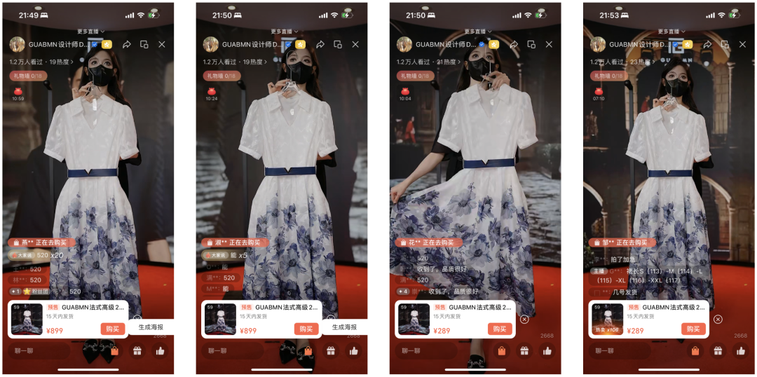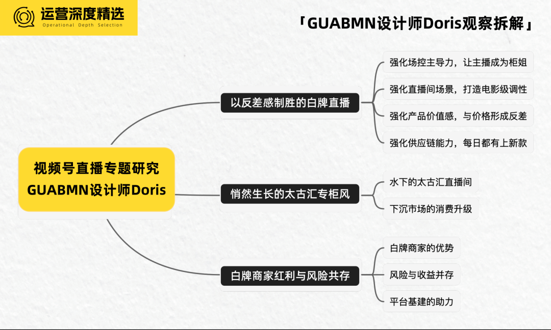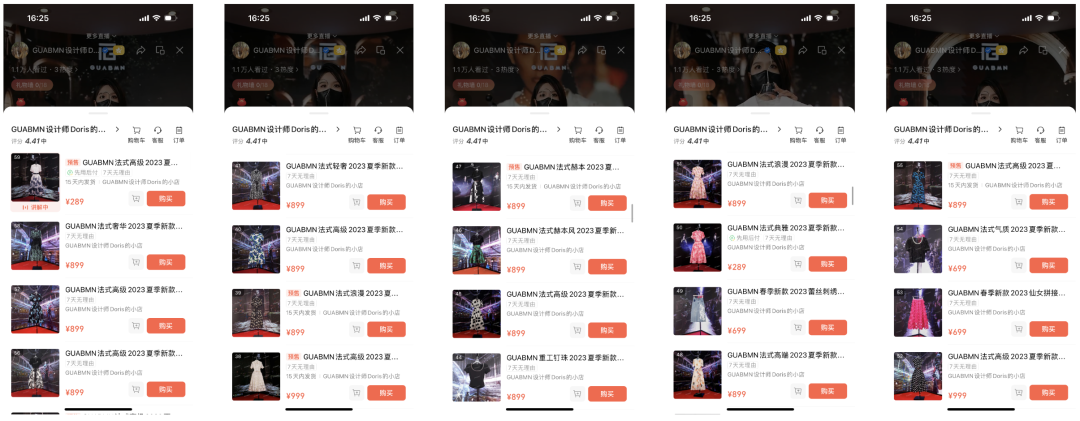 来源 | 鉴锋 文 | 少波 编辑 | 文清 卖衣服的直播间,你应该见过不少。 但主播不说话、不露脸、不试穿,却能在618期间卖超2000万的女装直播间,你见过吗? ![]() GUABMN设计师Doris直播间截图 过往,运营深度精选拆解过不少服饰类直播间,包括品牌、达人以及商家,但从人货场的维度来看,大家之间的差异性已经被讲过很多次了,很难有眼前一亮的感觉,直到GUABMN设计师Doris直播间的出现。 第一次留意到它,是在618的潮流服饰榜单上——之前从没刷到过的直播间,竟排在了第三位,仅次于常年霸榜的乔教主和上半年的黑马选手爱丽丝。 ![]() 而进一步拆解它的原因,正如在文章开头你看到的截图,区别于常见女装直播间的人货场,独特的风格设计让人耳目一新。就像在不经意之间,解锁了隐藏的女装直播打开方式。 话不多说,今天这期就来,就来一起探秘GUABMN设计师Doris直播间的人货场设计以及藏在背后悄然生长的太古汇专柜风直播间。 ![]() 01. 以反差感制胜的白牌直播 强化直播间场景,打造电影级调性 进入GUABMN设计师Doris直播间,第一秒抓到眼球让你停留下来的,一定是场景的搭建。曲面LED大屏上正播放着时装走秀,配合地面的红地毯,一瞬间像在电影节红毯上,调性拉满。 ![]() GUABMN设计师Doris直播间布景 在视频号官方周一发布的《视频号商家起量基础教程》中提到,想要拿到自然流量,第一步就取决于好内容。何谓好内容?重点在两个指标:内容曝光点击率(进房率)和有效观看占比(30s/60s/180s)。 而和场景端的布置息息相关的,就是内容曝光点击率。GUABMN设计师Doris直播间如此有别于常规女装直播间的设计,这一维度的数据指标自然很容易达成。事实上也确实如此,直播间在没有任何引流用户沉淀私域的动作下,每场直播场观的增速依旧非常快,要归功于场景端撬来的自然流量。 强化运营及场控,让主播成为柜姐 在GUABMN设计师Doris直播间,出镜的主播全程不讲一句话,甚至也很少会上身试穿。与其说是主播,倒更像是线下门店的柜姐,动作不疾不徐,只负责优雅地展示手中的连衣裙。 ![]() 至于通过讲解达成有效观看占比的任务,则全都落在了不出镜的场控身上。她的话术配合眼前这般场景,让你有种置身时装秀场抢购当季最新高定款的错觉—— “摄影小哥,麻烦切个近景,让姐姐们通过14万高清相机下的特写镜头,来看看我们国外进口的桑洛丝,薄如蝉翼;再看这山茶花刺绣,是工人师傅8个小时做出来的,在国内只给那些有身份、有牌面的名媛富太太做高定系列;一天这样的裙子只能做200条,是限量款,一个 ID 一个账号只能买一单,所以想要的姐姐们在公屏上把小“1”飘起来。” 如此搭配,对于观看视频号直播的姐姐们来讲,完全是种全新的内容体验。 强化产品价值感,与价格形成反差 有了以上场景的调性、主播的气质以及场控的讲解,让眼前这件连衣裙的价值感在直播间姐姐们的心中直线上升,如果标价是大几千感觉也不为过。但此时,标价仅仅只有899,姐姐们下单的欲望已经被激起。不过这还不够,因为还没有开价,此时场控的声音响起—— “今天在展厅的姐姐们,想要体验高货的,可以找我领一张200元的大额现金券。您飘“520”报名,小哥开始统计,飘一次领一张,飘两次领两张,飘三次直接减600元!同时我们还有个活动,像这种高货款是为了做口碑宣传的,收到衣服有没有姐妹能帮我拍宣传照?能的姐妹,飘个“能”,我再送您价值70元的礼盒包装!小哥后台统计好,我们倒计时321!开价!” ![]() GUABMN设计师Doris购物袋货盘 一顿操作下来,原本贵如奢侈品的连衣裙,竟然只要两百多,岂不是白给?如此反差感让姐姐下单时毫无压力,仿佛买到就是赚到,只管冲冲冲。 强化供应链能力,每日都有上新款 除开以上人货场的呈现外,能支撑GUABMN设计师Doris直播间冲进618带货榜的实力,在于其供应链的强大能力。通过检索账号认证主体「衣工坊」,得到的信息显示,这是国内知名的电商平台服装类目供应商之一,在全国各地开设了纺织、针织、制衣等生产工厂。而我们所拆解的GUABMN是其自创品牌,线下也拥有数十家门店及服装档口,建立了自产自销的运营模式。 之所以在直播间每周都有上新,背后也是开发端和生产端的顺畅联动——开发端有30多人的设计团队,有10多名买手在各大服装市场采购版衣,并有20多人的版房,保证每天出版速度和品质;生产端有超过1000人的服装供应链厂家,拥有二十年的专业生产技术,出货速度快,质量把控强。 同时,所有的新品上线,也形成了统一又独特的视频风格,通常10秒钟的视频,可以拆分成4个镜头,可以快速批量流程化生产: ![]() GUABMN设计师Doris视频作品拆解 02. 悄然生长的太古汇专柜风 水下的太古汇直播间 拆解到此,仍有一个问题一直在编辑部伙伴的脑袋中萦绕——这种新奇的风格该如何定义它?而问题的答案也在刷视频号直播间时,自己跳了出来。 在长时间关注GUABMN的同时,系统算法推测我们对于这类直播间有着浓厚的兴趣,于是接连推荐了一系列相似风格的直播间,正如下图所示。 ![]() 太古汇专柜风直播间截图 如果用一个词来形容,那“太古汇专柜风”再适合不过,这类直播间能做起来的核心就是反差感。通过模仿奢侈品专柜布景,加上灯光营造氛围,有时再来点低沉的轻音乐,配合优雅又神秘的主播展示,场控极富感染力的话术激发,瞬间把产品价值感拉满,最后再给以