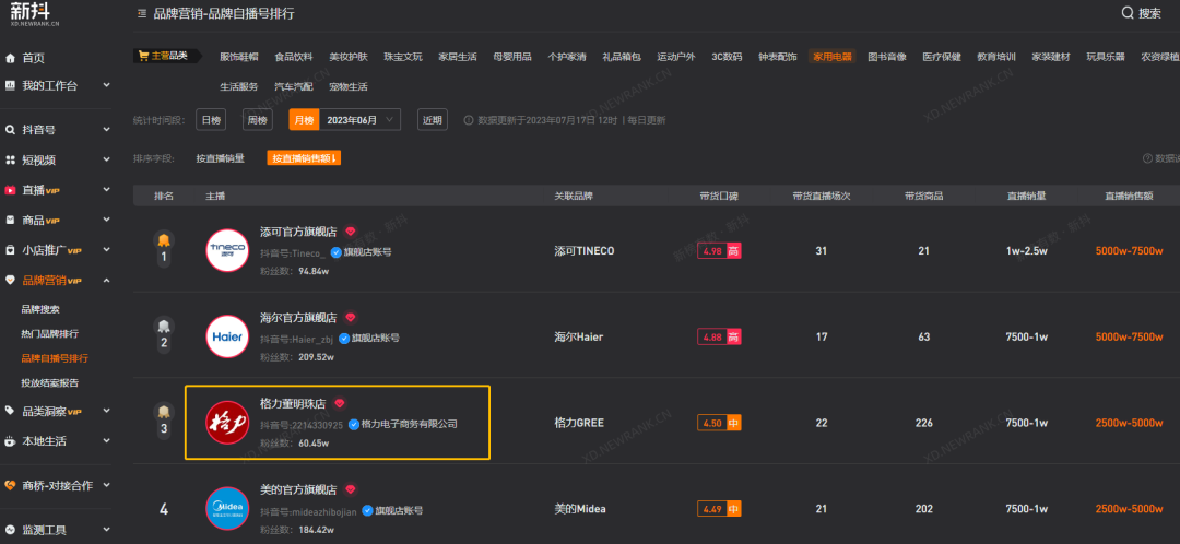 来源:新榜 作者 | Bmaboo 编辑 | 小 八 校对 | 小 八 制图 | Weddy.k. 孟羽童离职两个月后,格力直播间依然热闹。 今年5月,因职场综艺走红的董明珠助理孟羽童宣布从格力离开,在这之前,董明珠曾多次扬言要把孟羽童培养成“下一个董明珠”。 在围绕着孟羽童与格力的多个热搜中,从#孟羽童曾连续工作21小时#、#孟羽童被曝考勤异常率超80%#、#格力员工称孟羽童是被公司开除#等关键词,不难看出这是一场好聚、却没好散的离职风波。 三年前,董明珠高调进军直播带货,2021年底,抖音账号“明珠羽童精选”成立,在两年内积累了近300万粉丝。同时,格力也加大布局抖音自播的力度。新榜旗下抖音数据工具新抖数据不完全统计,截至发稿前,带有“格力”企业认证的矩阵账号达70个。 前有“明珠羽童精选”作为格力的主IP账号,后有70个矩阵账号共同发力,格力的抖音直播格局看上去已经逐渐趋于稳定。 不过,有网友发现,2022年四五月开始,孟羽童直播次数有所减少,猜测她是否因为带货能力差被解雇,这很快被董明珠澄清,称孟羽童的主职工作是秘书,做直播只是“义务劳动”。但不可否认的是,孟羽童不再频繁出现在“明珠羽童精选”直播间,似乎预示着她与格力已经出现裂痕。 也因此,新榜编辑部以孟羽童淡出直播间的时间节点为参考,拉取2022年6月1日-2023年6月30日格力旗下抖音账号近一年直播数据(仅包含企业认证的70个矩阵账号),从数据维度分析孟羽童淡出直播间对于格力带来哪些影响,格力自播的矩阵号做得怎么样了? 从“明珠羽童精选”到“格力明珠精选” 在孟羽童离职消息公开前,“明珠羽童精选”已经悄悄更名为“格力明珠精选”。 虽然账号中与孟羽童有关的视频已经被删除,但在早期的视频中,多为孟羽童出镜介绍格力产品,她因综艺获得的流量反哺到格力,再加上格力电器董事长董明珠自身的话题度,共同加速完成账号的冷启动。 2021年11月3日,孟羽童曾在“明珠羽童精选”小试牛刀,4个小时的直播共上架24件商品,总观看人数约11.3万人,单场销售额约62万元。在直播首秀不久后,“明珠羽童精选”抖音账号上线。 新抖数据显示,“明珠羽童精选”抖音号正式运营4天粉丝量就突破10万,七个月后粉丝量突破百万。在两年内,“明珠羽童精选”一共收获了298万粉丝。 ![]() 孟羽童的流量大多都来自与董明珠的绑定,比起“第二个董明珠”的话题度和流量,孟羽童的带货能力似乎平平无奇。新抖数据显示,账号开播一周的预估销售额不足10万元。另有共富财经统计,截止到2022年5月,孟羽童的带货成绩仅为395.4万元。 与董明珠2020年直播带货累计476亿元的销售额相比,孟羽童的不足400万元的带货数据显得“小巫见大巫”。 与此同时,孟羽童以职场白领的人设在抖音、小红书强势吸粉。职场穿搭、美妆教程、工作技巧以及和老板相处的日常,都出现在她的视频中,获赞较高的均是与董明珠有关的内容。 截至发稿前,“孟羽童Morita”抖音粉丝达217万、小红书粉丝达126万,借助格力积累起的流量,让她的个人账号与不少美妆护肤品牌进行过商业广告的合作。 在离职之前,她曾在vlog中表示:“实话说,直播不算是我特别感兴趣的工作,但是看到销售额的时候还是非常有成就感。” 结合她在微博“月薪不足一万,曾经连续工作21小时”的言论,不难看出,孟羽童与格力的利益从早期的一致需要流量渐渐走向了分歧,格力需要一个安心为公司带货的“网红主播”,但孟羽童已经不愿一直做“不是特别感兴趣”的直播带货。 离职后,孟羽童公开表示,接下来会继续深造留学。而据天眼查App,一家名为“孟羽童文化传媒(海南省)工作室(个人独资)”公司于5月16日成立,经营范围包括演出经纪、个人互联网直播服务等。 孟羽童的离开,其实并不能对格力直播的版图产生动摇。 直观的表现之一是,新抖数据显示,“格力明珠精选”近两个月依然有43万的增粉。 ![]() 此外,“格力明珠精选”近一年每月平均直播场数达32场,保持着每天开播,将品牌自播作为了日常销售渠道。 同时,账号平均每个月发布52条作品,大部分内容为素人主播出镜讲解格力旗下产品和直播间切片视频。 ![]() 矩阵粉丝量超670万,品牌自播捧不出“网红”主播 无论是董明珠还是孟羽童,在直播中扮演的角色更多是锦上添花,格力靠的依然是大量人力物力堆砌起的“日不落”矩阵直播间。 其中,兼具创始人IP和品牌自播属性“格力明珠精选”数据表现依然最突出。纵观“格力明珠精选”近一年的数据,以两个“618”和一个双“11”为三个高峰点,整体预估GMV和场观呈“W”型曲线,并在今年618期间达到最高峰。 新抖数据显示,去年6月至今年6月,“格力明珠精选”有8个月销售额超过千万元,5个月场观达到千万以上,近一年累计预估GMV达3.1亿元。 ![]() 在数据最好的“格力明珠精选”之外,格力还在抖音布局了70个矩阵账号。 据新抖数据不完全统计,带有“格力”认证的70个企业账号累计粉丝量超过674万,有9个账号粉丝量在10万以上,5个账号近一年预估GMV超过5千万元。 新榜编辑部观察,带有董明珠名字的账号均表现不俗,比如“格力董明珠店”数据抢眼,账号粉丝量以61万位列第三,全年预估GMV超过2亿元,紧随“格力明珠精选”其后。 ![]() 在直播风格上,“格力董明珠店”“格力明珠精选”也与其他账号有明显差异。 近一周内,我们分别