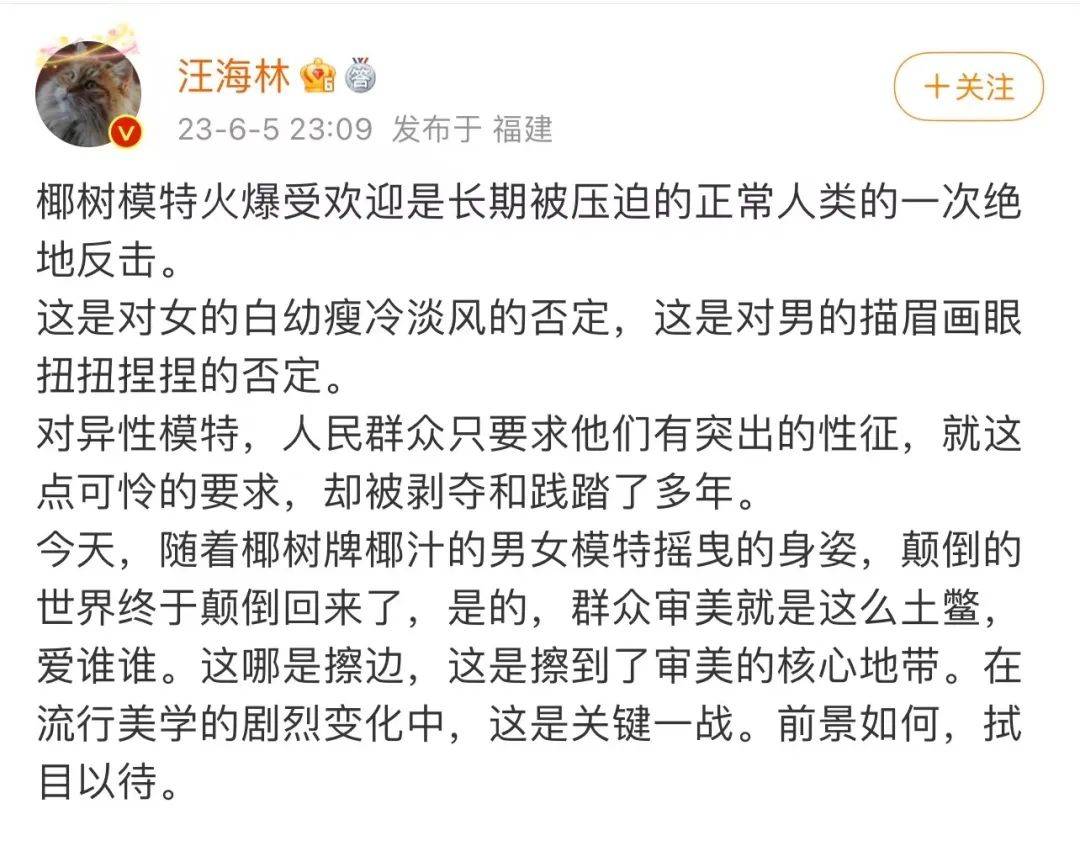 来源|新榜 椰树,一直在“擦边”,从未被超越。 到如今,“质疑椰树、理解椰树、成为椰树”的段子在品牌之间口口相传,就连椰树直播团队也会在公开场合大方承认“擦边”美学,调侃自己是“擦完左边擦右边”。 只是直播负责人尹丹丹偶尔会有点“委屈”,因为很多人以为椰树直播幕后策划是个油腻的中年男人,而她实际是个90后湖南妹子:“老是被人误会我是个老色胚。” 不久前,她带着椰树直播间几位当家主播登上天猫双11晚会,台上男模女模们一段劲歌热舞,再一次刷屏全网。 ![]() 对于成为话题焦点这事,椰树直播团队早已不陌生。 2022年10月1日,椰树模特团在抖音“出道”,四位女主播身着紧身T恤和短裤热舞,直播数次被平台掐断,热度伴随着争议一路上涨。 半年后,2023年3月,椰树直播间里的肌肉男模们再度引爆话题,每场直播曝光量超过千万,自此形成男女主播搭配热舞的固定画风。 ![]() 今年5月24日,椰树开启淘宝直播首秀,场观破百万,虽没卖货却带火了主播背心等同款产品。6月,有神秘网友花8万元拍下椰树直播间30秒“蹦迪权”,震惊一众吃瓜网友,被称为史上最贵蹦迪票,冲上热搜。 ![]() 从最初直播间频繁被掐断、全网指摘,到如今口碑逆袭、非白瘦幼审美被更多人认同,一年时间,椰树直播间打了一个漂亮的“翻身仗”,欢欢、启子、kk等几位当家主播也圈粉无数。 椰树是如何打造爆款直播间的?椰树式审美又是怎样形成的?新榜编辑部对话了椰树直播间运营方负责人,聊了聊网友最关心的直播画风等话题。 不走寻常路的椰树直播间,主业跳舞、副业带货 作为椰树直播间的幕后负责人,尹丹丹不是孤军奋战。 她的身后是一家名为“海南记得开心文化传媒公司”的MCN机构,团队一共二三十人,专门为了做椰树直播而聚集。 ![]() 据尹丹丹介绍,与椰树集团达成新媒体合作颇为不易,前后沟通磨合了3年时间。在此之前,拥有35历史的椰树集团完全没有新媒体渠道,广告基本投放在电视、广告牌等传统途径,卖货也是三十多年如一日地走线下销售。 ![]() 有知情人士称,就算不走线上渠道,椰树线下也不愁卖,而且椰树每年产量都很有限。因此,即使开始布局新媒体,椰树集团也是计划从品宣做起,而非一上来就带货。 近期直播时,椰树的抖音直播间里确实挂上了产品链接,不过大部分都是椰汁之外的产品,且模特除了拿着产品展示,也没有过多宣传吆喝台词。 “我们想让更多人知道椰树集团除了椰汁还有什么,吓火茶、菊花茶、冬瓜茶、椰子水、椰子油等等,椰树有24款饮品,新媒体宣传就是想把这些产品推广出去”,尹丹丹表示。 ![]() 椰树主播和火箭瓶矿泉水 她和团队一边学习、一边摸索椰树的新媒体路线。 刚开始做抖音的时候,尹丹丹想着要宣传企业价值,学习其他公司拍了一些正能量视频,比如椰树下乡做捐赠、疫情期间捐物送水,但连着拍了半年,没什么流量,点赞最高一两百。 她意识到,这类视频在观众看来可能平平无奇,于是决定转变思路,与海南本地百万网红“糯米”合作,尝试用年轻人更加喜闻乐见的方式,结合椰树直白、通俗的品牌宣传风格,创作接地气、有网感的内容。 很快,糯米就拿着手机来到椰树厂区,除了拍摄工人削椰子、搬运货品的流水线片段,他们也会带着模特们在椰树厂区跳舞,主打一个阳光积极,最多一天能拍三条视频。 ![]() 糯米出镜拍摄的椰树视频 事实证明,这样的转变确实押对了网友的口味,视频点赞量从几百一路涨到几万,再到2022年10月的第一场直播,热舞成为椰树直播最大看点,直接引爆全网。 此外,直播间也有不少经过设计的细节,比如灯光。尹丹丹告诉新榜编辑部,椰树直播间灯光经过多次调试,“这样在直播间里看到的模特身材和现实生活中是一模一样的”。 ![]() 有人问椰树直播的爆款创意从何而来,尹丹丹用了两个字概括——听劝。 直播间那些听起来洗脑上头的神曲,比如《爱如火》、《阳光开朗大男孩》、《粉红色的回忆》等,大多都来自网友的建议。 服装方面也是如此,刚开始直播时,网友说不喜欢服装风格,主播们就换成了白衬衣、西装出镜;过了一段时间网友们又说想看运动型体育生,主播们就换成了运动装。 ![]() “我们是一家很听劝的媒体公司,网友评论建议我们做什么,我们就会做什么,听人劝、吃饱饭。” “原汁原味”的椰树审美,从直播被掐到全网口碑逆袭 最开始,并不是所有网友都能接受椰树的直播风格,擦边营销等言论甚嚣尘上,椰树直播间几度被平台掐断。 然而,时间长了,椰树没有变,网友的看法却逐渐发生逆转。欢欢、启子等主播“一脸正气、眼神坚定地做一些油腻搞笑动作的直播片段”传遍全网,每个人脸上都洋溢着快乐的笑容,感染到不少网友。 ![]() 尤其是在白瘦幼审美陷入争议后,椰树直播间里女主播突出身材曲线、男主播大方展示肌肉的画面,被许多网友评价为“正常审美的回归”。 ![]() 编剧汪海林对于椰树直播间的评价 “口碑逆转的过程中,椰树什么都没有做,就是坚持做自己”,直播运营团队透露,椰树是个传统的公司,在公关方面没有太多动作,因此所有网络评价都是自然发酵而成的。 “坚持做自己”最具象的表现之一,就是椰树审美。 椰树集团创始人王光兴曾表示:“广告词要直白、通俗易懂,广告画面要直观明了、靓丽清晰,让消费者第一眼就知道那是我们的产品。” 所以,