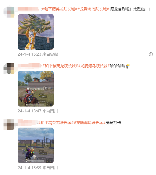 来源| 游戏陀螺 元旦刚过去,春节离我们也不远了,看着当下哈尔滨旅游等热门话题,更是让人心痒难耐想要暂停手头工作去祖国大好河山游览一番,狠狠庆祝即将到来的龙年。 而在《和平精英》近期上线了“龙跃长城”版本中,还真让不少玩家足不出户就提前过了一把爬长城的旅游瘾。在微博、抖音等平台都能看到有玩家晒出自己的长城打卡图,一时之间去龙脊山观光成了每局游戏最重要的时刻。 ![]() 玩家对新版本的响应度颇高 这次的新版本中,游戏基于明代砖石长城建筑形制,细腻还原了边墙、敌台、楼橹等建筑结构,无论是整体规模还是细节都像模像样。外加官方打造了山花烂漫的春日名景,更让玩家仿佛置身于真实的长城知名选段,也难怪大家会如此热烈地参与其中。 ![]() 那么《和平精英》下大功夫将中华民族的重要标志建筑做进游戏里,真的只为搭建一个打卡圣地吗?在游玩观光、搜刮资源的同时,我们还能从长城里收获什么?简单回顾一番,会发现《和平精英》或许早已向玩家心中洒下了更深刻的种子。 打卡热潮下的“万里长城守护者” 为什么新版本能打造出一个打卡圣地?其实进游戏玩上两局就能明显感受到,《和平精英》聚焦于“龙与长城”主题做了很细腻的设计,从“战斗”和“守护”两部分着力呈现了游览长城的豪迈感受。 进入海岛地图跳伞直飞龙脊山,就能看到一条巨龙卧于大地之上。沿山路延绵而上的龙身,直至仰天而望的龙头,制作组将长城与山峦塑造成即将一飞冲天的巨龙,既巧妙又气魄雄伟。 ![]() 玩家可以直接传送至龙首,但如果一路跑上去,那就能拥有“不到长城非好汉”的爬长城体验了。制作组可不是随便复制粘贴出一个类长城建筑,而是在其中加满了细节和补给,让人忍不住无视倒计时一路欣赏搜刮,直至走上龙头一览众山小。 ![]() 这里特别要提的,还有传送至龙头以及激活御龙台这两段精彩过场。为了给玩家更好的观赏体验,建筑体沿线设置了相应的拍照运镜打卡点,让玩家可以感受飞跃长城等多重运镜,以及体验黄昏、夜晚等不同时段的长城盛景。 丰富的场景设计自然激发了玩家的高度参与,在抖音上就能看到不少玩家的花式打卡和二创视频。玩家充分利用烟花、爱心烟雾弹、烽火台等道具及可交互场景,拍出了一幕幕“高空奇观”,呈现着各不相同的长城美感。 ![]() 战斗方面,虽然为了保障玩家的沉浸式游览,长城本身被设计为“禁枪区域”无法开战。但其周边的龙脊关及各种新战术道具、新坐骑的加入,都很大程度上丰富了竞技体验。 首先在御龙台触发事件后,玩家可以直接与队友们御龙在天、俯瞰全图,从容不迫地前往预期地点获取战略优势,这为队伍的整体战术规划提供了很大的操作空间。 ![]() 其次是击杀敌人能升级补给的“虎符”、让人一飞冲天的“便携狼烟”等等能衍生出各种战术的新道具。这些道具带来了便捷的立体移动、装备补给和位置探知方式,也使得龙脊关成了近期的兵家必争之地,每天都在打响对抗激烈的最强小队争夺战。 还有新加入的坐骑“马”,也刷新了高速移动战的表现力,非常考验玩家的操作水平。看着社交平台上马战视频中精妙的“马术”和快速开镜射击,那叫一个赏心悦目。 ![]() 很显然,将长城加入到海岛地图并非制作组一拍脑袋就想出来的联动决定,而是兼顾沉浸探索和丰富可玩性的创意设计。即便回归到战术竞技品类从“战斗”的角度看,长城新版本也确实能为玩家的对局体验注入更多变数。 而在绿洲世界内,玩家则可以跟着吉莉姐的任务,成为一名光荣的“长城戍卫兵”。通过登上敌台观察敌情、来一场神似打地鼠的“军粮争夺战”等任务,逐步了解一名长城戍卫的日常,从“防守”的视角感受长城的意义。 ![]() 绿洲世界里的长城规模更大,官方依据地势特别还原了“箭扣-鹰飞倒仰”与“喜峰口-水长城”等现实长城的标志性选段。由此我们得以在游戏中切身感受雄鹰来了都要倒仰的陡峭,以及水天一色与古老边墙相映衬的秀美,从各个视角认识长城。长城周边山花烂漫的景象,也让玩家找到了更多的“出片”角度。 ![]() 同时由于绿洲世界里的长城蕴含细节更多,玩家还有了学习真实历史知识的机会。比如任务中吉莉会叫玩家去寻找地上的一块棋盘、边墙上的一块砖,并向玩家科普其中蕴含了哪些典故。 我因而头一回知道了那些过着漫长驻守生活的士兵会在地上刻下棋盘,借此娱乐暂时忘却严寒与离家的痛苦。 ![]() 长城的砖块上,则会刻下维护情况、相关责任人等信息以便追溯,如此成熟的管理体系如今看来也是对古代工匠们辛勤劳动的一种记录。 ![]() 这些真实的历史回忆,都被游戏自然生动地串联了起来,让玩家得以从戍卫兵的视角感受究竟何为保家卫国、戍守边境。吉莉还会带来长城知识小问答,让玩家巩固刚学到的内容,进一步感受长城的价值所在。而完成整个任务线后获得的“龙的传人”特殊头套,更可谓是点睛之笔。 而伴随新版本的玩法内容,《和平精英》显然还希望能将守卫长城的精神传递到现实中。 《和平精英》会携手中国文物保护基金会、北京市文物局与腾讯公益,助力到箭扣五期长城保护修缮相关公益项目中,为文物保护提供实际帮助。同时所有和平玩家也有机会参与其中,继续深度体会守卫长城的责任感。 比如前阵子知名艺人