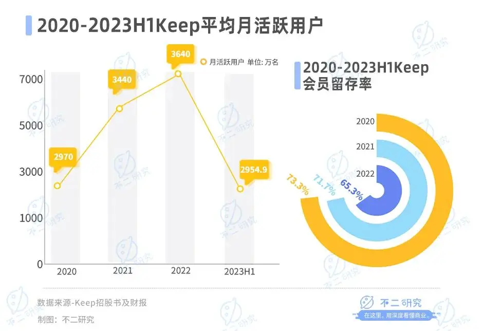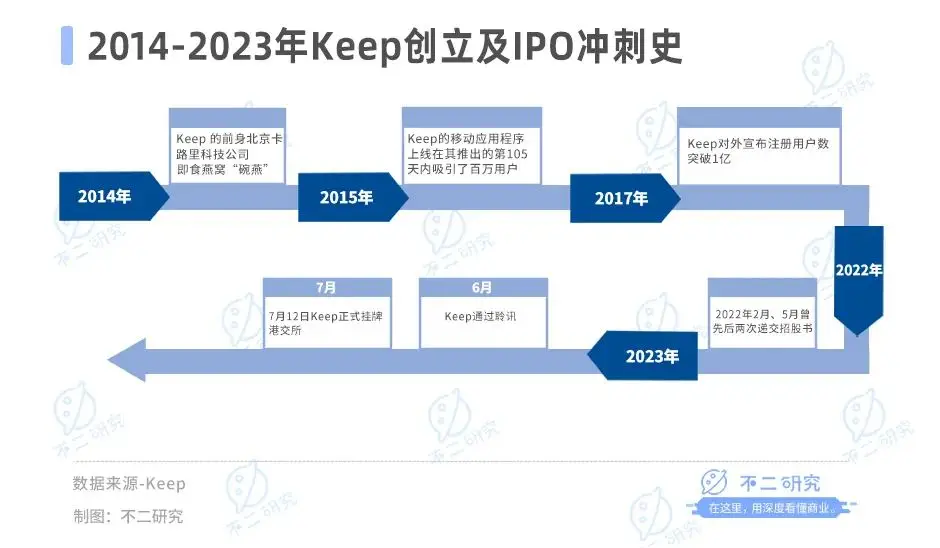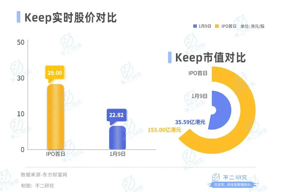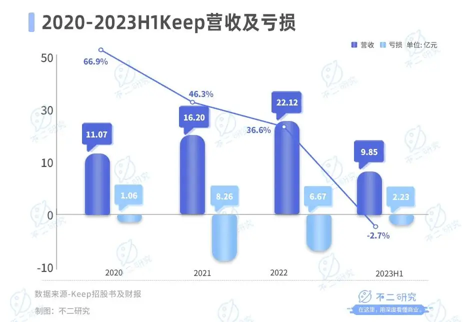 作者 | 艺馨 秀一 排版 | Cathy 监制 | Yoda 出品 | 不二研究 “运动科技第一股”Keep的股价又跌了。 1月9日,keep港股盘中跌超6.31%,当日报收6.98港元/股;创上市以来新低,这也是其股价连续第9个交易日下跌;相较于2023年7月IPO首日收盘价29.00港元/股,Keep的股价已经跌去近8成。 上市不足5个月,根据Keep在此前公布的上市后首份半年报:其在持续“烧钱”的亏损中。 「不二研究」据keep半年报发现:2023年上半年,Keep经调整后的净亏损为2.32亿元、月活跃用户同比减少812.9万名。目前,Keep主要面临持续亏损、平均月活跃用户减少等问题,在「不二研究」看来,这主要是由于Keep高昂的成本侵蚀其净利润;与此同时,随着乐刻、超级猩猩等新兴健身房品牌不断涌现,未来Keep的流量或将难以回到此前水平。 Keep是一家在线健身平台,主要产品包括在线健身内容、智能健身设备和配套运动产品。 截止1月9日港股收盘,Keep报收6.77港元/股,对应市值35.59亿港元(约折合人民币32.61亿元);对比IPO首日市值153亿港元,上市后的五个月内,其市值已经蒸发116.68亿港元(约折合人民币106亿元)。 ![]() 「不二研究」据其半年报发现:今年上半年,Keep的营收为9.85亿元,同比减少2.7%;同期,经调整后的净亏损为2.32亿元,同比收窄29.7%。 去年7月的一篇旧文中(《“运动科技第一股”来了,Keep市值153亿港元》),我们聚焦于Keep挂牌港交所,尽管成为“运动科技第一股”,但仍面临增收不增利困境。 时至今日,Keep不仅面临营收下滑、持续亏损等问题未解,且直面月活跃用户流失及流量增长疲软的挑战。 面对用户的流失,Keep还能“keep”住吗?由此,「不二研究」更新了7月旧文的部分数据和图表,以下Enjoy: Keep于2023年7月12日正式挂牌港交所,其发行价为28.92港元/股,IPO首日报收29.00港元/股,涨幅26.98%。 9月19日,Keep交出上市后首份半年报:2023年上半年,Keep实现营收9.85亿元,同比减少2.7%;经调整后净亏损2.23亿元,同比收窄 29.7%,仍处于亏损中。 在「不二研究」看来,Keep深耕线上健身市场,在为健身内容和付费课程投入巨大成本的同时,仍面临月活跃用户流失和流量增长疲软的问题。 在健身市场的激烈竞争中,Keep依然没有盈利。在巨额亏损之下,keep如何“keep”? 营收增长难掩亏损 Keep 的前身北京卡路里科技公司诞生于2014年,彼时90后创始人王宁曾花了8个月投入健身,成功减肥瘦身50斤,随着全民运动风靡,他选择了创业,打造一个优质健身内容的社区。 2015年,Keep的移动应用程序上线,在其推出的第105天内吸引了百万用户,上线不到3年,2017年8月,Keep对外宣布注册用户数突破1亿。 成立至今,Keep共进行了9轮融资,其中F轮获3.6亿美元,为数额最大的一笔融资。天眼查数据显示,F轮投资方包括软银愿景基金、高瓴资本、腾讯投资等。 此时的Keep已贯通线上线下业务,兼具线上APP、自有品牌产品和线下健身馆的完整商业闭环。 作为一个健身圈独角兽,Keep曾屡传IPO。从2022年2月25日,到2022年9月6日,再到2023年3月28日,Keep一共向港交所递交过3次招股书;直到2023年6月,Keep正式通过聆讯。 2023年7月12日,Keep 在港交所上市,成为 " 运动科技第一股 "。发行价为 28.92港元股,但其上市首日开盘破发,最低报28.55港元/股。 ![]() 上市之后,keep的营收高增长未能持续。据招股书及财报显示,2020-2022年及2023年上半年,Keep的收入分别为11.07亿元、16.20亿元、22.12亿元和9.85亿元。其中,2020-2022年,Keep的营收增长率分别为66.9%、46.3%、36.6%、-2.7%。 收入增速同比下滑的同时,Keep同样未能实现扭亏为盈,Keep的业绩仍处于亏损状态。 据招股书及财报显示,2020-2022年及2023年上半年,Keep经调整亏损净额分别为1.06亿元、8.26亿元、6.67亿元和2.23亿元;其中,2023年上半年经调整净亏损为2.23亿元,同比收窄29.7%。 ![]() 成本开支方面,2020-2022年及2023年上半年,Keep的营业成本分别为6.07亿元、9.43亿元、13.11亿元和5.61亿元,占总收入的54.9%、58.2%、59.3%和57.0%。 在「不二研究」看来,高成本的支出正在蚕食着Keep的利润,而自有品牌产品的市场已呈现下滑趋势。 虚拟奖牌拉动营收 Keep的业务构成分为自有品牌运动产品、会员订阅及线上付费内容以及广告及其他。 过去三年半,自有品牌作为Keep最大的收入源。据招股书及财报显示,2020-2022年及2023年上半年,自有品牌产品收入分别为6.37亿元、8.72亿元、11.37亿元、4.66亿元,占总收入的57.5%、53.9%、51.4%和47.31%。然而,到2023年上半年,该业务收入同比下滑9.5%,自有品牌运动产品收入的减少,主要由于健康食品类产品销售额减少造成。 同期,会员订阅及线上付费内容收入分别为3.38亿元、5.58亿元、8.94亿元和4.49亿元,占总收入的30.5%、34.4%、40.4%和45.58%。 Keep坦言,会员订阅及线上付费内容业务收入的增加,主要是由于虚拟体育赛事所产生的收入增加。此外,Keep还与Hello Kitty及蜡笔小新等热门IP联名,推动体育赛事的增长,参加体育赛事。 广告和其他服务收入分别为1.32亿元、1.90亿元、1.80亿元和0.69亿元,占总收入的12.0%、11.7%、8.2%和7.0%。 ![]() 三大业务成本占比以自有品牌产品居多。 2020-2022年及2023年上半年,自有品牌产品成本分别为4.06亿元、6.29亿元、8.17亿元和3.36亿元,占总营业成本的36.7%、38.8%、36.9%和59.9%。 会员订阅及线上付费内容成本分别为1.19亿元、2.33亿元、4.09亿元和1.79亿元,占总营业成本的10.8%、14.4%、18.5%和31.9%。 广告和其他服务成本分别为0.82亿元、0.81亿元、0.8