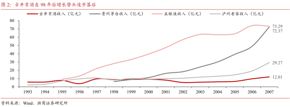 来源|砺石商业评论 存货大增,预收账款同比降低,即将跨过200亿门槛的古井贡酒不无隐忧。 1难以为继的高估值 一个人的命运,当然要靠自我奋斗,但是也要考虑到历史的行程。 临近岁末,白酒行业的寒气越来越冷,这对于着急冲击白酒两百亿阵营的古井贡酒来说显然不是好消息。 在多数人的印象中,地处安徽亳州的古井贡酒在浓香酒阵营中并不突出,知名度远低于五粮液、泸州老窖以及洋河股份等全国化白酒品牌。 但在二级市场中,近几年的古井贡酒却是一匹难得的黑马股,在持续低迷的白酒板块中一路逆势上涨。2023年4月,古井贡酒股价创出了300元的收盘价新高,总市值逼近1600亿元,市盈率更是突破50倍,成为白酒百亿阵营中估值最高的酒企。 ![]() 业绩的高增长成为古井贡酒市盈率超越贵州茅台的关键。数据显示,2021年-2022年,古井贡酒实现营业收入分别为132.70亿元、167.13亿元,同比增长分别为28.93%、25.95%,实现净利润分别为22.98亿元、31.43亿元,同比增长分别为23.90%、36.78%,业绩增速在白酒阵营中位列前茅。 2023年三季报显示,2023年1-9月,古井贡酒实现营业收入159.53亿元,同比增长24.98%;净利润38.13亿元,同比增长45.37%,业绩增速依旧保持在行业较高水平。 数据显示,2022年第四季度,古井贡酒营收为39.49亿元。这也就是说,只要2023年第四季度营收不出现同比下滑,古井贡酒2023年的营收就将突破200亿元大关。 2023年2月,古井贡酒董事长梁金辉曾公开表示,2023年古井集团“要拿下200亿元,向更高目标奋力进发”。显然,前三季度的业绩表现,让古井贡酒进入“白酒200亿俱乐部”的底气十足。 然而,在公司三季度业绩高增长的背后,古井贡酒的存货、预收账款等多个指标明显承压。三季报数据显示,截至2023年9月末,古井贡酒存货金额为64.44亿元,较上年同期增长近11亿元,再创历史新高;预收账款(合同负债)金额为33.15亿元,较上年同期减少4.48亿元。 11月中旬,一份《关于2023杭州国际酒业博览会的延期通知》引起行业极大关注,这也让白酒企业的库存压力成为舆论的焦点。截至2023年三季度末,A股上市白酒企业存货总额为1363.54亿元,总量接近50万千升,相当于10亿瓶500ml标准瓶白酒。 预收账款则被视为白酒企业业绩的“蓄水池”,用来反映公司未来业绩的增长能力。尽管前三季度白酒企业业绩增速普遍承压,但五粮液、泸州老窖、洋河股份等头部白酒企业的预收账款金额仍处于同比增长的态势。 进入到11月份以来,古井贡酒股价从294.88元一路跌至213元,区间跌幅达到近30%,远超同期白酒板块跌幅。 如果说存货的激增尚属于行业共性问题,古井贡酒预收账款的下滑就显得更为异常。从这个数据来看,古井贡酒未来的业绩增长动力会弱一些,这也是公司股价深度调整的一个重要原因。 即便是股价深度调整之后,古井贡酒市值仍高达1129亿元,滚动市盈率高达28倍,在百亿阵营中仅次于贵州茅台(29倍),远高于20倍的行业平均值水平。显然,想要继续维持现在的估值水平,古井贡酒还要真正讲好公司未来的成长故事。 2不愿偏安的徽酒龙头 古井贡酒公司前身为1959年建厂的亳县古井酒厂,历史最早可以追溯到明朝正德年间,属于“老八大名酒”之一。1996年,古井贡酒成功上市,并且是A股和B股同时发行,也是国内第一个A+B股上市的白酒企业。1997年,古井贡酒营收达到9.6亿元,成为仅次于五粮液、泸州老窖的第三大白酒企业,可谓风光无限。 1998年开始,由于盲目多元化、管理层腐败等一系列失误,古井贡酒错失了白酒行业的黄金十年,并由全国性酒企退居区域性酒企,营收大幅落后于五粮液和贵州茅台等对手。另外,由于公司早期采取了“降度降价”的策略,古井贡酒没有及时跟上白酒高端化的发展趋势,并一定程度上影响了品牌形象。 ![]() 2008年开始,古井贡酒在新任管理层的带领下全面停止多元化,重新聚焦白酒主业。2008年,古井贡酒发力中高端战线,推出拳头产品年份原浆系列,年份原浆古5、古8系列相继问世。与此同时,古井贡酒在销售渠道方面全面实施“三通工程”,通过精细化的销售渠道抓住省内白酒市场消费升级的契机,逐渐坐稳了徽酒老大的位子。 2014年,擅长营销的梁金辉正式成为古井贡酒新一代掌舵人。此后,古井贡酒大力布局次高端白酒市场,在全国主推“年份原浆”,并不断加大营销费用支出,连续8年在春晚亮相,多次冠名安徽卫视春晚和江苏卫视春晚,带动销量快速提升。 为了进一步开拓全国市场,古井贡酒还采用了对外收购白酒品牌的外延式发展策略。2016年,古井贡酒与具有湖北省唯一“中国名酒”称号的白酒黄鹤楼酒业签订战略合作协议,以8.16亿元收购黄鹤楼酒业51%的股权。2021年,古井贡酒宣布并购安徽明光酒业。至此,古井集团拥有“古井贡酒、黄鹤楼酒、明光酒”三大品牌。 2019年,古井贡酒营收首次突破百亿大关,公司董事长梁金辉提出了“再造一个新古井”的战略构想,并计划于2024年实现200亿的营收目标。2023年2月,梁金辉又公开表示,2023年为古井集团的改革深化提升年,“要拿下200亿元,向更高目标奋力进发”。 一直以来,不少业内人士将500亿元、200亿元和100亿元作为白酒第一、第二和第三梯队的划分标准。2022年,19家白酒上市公司中,除了第一梯队的贵州茅台和五粮液之外,只有洋河股份、山西汾酒以及泸州老窖三家企业营收突破200亿元,今世缘、古井贡酒、舍得酒业