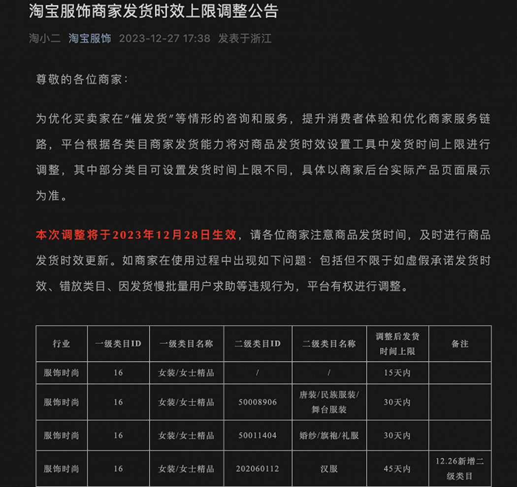 来源 | 伯虎财经(bohuFN) 作者 | 陈平安 低价大战一年后,拼多多的股价上涨超70%,市值超过了曾经的一哥阿里,也超过了四个京东。 竞争对手的迅猛成长,让曾经中国电商“唯二”的创始人们不得不出来稳住场子。马云一边祝贺拼多多,一边用“AI电商时代刚刚开始,对谁都是机会,也是挑战”鼓舞士气,刘强东则在反思公司问题的同时用“我不会躺平”号召兄弟们坚持战斗。 在互联网惨淡的2023,拼多多几乎是唯一还能维持高速增长的存在。它用业绩打脸了一众基金经理的同时,也让同行们完成了从质疑、理解再到成为的转变。 继陆续在主站推出“百亿补贴”、把价格力放在首位后,淘天和京东又相继学起了拼多多的“仅退款”。 12月27日,淘天发布的关于变更《淘天平台争议处理规则》的公示通知中新增了淘天基于平台自身大数据能力,识别多维度结合,对于买家发起符合相关情形的售后,做出快速退款或退货退款的规定。 京东则分别在《京东开放平台交易纠纷处理总则》和《京东开放平台交易纠纷处理总则》中新增了交易纠纷新增支持用户仅退款的内容和标准。此前,消费者在京东平台只能申请换货和退货退款,而申请“仅退款”后,消费者无需返回原商品。 过去很长一段时间,行业都耽溺于消费升级的美梦,淘天和京东分别站稳了自己的生态位,电商很难再生长出新的巨头。 不过现在,不论是阿里还京东,都必须追赶拼多多了。 竞争进阶 去年年底,淘天和京东不约而同的把低价放到了第一位。淘天把价格力写进了2023五大战略,刘强东直接在内部会议上强调,“低价是我们过去成功最重要的武器,以后也是唯一基础性武器。” 尽管拼多多成功把低价写进了自己的标签,但这个标签的主要竞争力来自于和品牌相对应的白牌商家。以竞对京东的数据为例,今年二季度京东电子产品及家用电器的收入达到1521.31亿元,同比上升11.3%;但日用百货商品收入为817.24亿元,同比下跌9%。 争夺白牌商家成为了竞争的核心。 为了吸引中小商家,京东在今年初发布了春晓计划,放开POP招商,并推动自营和POP商家的流量平权,为商家提供“0元试运营”“最快1分钟开店”“百亿流量扶持”等一系列扶持举措。 淘天同样如此,今年618,淘天首次上线中小商家专属618营销通道,并首次为中小卖家定制营销IP:淘宝好价节。淘宝好价节的入口也被放在了首页C位。 但当大家供给端的牌都一模一样,决定胜负的关键只能出在别的地方。互联网分析师丁道师表示,目前电商行业处于消费难、供给过剩的情况,电商平台相对来讲并不缺商家,而是缺消费者、缺订单。 而随着移动互联网增量见顶,存量竞争下,需求端用户心智的把控成为了的重要比拼维度。 拼多多的 “仅退款” 政策上线于 2021 年,意在针对平台内存在的货不对板的欺诈商品,改善用户体验: 当用户维权的单笔金额在20元以下的时候,平台会自动介入,越过商家直接为用户退款;而当订单金额更高时,平台也会综合各项指标,为信用记录优秀的用户退款。 这是一项明显偏向用户的政策。今年3月,拼多多的部分商家就曾因为“仅退款”选择反抗“炸店”。但拼多多的政策并未因此松动。 “仅退款”和“百亿补贴”一起成为了拼多多最令人印象深刻的设计:后者成功框住了商家,提升了平台的商品生态,前者则建立起服务心智,让用户相信在拼多多不会吃亏。 “没其他的,就是想退货的时候更省心。”有拼多多用户向伯虎财经表示。“仅退款”成为电商平台服务的新标准本质是用户优先原则的体现。 不只是“仅退款”,为了提升核心品类——服饰的用户体验,淘宝还对大家诟病已久的预售动了刀。淘宝服饰发布公告,对商家发货时效上限作出调整,日常女装等大部分服饰箱包鞋类的发货时间上限为15天,唐装/民族服装/舞台装、婚纱/旗袍/礼服等类目不得超过30天,汉服类不得超过45天。若因超时发货被买家发起投诉,商家可能需要赔付。 ![]() 不过,由于三家平台的情况并不相同,因此在“仅退款”的规定上也有所出入。比如,淘宝的核心优势是品类多,号称万能的淘宝,大部分收入来自商家的站内投放,因此也会根据卖家的实际经营行为去选择决定是否支持买家的退款请求。同时淘宝还为商家提供的快捷申诉通道,30天期内的所有订单商家都可以提起申诉。 如何破局 对于过去一年的表现,阿里和京东显然是不满意的。 今年以来,阿里变动频繁。3月阿里启动“1+6+N”组织变革,宣布各业务独立,核心业务淘天由戴珊接管。随后在9月,蔡崇信和吴泳铭正式接任阿里巴巴集团董事会主席和CEO。 12月,阿里宣布淘天集团董事长吴泳铭兼任淘天集团CEO,原CEO戴珊将协助筹建阿里巴巴集团资产管理公司,同时淘天的管理层也赢来了大洗牌。 双十一过后仅仅4天,京东集团发布公告称,集团CEO许冉将兼任京东零售CEO,立即生效。 这也意味着巨头们迫切的想要改变当下的局面。 淘宝把注下在了AI上。上任之际,吴泳铭发布全员信,宣布确立两大战略重心:用户为先、AI驱动。前者好理解,后者呢? 根据此前的报道,淘天集团的大模型团队主要围绕两个场景:一是搜索、广告、推荐,二是逛逛的内容化。 电商的核心逻辑是效率,通过提高商品到消费者的流转效率从而降低成本,直播电商的兴起本质则是通过推荐来提高决策效率。 而借助大模型的文字,图片,视频等生成等能力,
