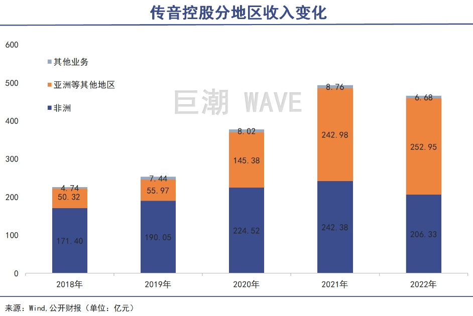 来源|巨潮WAVE 在非洲卖手机的宁波老板竺兆江,又带着公司赚了50多个亿的利润。 12月末,上市公司传音控股发布业绩预告,预计2023年营收约621.22亿元,同比增长33.32%;归母净利润达54.93亿元,同比增长121.15%。 传音控股,有着“非洲手机之王”的美誉,曾依靠最低80元/台的功能机产品打开非洲手机市场的大门,获得了高于其他手机厂商的市场占有率和品牌影响力。 和传音的局面大相径庭,过去一年全球消费电子产业都陷于寒冬之中。包括Counterpoint Research、IDC在内的多家行业机构均预期,2023年全球智能手机出货量是近十年最低的水平。 ![]() 究其原因,巨潮发现,除了非洲手机市场领先全球复苏这一大环境因素外,传音控股业绩的高增长,与其近两年推广的产品高端化升级与不断开拓新兴市场密不可分。这一发展路径与当初小米、OPPO们如出一辙。亚非拉国家"功能机向智能机切换"的消费升级大趋势,让传音控股得以享受其中红利。 传音主攻的亚非拉新兴市场,从体量规模上看远不及欧美,却拥有庞大的人口基数,和不断增长的中产阶级人口,成长潜力更大。 不过,只有深度出海和拥有本土化能力的玩家,才有资格享受这种并不容易摘到的果实。用一句投资中常用的话总结就是,当机会来临时,在场很重要。 独立行情红利 “独立行情”的红利。2023年的全球智能手机市场是名副其实的“逆风局”,但传音控股不光是收入和利润创下了历史新高,同时出货量和市场占有率方面也在攀升。 根据市场调查公司Canalys的数据,2023年三季度,传音控股的智能手机出货量为2600万台,同比增长40%,出货量排名首次跃居全球第五。与第四名的OPPO相比,其销量仅少了40万台。 该报告还显示,销量全球前5的智能手机企业当中,只有小米和传音的销量出现了增长。三星、苹果和OPPO的手机销量分别同比下降9%、6%和8%。 ![]() 对于传音控股来说,其重点覆盖的亚非拉新兴市场的手机消费韧性较强且率先复苏,是其业绩得以翻转最关键的因素之一。 亚非拉新兴市场虽然国家经济发展水平仍低,但人口基数大,人均手机保有量小——这意味着更大的增量空间。另外,这些地区对于智能手机的需求正随着国家发展逐步提升,存在更大的结构性改善需求。 Canalys去年12月发布的报告称,2023年第三季度,非洲地区智能手机连续两个季度实现强势复苏。在不良的全球宏观经济环境下,该地区的智能手机出货量仍同比增长了12%。这与机构对于2023年全球智能手机出货量“同比下降5%”的整体情况预测形成鲜明对比。 作为在非洲深耕多年的企业,传音控股自然可以率先享受这个市场“独立行情”的红利。 IDC数据显示,2023年第三季度,传音控股(包含旗下TECNO、infinix、itel三大手机品牌)在非洲智能手机市场出货量取得了9%的同比增长。市占率为48%。 全周期红利 渗透率从低到高的全周期红利。通常来说,当某企业在单一市场的份额达到50%之后,进一步提升市占率的难度会非常之大。此时无论是消费者偏好的变化,还是其他对手的杀入,对于在位者来说都是不小的挑战。 这是传音在过去数年间面对的主要成长困境之一。根据机构IDC的数据,2019年时传音手机(包含智能机和功能机)在非洲市场的市占率就已经达到了52.5%。 在此背景下,谋求主业的持续快速增长是非常困难的。 为此,传音采取了两个主要策略:一个是开拓非洲以外的其他新兴市场;二是对产品进行高端化升级,以获得更高的品牌溢价和利润。 传音开拓新兴市场的策略早已持续数年。2018年-2021年,是传音非洲业务的低潮期,营收增速一直低于20%。这阶段其业绩的增长主要依赖亚洲及其他地区市场,包括印度、孟加拉、巴基斯坦、印度尼西亚等。 随着2022年全球手机市场开始步入寒冬,全球智能手机出货量整体下降12%,传音控股在开拓新兴市场上也很难获得高增长。财报显示,传音控股2022年营收同比下降了5.7%;净利润为24.84亿元,同比下降了36.46%。传音手机的出货量也出现了下滑,比2021年少了4100万部。 ![]() 在此背景下,传音控股开始转向产品的高端化策略,不断推出新的中高端机型。 巨潮梳理发现,自2022年开始,传音相继上市了配备全球首款单反级伸缩人像摄影镜头的PHANTOM X2系列、配备180W快充的INFINIX Zero Ultra等高端机型;2023年2月又推出了首款折叠智能手机TECNO PHANTOM V Fold,不断向中高端市场发起冲击。 从2023年暴增的业绩来看,高端化的策略已初见成效。受益于这种产品结构的升级,2023年前三季度,其毛利率达到24.8%,同比提升近5%。 复盘传音控股业绩逆转的过程,其发展策略实际上与多年前的小米颇为相似:先通过低中端产品最大程度地占领快速增长的市场,待手机渗透率相对稳定、市场放缓后,再推出中高端产品。通过两步走,赚取一个手机市场从渗透率从低到高的全周期红利。 另一个跟小米相似的是,传音控股也在围绕手机打造“手机+AIoT+软件服务”的商业生态模式。这些业务的体量虽然短时间内没法和手机相比,但同样也存在着可观的成长空间。 同时,手机AIoT生态圈产品渗透的阶段要晚于手机,又与手机存在着互联互通的便利,属于是“送到手机厂商嘴边”的生意。 目前传音通过旗下消费电子品牌Oraimo产品布局AIoT生态,产品包括了TWS蓝牙耳机、智能手表、蓝牙音箱等。Canalys数据显示,在TWS耳机领域,传音在2023年三季度以63%的品牌市占率稳居非洲市场首位,出货