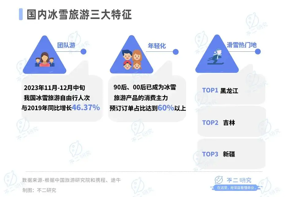 作者 | 艺馨 禄存 排版 | Cathy 监制 | Yoda 出品 | 不二研究 今年冬季,冰雪游热度不减,哈尔滨成为最大赢家。 仅在元旦假期,根据携程数据显示,黑龙江元旦假期订单量同比增长490%,其中,哈尔滨元旦旅游订单同比增长631%。 受哈尔滨旅游市场出圈影响的出圈,其具有冰雪旅游概念的长白山和大连圣亚也备受关注。 2024年首个交易日,长白山(600715.SH)、大连圣亚(002878.SZ)两只“冰雪旅游概念股”联袂上演一字涨停,并连续5个交易日涨停。 截止1月12日港股收盘,长白山报收31.51元/股,对应市值84.03亿元;大连圣亚报收27.66元/股,对应市值35.63亿元。 ![]() 「不二研究」据两者的三季报发现:今年前三季度,长白山、大连圣亚的营收分别为4.97亿元和3.97亿元;营收增速分别为209.37%、179.1%。 同期,长白山、大连圣亚的净利分别为1.52亿元和1.10亿元;净利增速分别为693.26%、321.66%。 去年2月的一篇旧文中(《元隆雅图、文投控股、安踏…谁是"冰雪盛宴"大赢家?||Focus》),我们聚焦于冬奥催熟冰雪经济,冰雪文化借冰墩墩出圈,元隆雅图、文投控股频涨停。 时至今日,随着冬奥效应的延续,哈尔滨的“冰雪消费”急剧升温,但仍需面对季节性等现实问题。当冰雪经济成为新风口,“冰雪旅游概念股”还能持续多久? 冰雪大世界、亚布力滑雪场、索菲亚大教堂在收获巨额流量的同时,其商业价值也备受瞩目;与此同时,“冰雪旅游概念股”接连涨停、滑雪场成打卡圣地。冰雪运动、冰雪文化和冰雪旅游三者的高关注度,印证着冰雪经济的新机遇。 根据《中国冰雪产业发展研究报告(2023)》,2023年我国冰雪运动人数已超3.4亿。中国旅游研究院统计,2023-2024年冰雪季我国冰雪休闲旅游收入有望达到5500亿元。 正所谓“冰天雪地也是金山银山”,冰雪经济的广阔市场,孕育着巨大消费潜力,运动品牌、文化公司和旅游景点等都将从冰雪经济的产业链中受益。想要构建完善冰雪经济体系,需得形成“冰雪运动-冰雪文化-冰雪旅游”三者的闭环。 冰雪运动作为新增长点,引领运动品牌新的方向;冰雪文化借冰雪大世界出圈,概念股将迎业绩兑现期;冰雪旅游持续增长,仍需直面季节性等现实问题。 冰雪运动:新增长点 自2022年北京冬奥会举办以来,大众参与冰雪运动的热情持续攀升。 根据去哪儿数据显示,2023年11月,平台上关于“滑雪”的相关搜索环比增长3倍,全国滑雪场门票预订量较2019年同期增长147%;携程数据显示,截至2023年底,滑雪门票订单量周环比增长113%,较上年同期增长近两倍。 「不二研究」注意到,后冬奥时代,国内滑雪市场在新雪季将迎来爆发,以滑雪产业为支撑的冰雪经济正持续释放潜力。 据国家统计局社情民意调查中心,2015年北京成功申办冬奥会至2021年10月,全国冰雪运动参与人数达3.46亿人,冰雪运动参与率达24.6%。 ![]() 冬奥盛会带来的巨量曝光也转化为“野性消费”。相关数据显示,2022年2月,京东运动安踏羽绒服成交额同比增长203%,迪桑特羽绒服成交额同比增长196%。 在冰雪运动热潮下,滑雪装备的消费也大幅上涨。根据京东发布的数据显示,在2023年11月,滑雪装备成交额快速增长,其中滑雪面罩、滑雪衣裤套装、滑雪服等产品成交额增长均超过100%。 随着滑雪成为冬季热门运动,波司登、蕉下等众多国产品牌也纷纷入局“滑雪装备”。此间蕴藏着巨大的市场空间,波司登在2024财年中期业绩报告中也将其视作新的业绩增长点。 据2024财年中期业绩数据,波司登主品牌收入44.21亿元,雪中飞品牌营业收入仅2.65亿元,在羽绒服板块占比5.4%,远不及主品牌波司登的收入规模。 此外,根据波司登天猫官方旗舰店显示,目前波司登官方旗舰店中的一款今年新推出的户外鹅绒服,标价为7419元。此外,还有多款滑雪服,定价均在5000元以上。然而,这些高价产品是否能够获得市场的认可,仍有待观察。 ![]() 由于冰雪运动相较于球类等大众运动更加昂贵,其用具也具备高端化特征。其余两个以谷爱凌为代言人的专业滑雪品牌FACTION和OAKLEY则主打中高端路线。 谷爱凌与FACTION联名的天才1GU黑豹签名款双板折后价格为3568元,属高客单价商品;为谷爱凌和苏翊鸣佩戴的OAKLEY护目镜价格也在1500左右。目前波司登尚未推出专业的冰雪运动用具,仍以羽绒服为主。 国潮之风尚未吹到冰雪运动领域,为玩家们所钟爱的还是BURTON等国际品牌。在专业赛道的较量中,波司登通过贴牌代工和性价比切入赛道,但要填补高端品牌的空缺并不容易。 此外,据长白山一滑雪服租赁老板介绍,今年滑雪服租赁更火爆,“滑雪服、护镜、护具、手套打包在一起进行租赁,套餐价格100-600元不等,线上选好款式之后,可以直接送到酒店或雪场。 ![]() 国产滑雪服品牌想要突破市场限制,仍需要在产品、渠道、营销和细分市场上下功夫。除了增加雪头盔、雪镜、手套等高毛利产品的销售外,还需持续拓宽滑雪服的穿着场景。可以预见,波司登等品牌的进阶之路并不会如预期般一帆风顺。 冰雪文化:喜忧掺半 伴随着哈尔滨旅游市场出圈影响的出圈,其具有冰雪旅游概念的长白山和大连圣亚也备受关注。 据携程统计,哈尔滨冰雪大世界在元旦假期第二天暂停售票,元旦假期内,哈尔滨的异地客群占比75%,主要来自上海、深圳以及北京,3天假期旅游订单量同比大涨158%。 冰雪大世界的火爆也带动了整个产业链的兴旺。据黑龙江文旅厅披露的数据,2024年元旦期间,黑