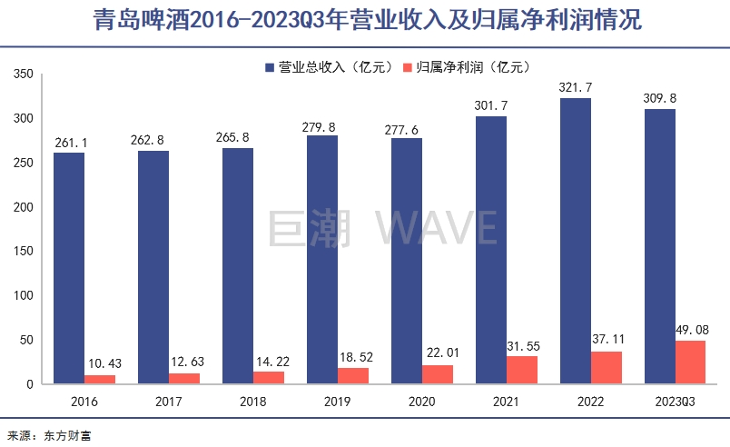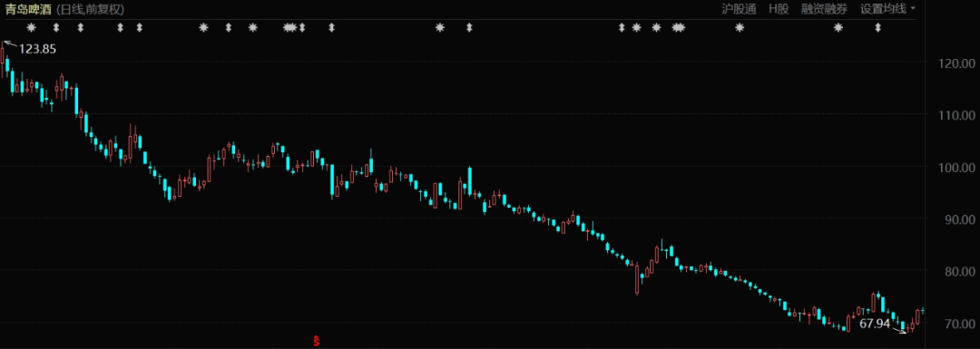 来源|巨潮WAVE 2024年了,青岛啤酒的市值表现依然没有起色。 自2023年12月1日开始,青岛啤酒的市值持续一个多月破到千亿大关以下。而其上一次市值低于千亿,还是在2020年6月。不同的是,那时的青岛啤酒脚踩五色祥云,3个月内从30多元飙升至70多元,一派繁荣。 现在的青岛啤酒恰恰相反,从120元高点直坠而下,到最低不足70元。许多人把这个下跌归咎于10月份的那一泡不合时宜的尿,认为是这个事件给青岛啤酒带来的一身骚味,迟迟不能散去。 这是一种比较轻易就能得出的结论,却不是值得我们认可的结论。股价的涨跌,有比新闻事件更深刻的原因。 过去的几年,中国整个啤酒行业的高端化战略取得了相当大的成功,行业利润走向集中。青岛啤酒作为行业头部,在过去五年持续强势。到现在为止,高端化的成功,在啤酒行业里青岛啤酒敢说第二,没有企业敢称第一。 在股价大跌之前,青岛啤酒还刚刚创下历史新高的市值,但如今等闲平地起波澜,大环境对于消费品的“通杀”,让青岛啤酒也难以独善其身。至于几个月前的那泡尿,无非是一个恰逢其时的引子罢了。 难以独善其身 各消费品市场都陷入到一片悲观情绪中。如果你是青岛啤酒的拥趸,恰巧也关注了青岛啤酒的股票。你就会发现,实际上,青岛啤酒在小便事件之后,并没有太大的股价波动。在青岛啤酒发布第一次声明公告当天的10月23日,上证指数跌幅为1.47% ,啤酒概念跌幅为1.69%,青岛啤酒跌幅为0.37%,甚至还优于市场表现。 所以,青岛啤酒的下跌,跟这泡尿并没有直接的关系。下跌其实早在这泡尿之前的4月份就已经开始。 ![]() 青岛啤酒股价表现(自2023年4月10日至今) 当时恰逢青岛啤酒发布2022年年报。全年青岛啤酒实现营业收入321.7亿元,同比增长6.65%,归母净利润37.1亿元,同比增长17.59%;扣非净利润32.1亿元,同比增长45.43%;基本每股收益2.736元,同比增长17.53%。营收和净利润等各项指标纷纷创下历史纪录。 那个时候,一段特殊时期刚刚过去,人们开始了一波报复性消费。尤其是旅游、餐饮等行业迅速复苏。从数据来看,2023年3月、4月啤酒产量同比增速分别达到20.4%、21.1%。多重刺激之下,在2023年4月10日,青岛啤酒股价一度达到125元,冲到了历史最高点。 但随即青岛啤酒开启了下跌的历程,走出了一道清晰的对角线。 青岛啤酒股价的“山体滑坡”并非个体表现,而是群体表现中的一分子罢了。和青岛啤酒同步开始下滑的,是整个啤酒行业的急转直下,和整个啤酒板块的“跌跌不休”。 从2023年5月份开始,国内消费在短暂狂欢之后开始乏力,啤酒产量的同比也不能免俗,增速迅速下降,在5月份转为个位数,在7月份转为负数,在11月份已经负增长为8.9%。 ![]() 消费反弹的预期泡沫被扎破之后,其实整个消费品市场都陷入到一片悲观情绪中。在这片悲观之中,啤酒企业的股价开始了统一步调的走势。 青岛啤酒的老对手华润啤酒,股价从2023年3月份高点的65港元开始一路下跌,最低跌破了30元;重庆啤酒则是从2023年2月份的136元,降到了现在的60元附近,都是腰斩。 啤酒股不相信业绩 三个层面的悲观。 股价的下跌和业绩之间的关联度,其实并没有人们看到的那么大。尤其是在资本市场大环境不稳的情况下,股价会更多反映企业经营中相对悲观的那一面,而对正向的表现选择性忽视。 财报显示,青岛啤酒前三季度实现营业收入人民币309.78亿元,同比增长6.42%;实现归属于上市公司股东的净利润人民币49.08亿元,同比增长15.02%;实现归属于上市公司股东的扣除非经常性损益的净利润人民币45.96亿元,同比增长19.08%。 即便是第三季度营收93.86亿元,同比减少4.58%;但归母净利润仍在增长,达到14.82亿元,同比增长4.75%。 销量角度看,青岛啤酒前三季度累计实现产品销量729.4万千升,同比增长0.2%。增幅虽然微弱,但中高端以上产品实现销量290.2万千升,同比增长11%,双位数增长还在继续。 长期业绩来看,青岛啤酒自从2016年以来,营收只有2020年略降,净利润已经连续6年双位数增长,且2021年的增速高达43%。2023年大概率仍会是青岛啤酒营收和净利润的双增长年。这样的成绩,堪称中国优秀消费品牌的代表。 ![]() 资本市场的低迷,与对业绩的未来预期的关系更大。而对未来的预期,通常会从现阶段外部大环境的认识判断出发。 资本市场大环境显然是不令人乐观的。2023年二级市场是公认的软绵绵。据大智慧VIP数据显示,上证综指全年跌3.7%,科创50指数全年跌11.24%,深证成指全年跌13.54%,创业板指全年跌19.41%。在这样无力的大环境里,较为传统的啤酒企业很难获得资本的额外青睐。 行业角度看,啤酒市场的增长潜力也在面临质疑。《2023年中国啤酒行业全景图谱》内容显示,2020—2022年,中国啤酒行业销售额保持上涨趋势。2022年,啤酒行业销售额达1751.1亿元。到了2023年前11月,虽然产量累计仍然是正增长,不过增长幅度已经放缓了不少。 ![]() 中信证券研报干脆指出,2024年预计啤酒销量同比基本持平。 这意味着随着人口增长的停滞,中国啤酒产业长期以来依赖数量扩张的红利期已经结束,针对存量市场更激烈的下半程厮杀已经不可避免。而谁胜谁败,在没有绝对霸主地位的啤酒市场中尚不明朗,这也让投资者持币观望。 企业层面,青岛啤酒也确实存在一些问题。其实真正让投资者上头的并不是那泡尿,而是青岛啤酒一些长期未曾解决的难题,最典型的就是长期依赖山东老乡的