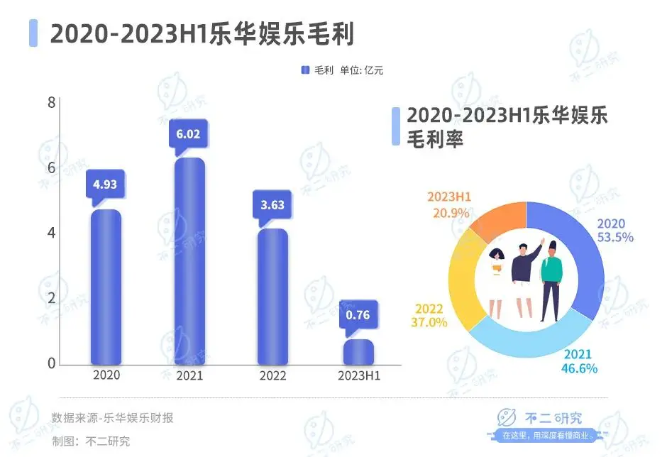 作者 | 艺馨 秀一 排版 | Cathy 监制 | Yoda 出品 | 不二研究 “王一博概念股”乐华娱乐股价遭遇重挫。 1月16日,#乐华股价暴跌近80%#话题冲上热搜。乐华港股盘中跌超80%,当日报收7.92港元/股;创上市以来新低。 上市不足1年,根据乐华娱乐在此前公布的上市后首份半年报:其由盈转亏。 「不二研究」据乐华娱乐半年报发现:2023年上半年,乐华娱乐营收同比减少25.2%、艺人管理收入占比87.6%。目前,乐华娱乐主要面临营收下滑、高度依赖单一艺人等问题,在「不二研究」看来,这主要是由于乐华娱乐的营收结构过于单一,以及签约艺人所提供服务的需求下降所致;与此同时,虚拟偶像等数字产业内容尚未形成,过度依赖单一艺人模式已成为其不可忽视的风险。 乐华娱乐是一家中国少数能提供系统化及专业化艺人培训及运营的公司,包括训练生选拔、艺人培训、艺人运营及宣传。旗下艺人包括韩庚、王一博、李汶翰、程潇、孟美岐、吴宣仪等。 截止1月16日港股收盘,乐华娱乐报收7.57港元/股,对应市值30.17亿港元(约折合人民币27.75亿元);对比IPO首日市值50亿港元,上市即将满一年,其市值已经蒸发19.83亿港元(约折合人民币18.24亿元)。 ![]() 「不二研究」据其半年报发现:今年上半年,乐华娱乐的营收为3.65亿元,同比减少25.2%;同期,净亏损为1.76亿元,同比减少70.4%。 同期,来自艺人管理贡献收入3.19亿元,占营收的比重仍高达87.6%。 去年5月的一篇旧文中(《乐华上市后首份财报,“造星工厂”光环失灵?》),我们聚焦于乐华娱乐营收结构仍相对单一,且仍未摆脱对头部艺人管理的依赖。 时至今日,乐华娱乐不仅面临营收下滑、高度依赖艺人管理等问题未解,且直面艺人合约即将到期的挑战。 在王一博之后,“造星工厂”乐华娱乐,路在何方?由此,「不二研究」更新了5月旧文的部分数据和图表,以下Enjoy: “顶流”王一博近年可谓在娱乐圈火了半边天;其背后的经纪公司乐华股价近日出现暴跌。 头顶“王一博”光环的乐华娱乐于2023年9月21日交出了上市后的首份半年报:2023年上半年,乐华娱乐实现营收3.65亿元,同比减少25.2%;经调整净利润4989.2万元,同比减少70.4%。 乐华娱乐三年半营收累计35.57亿元,其营收结构仍相对单一、高度依赖头部艺人管理。2023年上半年,来自艺人管理的是收入为3.19亿元,当期营收占比为87.6%。 在「不二研究」看来,在王一博之后,凭借批量制造偶像的乐华娱乐能否真正突破“顶流依赖症”? 由盈转亏 2009年,杜华创办的乐华娱乐,旗下有王一博、韩庚、李汶翰、程潇、孟美岐、吴宣仪等时下热门艺人。成立至今,乐华共完成3轮融资,投资方包括华人文化、阿里巴巴、字节跳动、乐搏资本和融玺创投等。 作为乐华娱乐背后的女人,杜华是个野心家。 从小镇来到北京,几次跳槽最终成立乐华娱乐。最难的时候吃不起饭、找不到工作,最拼的时候生完第一胎,下了手术台就立马投入工作,甚至抵押了房产。倒卖CD、做调查员,住地下室,所有北漂经历的,杜华都经历过。 乐华娱乐的开始也并不顺利,主要业务是音乐和艺人经纪,签约的陈好、李小璐经济却都在演戏上,直到签下韩庚,乐华才得以存活。 而在乐华娱乐主要股东中,杜华持有50.18%的股权。除了娱乐行业,在餐饮和美妆行业等公司也均有涉猎,足以见其野心。 乐华娱乐最初计划2022年9月7日上市,这之前,乐华娱乐通过上市聆讯,计划全球发售1.33亿股股份,发行价格区间为每股6.8港元至8.5港元。 2023年1月19日,乐华娱乐在港交所上市,成为 “艺人管理第一股”。乐华娱乐的开盘价为5.60港元/股,较发行价上涨37.3%,最终报收6.03港元/股。 值得注意的是,招股书显示,基石投资者购买的发售股份受到上市日期起12个月的禁售规定,乐华娱乐将在1月19日迎来34926.90万股解禁(占总股本40.06%)。 招股书显示,IPO前,乐华娱乐的基石投资者,分别为儒意控股旗下的Sun Mass Energy公司、猫眼香港、丁世家(安踏体育执行董事兼副总裁)、好赞资产管理有限公司四家,合计认购了1990万美元。 据招股书及财报显示,2020-2023年上半年,乐华娱乐的收入分别为9.22亿元、12.90亿元、9.80亿元和3.65亿元;同期,经调整后年内净利分别约为2.96亿元、3.95亿元、2.67亿元和0.50亿元,净利率32.10%、30.60%、27.20%和13.7%。 ![]() 不难发现,2023年上半年的营收和净利都有所下滑,或由于其艺人管理业务收入来源的市场波动影响。 同期毛利分别为4.93亿元、6.02亿元、3.63亿元和0.76亿元,毛利率约为53.5%、46.6%、37.0%和20.9%,在2023年上半年同样也有所下降。 ![]() 在「不二研究」看来,在杜华强势、坚韧、不服输的性格下,得以有了如今的乐华。近年来,偶像塌房事件时有发生,一方面来自于娱乐大众的监管,一方面内娱环境近年来倍受重视,高度依赖艺人业务成为乐华娱乐不可避免的风险。 顶流依赖症 乐华娱乐的主营业务分为艺人管理、音乐IP制作及运营和泛娱乐业务。 据招股书及财报显示,2020-2023年上半年,来自艺人管理的收入分别为8.08亿元、11.75亿元、8.52亿元和3.19亿元,占收入总额为87.7%、91.0%、86.9%和87.6%;来自音乐IP制作及运营的收入分别为0.93亿元、0.78亿元、0.97亿元和0.30亿元,占收入总额为10.0%、6.1%、10.1%和8.1%;来自泛娱乐业务的收入分别为0.21亿元、0.38亿元、0.30亿元和0.16亿元,占收入总额为2.3%、2.9%、3.0%和4.3%。 ![]() 不难看出,乐华娱乐主要依托艺人管理收入维生,而近两年大火