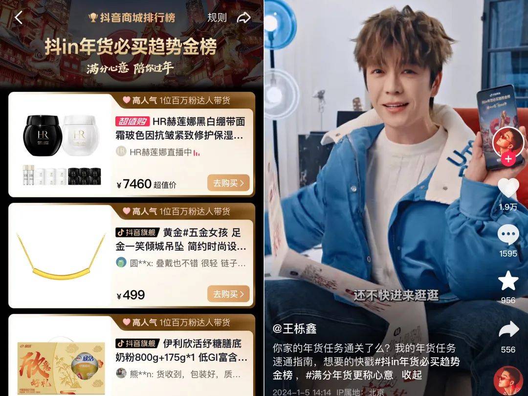 来源|卡思数据 “新年新气象,换个新造型!” 家门口,孩子们将父母推出门外,“怂恿”他们出去做新春造型。关上门后,几个人分工,风风火火地做起了大扫除,擦玻璃、洗衣服、贴福字、做饭……等到父母以全新的造型回到家时,家里不仅被收拾得一尘不染,餐桌上也已经摆了一桌子好饭,还有一条横幅展开,上面写着“新年主理人交接仪式”。在一片欢声笑语中,“满分心意,陪你过年”的主题也由此被点出。 ![]() 这是抖音电商「满分心意 陪你过年」活动推出的系列短片中的一支视频,该系列短片共包含六支视频,于1月10日上线后,戳中了众多用户的心。 据卡思了解,六支短片采用创意化拍摄手法,深入日常生活场景,展现了不同场景下不同群体的团聚氛围、过年方式和全新的新春愿景,温馨走心的内容不仅成功将年味氛围拉满,也唤醒了众多用户的过年仪式感。 毫无疑问,新春将至,所有营销人又迎来了一个不容错过的关键节点。然而,如何才能做好春节营销?在回答这个问题之前,我们必须关注到春节营销的关键因素——消费者的需求变化。 一方面,近些年来,“年味”越来越淡,越来越多的消费者渴望能够找回儿时对于春节的情感体验;另一方面,随着Z世代人群的消费能力、话语权不断壮大,他们逐渐成为新一代“春节主理人”,而这些人群对于年货的购买需求和购买习惯也发生了明显的改变。 “丢失的不是年味,而是让年味重回视野的渠道。” 在如今的需求变化之下,率先抓住消费者情绪、并满足相应的购物需求,就能在春节营销中抢占先机。 抖音电商无疑就“抢占”到了这一份先机。 早从2021年发起首届抢新年货节开始,抖音电商便通过一系列动作成为了消费者获取年货信息、选购年货的重要渠道之一。而时间来到2024年,在更深入地洞察消费者的需求变化后,抖音电商升级玩法,在这场“满分心意,陪你过年”的新春活动中,提出了关于春节营销的更多解法。截至1月10日,抖音电商大盘生意爆发69%,已达成总目标125%;1000+商家参与活动,产出百万爆款400+。 今年的抖音电商,年味更浓了。 从心智唤醒到氛围打造,抖音电商如何让年味更浓? 让年味更浓,是抖音电商“满分心意 陪你过年”的重要策略,而围绕着这一策略,抖音电商从心智唤醒、氛围打造等维度在内容场域进行了一系列布局。 1、长线话题引发互动,渗透心智 想要让消费者感受到浓浓年味,首先要从心智上唤醒他们对于过年的强烈感知,让他们意识到春节将至,储备年货这一极具过年仪式感的大事已然可以开始操办。 为了持续渗透这种心智,抖音电商在活动开始之初就率先发布长线话题 #满分年货更称心意,号召平台用户积极分享自家年货。与此同时,包括王栎鑫在内的数位明星/达人也组成短视频内容矩阵,以此为话题展开创作。 ![]() 1月6日,王栎鑫发布了一条“鑫力量出击”宣传视频。视频中,王栎鑫接收了抖音商城派发的新年任务:认识5位新朋友,并为他们送上新年焕新力量。接到任务后的王栎鑫拿着来自抖音商城的品牌礼物,元气满满地开启了自己的新年送福之路,刚换城市生活的乐观女孩、沉迷跳舞拍抖音的退休阿姨、认真执勤的保安小哥……一路前行中,王栎鑫一边结识“鑫朋友”,一边陆续为他们送上暖心问候,并传达了来自抖音商城和品牌蓝月亮的新春祝福。 ![]() 这条视频在传递年味之余,也进一步细化了新春的场景需求,释放了品牌理念,为消费者种草了“特色优质年货”,并由此实现了圈层沟通、心智渗透。 在明星/达人、用户的热烈参与下,#满分年货更称心意 话题下的视频播放量已经突破4亿次。截至发稿,活动衍生出的4个热点话题#1月的精神支柱是该买年货了、#这礼盒开得我一身年味儿、#满分过年这题我会、#东南西北的年味儿全吹到了杭州 都登上了抖音热榜,热度不断攀升。热点话题带来了搜索的转化,数据显示,截至1月10日,热点话题带动年货搜索GMV增加26%。 ![]() 2、主题TVC+年货综艺,营造年味氛围场 从心智上唤醒消费者对年味的感知之余,抖音电商也在持续营造过年的氛围场域,这样才能让他们自然而然沉浸其中,继而产生情感上的联结。在活动主会场、直播间、开屏广告等特色场景上,抖音电商都进行了风格统一、喜气满满的视觉设计,让用户能够在第一时间感受到扑面而来的年味。而除了常规动作外,今年抖音电商在年味氛围营造上,显然下了更大的功夫。 首先,便是我们在开头提到的以新春为主题打造了六支系列短片。 当下,之所以很多人觉得年味变淡,很大一部分原因是因为日常环境、生活方式、消费手段相较之前有了明显改变,尤其是对于当下年轻的消费主体来说,这种改变尤为明显。因此,想要让年味更浓,创造春节仪式感的方式也应该相应做出改变,而这六支短片就为我们呈现了不同消费场景下、更符合不同消费群体生活现状的新年特色仪式感。 除了“新年主理人”短片外,在其他五支短片中,我们还能看到不同的主角,不同的新春故事。比如参加聚会的白领提前离席,只为了回去和自己的“哈基米”一起过年;认真询问家人是i人还是e人的小孩,只为了根据他们的特性送出相应的新春礼物……虽然主角不同,但每个故事都是通过极具日常性的视觉内容和走心温情的情感内核精准触达了用户情绪。 期间,抖音商城以及和情境适配的品牌信息也自然渗透其中,如上