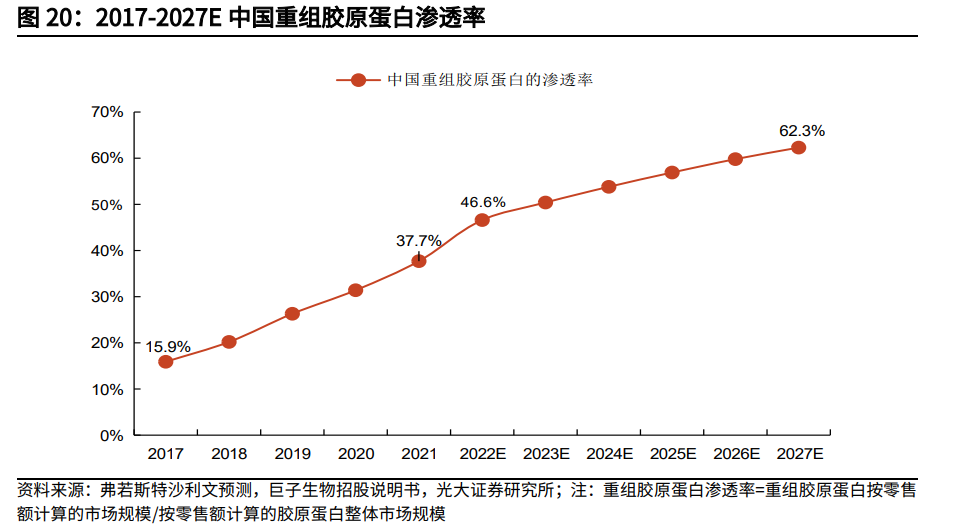 来源|松果财经 独得国内外知名基金资本认可的创健医疗到底如何呢? 从锦波生物北交所上市后最高溢价5.17倍、鸿星尔克跨界布局重组胶原蛋白领域、首届重组胶原蛋白技术峰会召开,到巴黎欧莱雅新添重组胶原蛋白成分新品——小蜜罐第二代面霜的首发成功,再到位列重组胶原蛋白行业第一阶梯的创健医疗完成辅导备案登记,正式启动A股IPO进程。 似乎重组胶原蛋白正在悄悄地映入眼帘。 事实上,重组胶原蛋白早已早已崭露头角。近三年多次在资本市场上获得青睐的创健医疗正侧面印证了这点。 资料显示,2022年7月、2023年9月创健医疗先后获得资生堂资悦基金在中国的首次领投、LVMH旗下基金L Catterton与中信里昂资本的联合领投,短短一年多点时间就累计获得4亿元人民币融资,资本对其的认可度可想而知。 那么,独得国内外知名基金资本认可的创健医疗到底如何呢? 聚焦皮肤“软黄金”赛道,未来可期 胶原蛋白领域素有皮肤“软黄金”之称。资料显示,随着年龄的增长人体皮肤胶原蛋白的合成力就会逐渐减弱,20岁起将减弱为86%;20岁过后,皮肤胶原蛋白含量平均每2年减少1%;直至35 岁,胶原蛋白含量只剩20%。不可逆的自然生长特性下,其珍贵性可想而知。 同时,胶原蛋白人工生成的难度也相对大。以重组胶原蛋白的分离纯化环节为例,一般包括预处理、细胞破碎、初纯、精纯和成品加工等步骤,其中细胞破碎环节会释放大量内毒素,少量内毒素进入人体血液就可引发发热、休克甚至死亡。因此各环节的技术把控尤为重要。 也正是基于胶原蛋白人工生成的难度以及重组胶原蛋白难能可贵的抗老化、损伤修复作用,该赛道产品的高毛利润不言而喻。 北交所上市的锦波生物业绩表现也印证了这点,2020-2022年上半年期间其重组胶原蛋白业务产品毛利率均保持在80%以上。 不过,当前重组胶原蛋白行业仍处于产业化起步期,以自发野蛮生长为主。而2015年成立的江苏创健医疗,一直以来都聚焦重组胶原蛋白领域,从市占率来说,位于国内重组胶原蛋白行业第一阶梯队,也或许将成为国内该行业第三只上市企业。 随着“颜值时代”当道,重组胶原蛋白之风正快马袭来。 需求端,随着更多类型的胶原蛋白及其多元化的功效被不断发掘,其终端应用场景和产品矩阵也不断拓展,重组胶原蛋白市场空间也不断打开。 据弗若斯特沙利文预计,中国重组胶原蛋白市场规模将从2021 年的108亿增长至2027年1083亿元,渗透率也将达到胶原蛋白领域的62.3%,未来增速可观。对比之下,当前该产业仍处于初期。 ![]() 供给端,重组胶原蛋白产品喷涌而出。资料显示,2021年第一款重组Ⅲ型人源化胶原蛋白获准至今,药监局光Ⅲ型人源化胶原蛋白相关产品就已经批准137款,平均每年有45款获批,且都具备医疗器械注册证。 供需紧张状态也开始显现。据创健医疗金坛工厂经理陈聚印介绍,预计其2023年产量较2022年同比增长30%以上,产品供不应求。 毫无疑问,需求驱动下,专攻重组胶原蛋白的创健医疗拥有无限可能。 不过,目前国内胶原重组蛋白赛道虽然已跑出巨子生物、锦波生物两家概念相对纯正的上市公司,但沪深主板上却是为零。 也正是基于其较大的想象空间与赛道标的的稀缺性,市场对于创健医疗的IPO申请给予较高的关注与期待。 但从基本面来看,创健医疗成立时间尚短,其在市场端影响力明显落后于前两者,因此如何向终端市场推广成为其接下来重任。 双向奔赴,创健医疗 借彼之手,走向国际市场 另辟蹊径,创健医疗试图通过引入国际美妆资本,来推进其重组胶原蛋白商业化进程。 引入全球美妆巨头旗下私募资本,对于创健医疗而言,既为满足其巨额研发、推广需求;同时也是考虑到原材料进入终端消费市场,初期是离不开知名美妆企业的推动。 一方面,重组胶原蛋白行业属于研发驱动型,业内企业的研发投入较大,产品创新属性也较高,企业需要做大量的学术推广、市场教育、品牌建设。 参考过去凭借一己之力强势将烟酰胺灌入消费者心智的宝洁。财报显示,2022年其研发投入高达20亿美元,在媒介上花费的营销支出为8.6亿美元,其中烟酰胺作为核心成分,投入资源必然不会太少。 而重组胶原蛋白作为美妆护肤行业下一个重点成分,企业在研发、推广上的资源投入势必也不会太少。翻看巨子生物、锦波生物历年财务报表发现,2020年-2022年,两家企业的销售成本分别占各自营收的13.31%、22.30%、29.87%;23.98%、26.90%、23.27%,占比较大且呈逐年扩大趋势。 ![]() 另一方面,由于入市较晚,且创健医疗创始人此前主要经营骨科医疗器械,因此相比深耕行业近20年,在c端已具备一定品牌影响力的的巨子生物、锦波生物,创健医疗的优势更多聚焦在原材料研发上,在B端、C端的市场知名度都较低。 不过,也正如前文所说,当前重组胶原蛋白的消费认知度仍处于普及初期,不论是C端产品还是原材料供应均未跑出具备绝对影响力的品牌企业,这刚好给予了创建医疗很好的成长机会,而资生堂以及MVM的引入或许正是其下一步的关键。 获得资生堂与LVHM旗下资本的认可,本身就向市场说明了创健医疗在重组胶原蛋白领域的实力,进而推动其未来更高效地拓展B端客户圈,并加快其在C端消费者中建立心智。 同时,借助资深堂以及LVHM在全球美妆消费品领域的深度布局,创健医疗也将有更大概率进军全球重组胶原蛋白行业。 据了解,2023年年