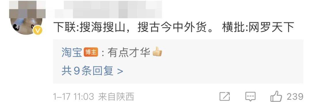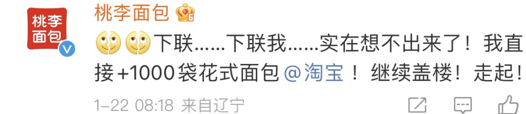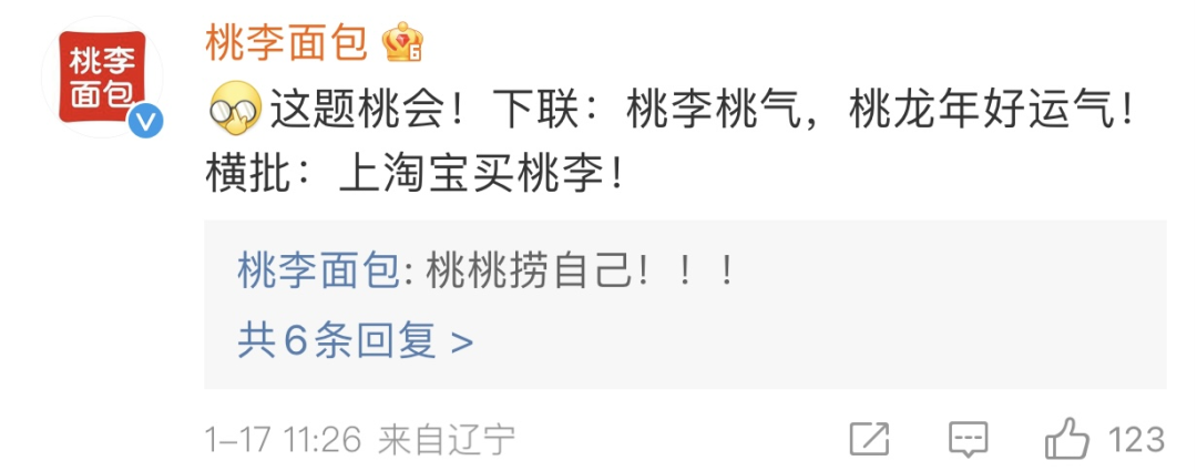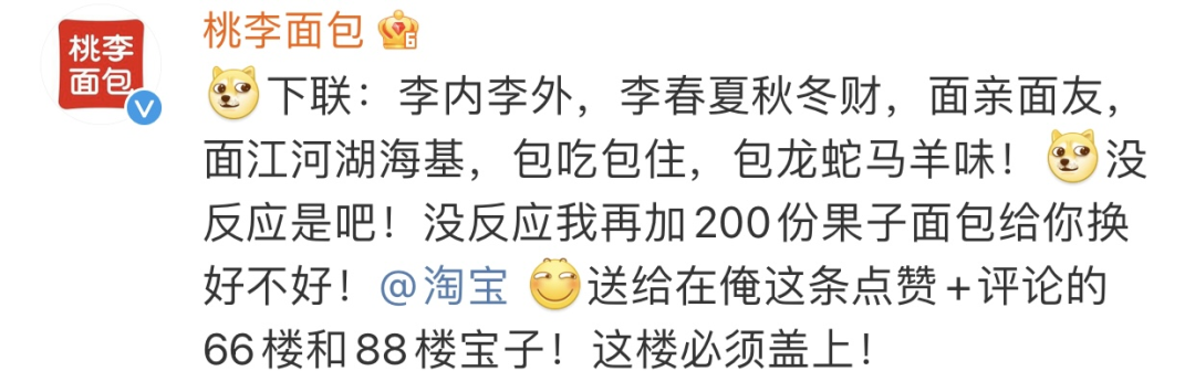 来源:公关界的007 每逢春节,家家户户贴春联,你愿意花多少钱买春联? 有人愿意掏10万元!1月17日,天猫淘宝年货节伊始,淘宝就放出大招,发起“10万元重金悬赏求下联”行动。 ![]() 该活动一出,就惹得天地壹号、桃李面包、麻辣王子、卫龙、唱吧、盼盼、遇见小面、奇瑞汽车、蚂蚁财富等近100位国货品牌小编“杀疯了”! 天地壹号小编更是开启“内卷”模式,逼迫上厕所的同事“厕中生智”;而桃李面包小编则堪称最会“玩”的小编,借势各种花式送面包。 ![]() 当然,更有来自五湖四海的“文豪”争当“对穿肠”(《唐伯虎点秋香》中的人物, 七省文状元兼参谋将军,人称对王之王)。 ![]() 截止目前,本次征集活动已经收到近万条下联,可谓火出了圈;而国货品牌小编、各路“文豪”的“佳作”与“奇作”,也进一步吸引万千“才子”踊跃参与,誓要“登科”瓜分10万元赏金。 ![]() 一,火出圈 10万元赏金求下联,应景 “千门万户曈曈日,总把新桃换旧符”,中国人过春节非常注重仪式感,无论身处何处,家家户户都会买春联、贴春联,在古代更有“写春联、对春联”的习俗。 随着2024龙年新春的脚步越来越近,淘宝“10万元重金悬赏求下联”活动在腊八节前1天(1月17日)开启,非常应景,同时可以让网友们提前感受过年这个味。 有意思的是,淘宝在微博和微信两个平台,给出了不同的上联,在微博平台上的上联是“淘天淘地,淘东南西北宝”,在微信平台上的上联是,“淘南方,淘北方,南北一起淘东西”。 ![]() 虽然两个上联不同,但你会发现都指向了一个意思“淘”,暗合春节临近,网友们开始各种“淘”年货的需求。 而“对春联”这种互动形式,又戳中网友借此抒发新春美好愿望的心理需求。 本次征集活动开出的赏金10万元也是相当地“诱人”,两个平台的赏金各5万元,每个平台的获胜者将获得40000元赏金,另外发挥出色的20位参与者奖均剩下的10000元赏金。 对于过年都要“破费”置办年货、送压岁钱、走亲戚的网友来说,如果得中这笔赏金,可谓提前领了大红包,不仅有可能抵消今年过年的开销,还能小赚一笔。 ![]() 至于规则很简单,只要下联和横批朗朗上口,符合格律、平仄、对仗工整,同时体现龙年新春美好祝福的寓意,就有机会高中这笔“过年费”。 只需对对联就有机会赢得新春第一笔“泼天富贵”,这么接地气、人人均可参与的迎新春方式,自然吸引了网友们立马敲动键盘,围联“厮杀”。 ![]() 二,杀疯了 近百国货品牌小编,狂卷 本次征集活动吸引了餐饮食品、消费品、汽车、美妆、健康、金融等30多个行业近百位国货品牌小编“参战”,他们在淘宝微博评论区的“疯杀”成了网友们围观参与的一大亮点。 1、“最卷的国货品牌小编” 天地壹号厂长可谓“最卷的小编”,每天都“蹲”,甚至1天连发多条下联。不仅自卷,还各种卷别人。如:堵在厕所门口,逼迫上厕所的同事“集”中生智对下联。 ![]() 出门要去拿外卖的同事也不放过 ![]() 甚至“胁迫”策划和市场部人员“加塞”出私活 ![]() 还胆大包天跑去找领导求助 ![]() 就这,他还自觉不满意,无心工作,整天为想出“1”鸣惊人的下联,想到停不下来。 ![]() 最后,干脆跑到大街上,拦截“路人甲”,学生、小姐姐等都成了他的“答题贵人”。 ![]() 2、“最会玩的国货品牌小编” 桃李面包则是“最会玩的小编”,每天“对下联”不断更,每次还不忘给自家打广告。如第一条下联和横批是“下联:桃李桃气,桃龙年好运气!横批:上淘宝买桃李!” ![]() 见没反应,于是开启了花式“送面包”模式,面基包吃包住还送200份果子面包。 ![]() 坚持对对联的第4天,他又送出“300份巧乐角面包”,然后继续盖楼。 ![]() 按桃李面包小编每天盖楼送面包的节奏,估计到2月5日开奖日,就差把自家店铺也给送出去啦~ ![]() 3、“其他国货品牌小编就图开心” 其他国货品牌小编似乎“视赏金如粪土”,主打一个“开心就好”。如麻辣王子与SIKI私激(安全套)玩起了CP。 ![]() 东北网红雪糕中街1946号只想着赠流量,给出的横批比下联都长... ![]() 唱吧小编唱歌那绝对在行,对下联就明显“跑调了”,被麻辣王子“纠正”。 ![]() 一项文思泉涌的卫龙小编,这次明显“弃奖”,心思全在“跳钢管舞”。 ![]() 遇见小面小编,虽然很懂的突出“龙年”,但这对联,似乎太“面”了。 ![]() 还有铁粉“不穿裤衩子”跑来为自己喜欢的国货品牌有时光小编摇旗呐喊。 ![]() 蚂蚁财富小编则一不小心把大家“上班摸鱼”的“真相”也给暴露了。 ![]() 三,玩疯了 神州万千网络文豪,趣玩 除了国货品牌小编“杀疯了”,来自神州各地的万千网络“文豪”也是“争奇斗艳”,很多下联不仅生活化,而且充满了奇趣,甚至还有想“引战”的。 ![]() 微博平台,目前网友高赞排名第一的是来自“一个超级喜欢睡觉的人”的微博网友,其给出的下联和横批是“下联:搜海搜山,搜古今中外货。横批:网罗天下”。 ![]() 微信平台,“下联:话中国,话外国,中外齐聚话古今;横批:包罗万象”的网络留言暂时位列点赞第一。 ![]() 令人没想到的是,虽然是“对对联”这种传统征集互动活动,但这让我们有机会窥见年轻人的“生活愿景”,他们在评论区玩的不亦乐乎。 “蒸”宗吃货派 ![]() 宠物养成派 ![]() 四季购物派 ![]() 寻游人生派 ![]() 打工忙碌派 ![]() 招财进宝派 ![]() 人际关系派 ![]() 还有不少“团伙”,看