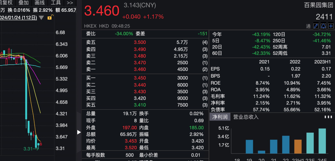 记者丨马永欣 见习生丨屠玲 出品丨鳌头财经(theSankei) 1月16日,中国最大的水果连锁零售企业百果园集团(以下简称“百果园”,02411.HK)遭遇投资者用脚投票,股价三天跌去了38%。 这一天,是百果园港股上市一周年之日,在此之前,公司提前官宣回购计划,仍未能阻止资本逃离。 ![]() 此前,百果园发布10年战略规划,实际控制人余惠勇“画”了一个千亿营收“大饼”,再提万家门店。据悉,万家门店计划是百果园8年前提出的。 百果园从一家“卖水果”门店转变为“卖模式”的企业。模式之下,赚钱难的加盟商,苦不堪言。 01 36亿市值灰飞烟灭 1月16日,是百果园上市一周年的喜庆之日,但对于公司的中小投资者而言,是“噩梦”般的一天。 当日早盘,百果园以5.90港元/股开盘,低开1.67%。开盘后,股价快速下挫,盘中一度下探至3.91港元/股,最大跌幅为34.83%。全天交易结束,收报4.180港元/股,跌幅达30.33%,当日成交量1.08亿港元。 股价为何大跌?在回应媒体咨询时,百果园称,公司目前经营一切正常,股价波动属于资本市场的正常现象。 1月17日、18日,百果园延续下跌模式,跌幅分别为9.57%、1.85%。3个交易日,股价累计跌去了38.17%,公司36.39亿元市值灰飞烟灭。 对于百果园,大部分消费者并不陌生,百果园的水果店开遍大街小巷。 江西人余惠勇,1968年出生,毕业于江西农业大学园艺系农业蔬菜专业,毕业后进入江西农科院从事食用菌研究和开发工作。2001年,余惠勇南下深圳,创立深圳百果园实业发展有限公司(即百果园)。在经营模式方面,余惠勇走了弯路,从加盟到自营,又回到加盟。最终,依靠加盟模式,百果园取得了成功,在分散的中国水果市场蹚出了一条路。 百果园的上市之路也不乏曲折。早在2020年6月,百果园就曾筹划在港交所主板挂牌上市。令人意外的是,5个月后,公司放弃港交所,改为冲击A股市场,拟在深交所创业板挂牌。2022年5月,公司再度改道,回头冲击港股市场。直到2023年1月16日,百果园才成功登陆港交所。 在港股上市首日,百果园的股价盘中最高达7.12港元/股,收报6港元/股,此后在5-7港元之间徘徊。 在港股市场上市一周年,部分限售股解禁,股价大跌的并不少见。今年1月16日,乐华娱乐暴跌77.84%。 在上市周年前,百果园抛出回购计划。根据1月11日公告,百果园拟出资6.34亿元回购股份,回购数量不超过1.18亿股,回购价不超过5.96港元/股。 提前推出的回购计划,未能对冲股票解禁而引发的资本出逃。 02 万店千亿的“大饼” 本次股价大跌前,百果园还发布了未来10年战略规划。 下一个10年,百果园的目标是实现门店数量超万家,以百亿营收为起点,向千亿目标奋进。并将探索大型店、微型店、机场店、商场店等多元店态,同时积极开拓国际市场,品牌出海将首选东南亚。 这一“宏伟蓝图”发布于1月5日,正是2024年刚开年。选择此时发布战略规划,百果园的急迫心情暴露无遗。 2019年 ,营业收入为89.77亿元。2021年、2022年,百果园实现营业收入102.92亿元、113.14亿元,同比增长16.21%、9.93%。2022年较2019年增长26.03%,三年累计增长不到30%。 在市场人士看来,千亿营收,是余惠勇“画”的一个漂亮的“大饼”。这或许是投资者不买账、股价大跌的重要原因之一。 ![]() 投资者对于百果园不再信任。 有消息称,百果园开到100家线下门店时还在亏钱。因此,百果园积极寻求在全国范围内扩张,2015年5月,公司门店数量突破1000家。 这一年,百果园引起了资本注意,并蜂拥入股,公司累计完成8次融资。 2015年,天图资本、广发信德、前海互兴合计出资4亿元参与A轮融资。当年12月,公司获得前海母基金等A+轮融资。2017年1月,公司获得中金前海发展基金、招商局资本的战略融资。2018年1月,公司获得深创投、基石资本等15亿元B轮融资。当年7月,公司获得中金祺智投资的股权融资,以及自贸区基金、阿特列斯资本和中信农业产业基金的战略融资。2020年3月,公司获得先驱投资的股权融资。 此外,广州越秀、红土股权等多家VC/PE跻身股东行列。这些VC/PE等合计持股比例超过40%。 A轮融资后,余惠勇口出豪言:“5年后,百果园门店数量达到1万家,年销售规模做到400亿元。” 2021年底,百果园线下门店5351家,分布在22个省市超过130个城市。到2023年6月底,门店数量为5958家。超期两年半,门店数量仍距万店有很大差距。 在2023年的中期业绩会上,余惠勇重提“万店计划”,目标达成时间为2027年,百果园还有一个更长远的目标——到2042年开店3万家。 03 加盟商的日子不好过 截至到2023年6月底,百果园在全国有5958家水果店,其中,加盟门店为5945家,自营门店仅有13家,较上年同期减少了3家,百果园高度依赖加盟模式。 在行业人士看来,百果园已经完成产业转型,公司并不是一家真正意义上的水果连锁零售企业,而是一家贩卖模式的企业。 2019年至2022年,百果园实现的归属于母公司股东的净利润(以下简称“净利润”)分别为2.49亿元、0.49亿元、2.30亿元、3.23亿元,2023年1-6月为2.61亿元。除了2020年净利润大幅下降外,其余年度总体上呈增长趋势。 那么,百果园的收入和利润来自哪里呢? 百果园的扩张依靠加盟商,但与其他靠收取加盟费盈利的企业不同,公司主要收入来源是向加盟商销售水果等产品,还有收取的特许权使用费及特许经营收入。2021年及2022年,这些业务为其贡献的营收占比均高达98.6%,其中前者的营收占比约97%。可以看出,加盟门店的数量,决定