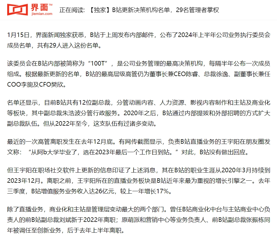 作者 | 刘亮 编辑 | 趣解商业 据“界面新闻”1月15日报道,B站近日发布内部邮件公布了2024年上半年公司业务执行委员会成员名单。根据最新更新的名单显示,B站的最高层级高管仍为董事长兼CEO陈睿、总裁徐逸、副董事长兼任COO李旎及CFO樊欣;但直播业务、商业化中台与主站商业中心、萌派和营销中心等多个核心部门负责人均发生人事变动,其中多位原负责人离任。 ![]() 图片来源:界面官网截图 近两年来,B站多次进行组织架构及人事调整;据“晚点LatePost”报道,B站在2022年就曾调整多个核心业务部门负责人。频繁调整背后,或许反映出B站正在加紧调整和梳理业务结构,提升商业化能力。 2023年4月,有媒体报道B站部分Up主出现“停更潮”,其中停更的大部分Up主在回应原因时,均表示受到平台收益减少的影响。6月,在财报后的电话会议中,陈睿表示“B站UP主停更潮这个说法是误导”,但他也强调“目前让UP主挣钱是B站整个公司最关注的工作,无论是提供商业收入的花火系统、还是开发直播等营收模式,都为UP主提供了更多获得收入的可能性”。 ![]() 图片来源:微博截图 但是,如何在不破坏社区氛围的前提下,实现商业化效率的跃升?B站的直播带货和其他平台有怎样的不同?面对着渐趋“白热化”的市场竞争格局,B站又该用怎样的策略实现稳定盈利呢? 01.长视频里的“特殊价值” 与大部分的内容型平台类似,B站的核心价值离不开粉丝口中的“阿婆主”及其原创内容;但与抖音等平台不同的是,B站的“发迹”靠的是长视频。 长视频更便于提供专业知识解读和深度产品测评等类型的内容输出,虽然少了几分爽感,但却大大增加了“营养价值”。即便是已经有了美妆内容“满天飞”的小红书,许多人依然愿意到B站去看一些测评,醉心于美妆护肤的90后CC(网名)就是其中的一员。 “我最早接触护肤品类的博主视频其实是在B站。我看小红书一般都是上下班的时候在路上刷手机,但是看B站那些Up主的长视频爱用物分享,我的习惯是放在电脑或者Ipad上,边护肤边看,更有一种沉浸式体验感。虽然比不上看书,但长视频一定程度上能培养我的专注力,同时也是我目前日常获取知识和信息的重要渠道。” ![]() 图片来源:罐头图库 诚如CC所言,B站带来一种内容生态下的“价值调性”。从学习视频到美妆测评,B站内容带来的知识可以涵盖生活的方方面面;也正是在这样的内容基调下,Up主们在荧幕后的人设才能更为立体形象,B站才能树立其平台价值。 2023年5月,B站举办了第二届纪录片发布会,一口气发布了36部纪录片作品。李旎介绍,B站用户对于纪录片的消费黏性与频次是超出预期的,同时也在释放更大的长尾效应。“趣解商业”了解到,在B站上一年前上线的纪录片,在一年之后播放量仍然能有首年的84%。 ![]() 图片来源:微博截图 但需要注意的是,长视频的弊端或许也和其优点一样显著。 一方面,动辄几十分钟甚至一小时的完整时间对于很多工作忙碌的年轻人来说已然成为了一种奢侈,快餐式、碎片化、有冲击力的内容在当下更贴合人们的生活节奏;另一方面,过长的视频也容易使人产生疲劳感。B站从2021年起上线了短视频,但似乎并没能激起多少水花。 除此之外,“二创内容”涉及侵权、部分内容低俗等问题也在困扰着B站。 近年来,B站屡陷侵权纠纷。除了众多互联网视频网站和以中超联赛、中职篮为代表的职业体育联赛外,一些知名艺人也在追责B站的“阵营”中;2023年6月,“张艺兴起诉B站侵权”事件曾引发广泛关注。 ![]() 图片来源:微博截图 天眼查数据显示,2023年,因侵害作品信息网络传播权纠纷、著作权权属、侵权纠纷等案由,B站分别被杭州网易云音乐科技有限公司、北京爱奇艺科技有限公司等告上法庭。 对于不良内容,B站也在加强治理。B站声称,平台将持续加强巡查发现,进一步优化内容治理手段,不断完善信息规范管理工作。 ![]() 图片来源:微博截图 如何在视频的长与短之间实现知识和娱乐的平衡、如何让更多人爱上长视频、如何最大程度尊重和支持原创......这些或许都是B站亟待解决的难题。 02.B站直播电商前景如何? 2023年11月29日盘后,哔哩哔哩(9626.HK)发布的财报显示,第三季度公司实现营收58.1亿元,与去年同期持平;净亏损为13亿元,较去年同期收窄22%;经调整净亏损为8.64亿元,同比收窄51%。自公开披露财报以来,B站已经连亏8年。 ![]() 图片来源:财报截图 2022年年初,陈睿表示,在保持用户增长的前提下,B站的战略重心将侧重加速商业化进程;这被外界视为B站在连亏数年后,开始重视“赚钱养家”的信号。但商业化发展无法一蹴而就,已经成立了近15个年头的B站,还要持续亏损多久? B站“起家”靠二次元,但单靠的二次元视频、动漫、游戏等内容无法支撑起B站的商业模式和变现需求。此外,B站商业化进程本就起步较晚,此前投入并不充分,再加上其自身的社区属性,更加剧了推进商业化的难度。 ![]() 图片来源:罐头图库 在B站港股二次上市时,陈睿曾表示,“用内容吸引用户、社区留住用户,再提供给用户更多感兴趣的内容或者是内容衍生的东西,如果用户喜欢就会去消费,这是我们的商业模式。” 从陈睿的表述来看,B站其实并没有给自己设限;无论是ACG类,还是别的,只要是消费者愿意花钱的,B站就愿意去做。在这方面,B站也做过诸多尝试并有成功案例。 品牌广告合作方面,2022年底,