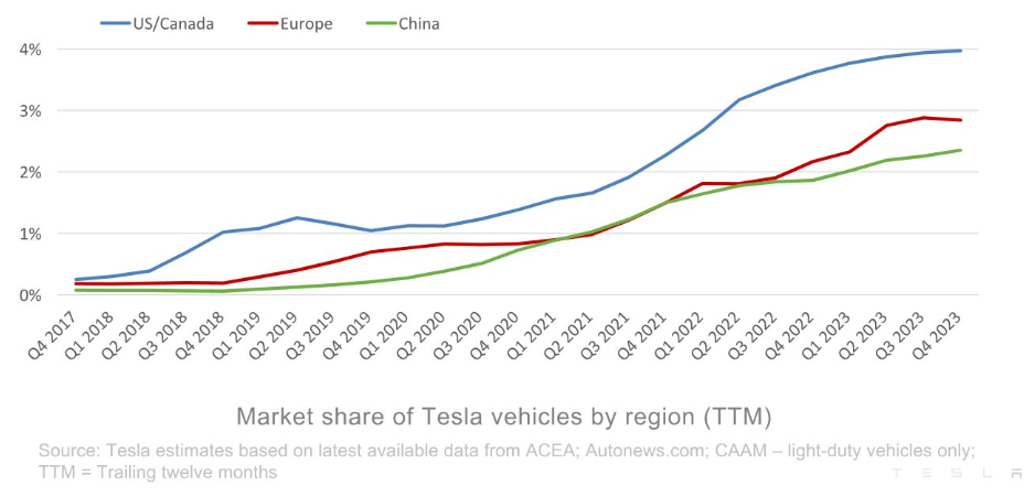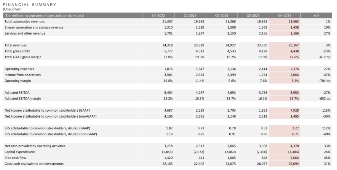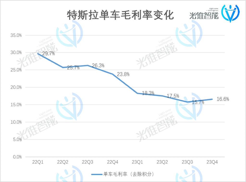 文|刘俊宏 2023年率先开启汽车价格战的马斯克,伤敌一百自损八千? 在1月25日的特斯拉2023Q4财报电话会上,特斯拉CEO马斯克对中国公司的竞争力如此感叹道,“要是没有贸易壁垒,他们将摧毁(destroy)大多数其他汽车制造商。” 对于本轮业绩,马斯克似乎并不乐观,并在财报后电话会上给投资者打起了“预防针”。马斯克认为,伴随着2025年投产下一代电动车,FSD(自动驾驶)V12的逐渐测试,“特斯拉当下处于两个增长浪潮之间,2024年的销售增长将明显放缓。” 如此谨慎的预期,与2023年特斯拉取得的好成绩有点不太相符。 从财报基本面上看,2023年四季度,特斯拉营收再创新高。其中,单季度汽车销量超过48万辆,同比增长20%,完成了2023年总销量180万辆的目标,销量同比增长37.65%。第四季度总营收251.67亿美元,同比增长3%;全年总营收967.73亿美元,同比增长19%。 同时,在经历了全年资本支出和研发投入为历史最高水平下,自由现金流达到44亿美元,意味着特斯拉在2023年投入和赚钱“两把抓”。 此外,据2023年的销量显示,Model Y已经取代丰田卡罗拉成为了全球最畅销的车型。开启了EV成为这个星球最畅销的汽车的时代。 不过,当在仔细拆解完特斯拉的这份财报后,我们发现如马斯克所言,当前特斯拉的状态的确有些不太“健康”。 汽车价格“屠夫”快顶不住降价压力了? 对于这份业绩增长了的财报,似乎特斯拉和市场都不是很满意。 而在这份财报的诸多不及预期和财报电话会对预期增长的“含混不清”中,特斯拉的市值盘后大跌超过5个点。 ![]() 整体收入上,2023年四季度特斯拉营收为251.67亿美元,同比增长3%,低于华尔街给出的营收258亿美元的预期。背后原因,主要是特斯拉几乎全部的业务已经“躺平”。 汽车业务,作为特斯拉营收占比85%的主要收入来源,由于四季度相比前三季度较高的交付量——484507辆,特斯拉保住了2023年180万的销量目标。但由于,特斯拉在2023年以来全球范围的多次降价,使得汽车客单价较低,最终导致销售同比增速仅为1%。 能源业务,由于储能部署本季度下滑和光伏装机量相较Q3进一步下滑,虽毛利率有所上升,但销量下降导致整体能源业务收入同比增长为10%,称不上有什么亮点。最后是服务及其他业务,这部分主要是汽车售后、二手车销售、保险收入,这部分同比增长27%。 ![]() 整体下来,特斯拉在2023Q4的经营利润率虽比Q3略微抬升,从Q3的7.6%升至本季度的8.2%。但整个2023年来,特斯拉的营业利润率(OPM)呈现出“断崖式”的下滑。全年利润自2017年开始首次下滑,Q4更是大降近40%。 ![]() 2023年特斯拉利润水平失守的背后,一端是Cybertruck的产能爬坡和23年持续加大对DOJO、FSD、新车型等的研发投入。 ![]() 另一端,则是23年不间断的产品降价。持续以价换量的销售策略,将特斯拉此前卖车冠绝汽车行业的毛利率,“锁定”在了行业准“准第一梯队”的水平。 汽车销售中,2023Q4特斯拉汽车单车销售收入(去除租赁)从Q3的4.45万美元进一步下调1000美元,至4.35万元(约下调2%),与2022Q4相比,下调26%。销售毛利率(排除积分影响)为16.6%,相比三季度提升0.9个点。但对比2022年和2023年的趋势,2023年特斯拉的汽车销售毛利率已失守2022年的普遍高于20%水平。 ![]() 面对以价换量的销售策略,若要提升毛利率,则成本的降幅需要超过售价变动比例。 成本端,2023Q4单车成本环比上季度下降0.3%,至3.63万美元,与2022Q4相比,下调20%。成本下调不及售价幅度,导致销量释放的利润无法充分发挥。再次印证了特斯拉持续降价,把利润一起“促销掉了”的现状。 伴随着2024年一季度,特斯拉再次在中国区进行2%-6%幅度的降价,美国和欧洲区的补贴下行。预计接下来特斯拉的利润率还将继续承压。 不过,相比于利润层面的持续紧缩,特斯拉当前或许更应该面对如何把车卖出去的问题。 护城河正在瓦解 技术进步“革命”传统行业,是马斯克从Paypal到特斯拉、SpaceX以来,无往不利的手段。同时,借助技术领先的理念,马斯克也在这条路上不断挑战着华尔街“Old money”。 2018年,马斯克曾与巴菲特展开过一场论战。马斯克认为,护城河理论很古旧,创新节奏才是保持竞争力的核心要素。而巴菲特则认为,科技创新的速度确实在加快摧毁某些行业的护城河,但并不是每一个行业的护城河都在被摧毁,例如喜诗糖果。 这场关于护城河理论之争,背后是马斯克偏好未来不确定性“打江山”和巴菲特偏好确定性“守江山”的理念之争。二者一个想要颠覆传统行业,以能源切换推动全世界的科技升级;另一个想要做时间的朋友,享受源源不断的复利。 但不论是在制造业还是消费品的理解上看待今天的特斯拉,巴菲特恐怕不仅要再对一次,并且特斯拉的壁垒也快守不住了。 纵观世界顶级科技公司的ASML、台积电、苹果、英伟达,我们能够看到产业链价值、技术、生态、规模效应和品牌效应,所共同形成的壁垒,最直观的体现是财务端拥有同行望尘莫及的毛利率水平。 ![]() 而对于特斯拉来说,是早期以颠覆者的姿态在制造(一体化压铸)、销售(直营+一站式购车+少广告)、产品(纯电平台+极简内饰)、市值管理(软件销售计价)的诸多方面革新了传统汽车行业。并伴随着智驾、汽车电子设计、续航等技术壁垒,成功“撬开”了当时的中国新能源汽车市场。 随后,在产品快速放量下,特斯拉构建了极致单品+量产降本+软件长尾收入下的庞大汽车营收基本