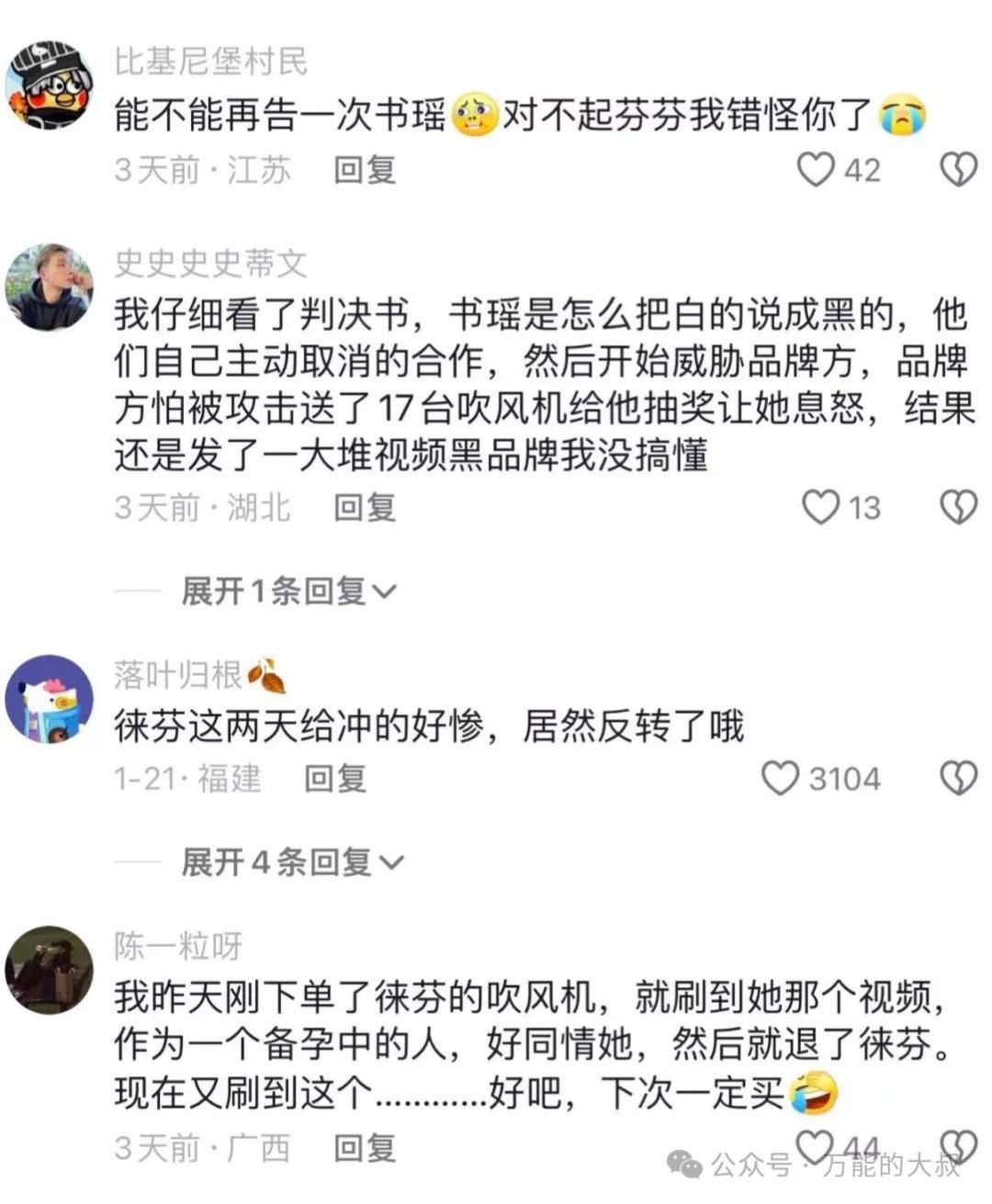 来源:万能的大叔 “徕芬欺负孕妇,不会买!”——某网友在徕芬抖音账号下面留言。 百万粉丝的自媒体,与企业打名誉权纠纷的官司,从过往案例来看,一般的结果是: 企业赢了官司,但输了声誉! 网红美妆博主“书瑶”与徕芬的官司,本来就是往这个“剧情”在走…… 2022年7月,双方本来要合作的,结果发生了纠纷。这位网红博主就开始疯狂输出,然后徕芬就告她诽谤和名誉侵权。结果呢,“书瑶”怀着孕开始和徕芬打起了官司。 这也符合大叔最近反复强调的,个人和企业的“撕逼”,舆论天然向着个人,因为个人在现在世界是弱势,在舆论世界就是强势。 “书瑶”就非常会利用自己的“弱势”,在和徕芬打官司的时候,她主动晒出自己怀孕的照片。 ![]() 还说自己女儿生病也与打官司有关。 ![]() 总是,就是一个字:惨! 在抖音拥有近200万粉丝的美妆博主,还怀着孕呢,竟然被徕芬欺负,一群粉丝或者吃瓜群众纷纷冲到徕芬直播间和相关账号下面“留言”,还有不少网友开始公开抵制购买徕芬! ![]() ![]() 徕芬眼看就要被网红博主“撕碎”了,竟然反转了? ![]() 到底发生了什么?难道《弱传播》的理论,失效了吗? 由于不少原内容已删除了,大叔只能根据网友捋的时间轴,做一个复述: ![]() 2024年1月19日,“书瑶”发布了《道不远人,自在人心》(已删除),谈及诉讼案的结果,称: 1、证明了自己清白; 2、法院认定,我说的都是事实,诽谤不成立,辱骂成立; 3、赔了33万; 4、法律还我清白,帮我证明,我没有说假话 5、给粉丝说一声,我没有骗人。 6、这33万,用它做公益多好。 ![]() ![]() ![]() 19日当天又发了一个《日常》(已删除),称上条视频不知道为什么被卡了,提到:“不知道对方要怎么弄我”(示弱)。 19日当晚,大量用户冲进徕芬直播间,为主播鸣不平!大叔只找到一位当时冲进去网友被拉黑的截屏。 ![]() 21日上午,“书瑶”发布了《报一个平安》(已删除),提到: 1、收到很都关心; 2、很害怕,没想到会上社会榜; 3、只是把正常结果给大家说下; 4、害怕搞不过人家,别人会不会来做什么事情弄我;(示弱) 5、道歉视频不敢发。 21日下午15点33分,徕芬发布声明,称: 1、法院认定了“书瑶”存在侮辱、诽谤行为; 2、明确徕芬不存在违约行为; 3、徕芬胜诉; 4、判决生效是在23年11月2日,过去近3个月,没有对外说过; 5、公开完整判决书,还原事实真相。 ![]() ![]() 21日15电42分,徕芬发布“徕芬公司与某自媒体博主一审、二审判决书”全文。 ![]() 21日16点35分,@中新经纬 发布微博,#网红是书瑶呀否认诽谤事件反转# 登上微博热搜。 ![]() 网友开始纷纷吃瓜! 1月22日,“书瑶”发布了《我确实没有诽谤行为》的短视频,称: 1、骂品牌是事实; 2、清白是没有诽谤这个品牌; 3、请大家不要继续讨论了。 “书瑶”关闭了评论区。 ![]() 在微博和抖音,网友的评论开始反转,纷纷表示:徕芬真可怜,之前冤枉了徕芬。 ![]() ![]() 经过基本捋完了,大叔做个点评吧。 因为这个案例非常具有典型性,对其他品牌来说,尤其是与网红主播有合作的品牌方,都应该学习借鉴;反过来,如果你是网红主播,也可以反向看这个案例,如果你想要和品牌方“撕逼”,你应该避免做什么。 还是一开始的问题:“徕芬欺负怀孕网红”舆情,为何能反转? 大叔认为,徕芬做对了4件事,分别是: 1、官媒定调;2、舆论场转移;3、发动网友查案;4、示弱。 下面具体分解。 1、官媒定调。 公关战的核心就是抢占有利事实,并放大它。 在此前的舆论中,博主占有,因为博主抢占了“品牌欺负孕妇”这个话题,而在1月19日视频中,则强调了“自己清白”、“ 诽谤不成立”,但还是“赔了33万”。言下之意,自己还是被徕芬“欺负”了。 徕芬虽然也很快公布了声明和判决书的部分截图,但吃瓜群众的心态是: 你说你的,她说她的,我看我的,然后,我更偏向于相信弱者。这也就是一则危机公关声明很难对舆情实现反转的底层逻辑,因此,声明只是素材而已。 徕芬的反转,就从一个官媒定调的“微博热搜”开始。 #网红是书瑶呀否认诽谤事件反转#,阅读1.2亿,热搜榜排名第六,在榜时间8.1小时。来自@中新经纬。 ![]() 大叔觉得,话题中“事件反转”这四个字分量最重,相当于官媒定调了,因为中新经纬的背后是中新社。官媒都说反转了,到底啥情况,才开始吸引更多人关注。 2、舆论场转移。 这其实和第1条是一切的,只不过大叔觉得拆开说,你更清晰策略。 网红博主的“主场”是抖音,能发动自己的粉丝去冲品牌的直播间。而抖音虽然也在做热搜和社会新闻,但它的推送还是以算法推荐为主,热搜并不是第一流量入口。 ![]() 微博则完全不同,微博最强的产品就是热搜,且微博聚集了大量官方媒体,是一个天然的舆论场。 因此,在公关战中,徕芬在抖音就很难有反转的机会,必须将公关战的主战场从抖音转移到微博,从而在微博端发动更多的吃瓜群众。这时候,就要考验你的微博运营以及资源了。 3、发动网友查案。 这点非常关键,如果说,官媒的热搜,只是打响了反转的第一枪,那最关键的总攻战,就来次这第二枪,即: 徕芬主动把判决书全文发出,并在部分核心信息上画了红框。 这个动作,用大叔的话说,就是发动网友查案。啥意思呢? 因为双方都会主动喂对自己有利的“料”,所以,真正的吃瓜群众其实谁也不信。怎么办?那我就公布全部细节,你自己看,自己判断,自己总结,自己再输出和传播,所谓自己