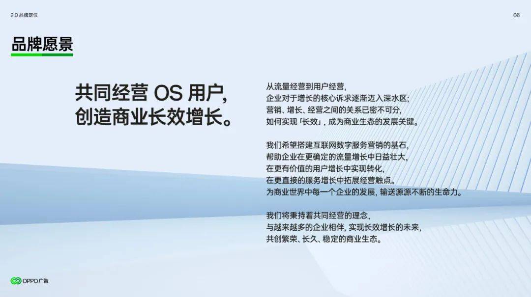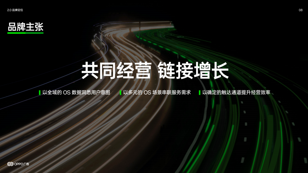 作者|何文 时代的浪潮滚滚向前,所有事情都在变。如果耽于过去的“惯性”,企业的发展会受到明显阻力。 就拿营销行业来说,明明互联网用户数量和使用时长都接近天花板了,但仍然一味追求前端拉新,没有把增长、经营放到一起看,结果就只能在“内卷”中空耗资源;在讲究“全域”、“全场景”的新阶段,如果营销链路割裂,那些本来可以抓住的增量,就会因为环节与环节的不通畅而错失。 还有一种容易被忽视的情况是:广告主对营销场域的理解过时了,“机械式”把某个营销平台跟一个片面的、局部的营销目标匹配在一起,忽视了营销平台变化带来的新机会。 不可否认,营销领域新风盛行。业界逐渐从重视前端拉新,转向重视后端精细化运营;从追求用户规模,转向重视用户LTV;从“玩流量”,转向“重视用户价值”。但这些“新风”很多还是“意识层面”的——具体怎么做?在哪里做?如何辨析不同营销平台当下的价值?仍有不少模糊的地方。 OPPO广告升级了什么 1月25日,OPPO广告发布了新的品牌主张——“共同经营、链接增长”。作为终端营销领域的重要参与方,OPPO广告的“升级”,给行业提供了跳出惯性、把握确定性的思路和实操路径。 ![]() 图源:OPPO广告品牌手册(2024版) “共同经营、链接增长”内涵丰富。在传统印象里,广告主认为终端是分发平台,两者是“需求方”和“供给方”的关系。“共同经营”意味着双方身位的转变,广告主和OPPO广告是“同一边”的伙伴,双方各有所长、互补性强,可以共同为经营目标努力,共同为用户创造价值。 这种情况下,广告主和OPPO广告的合作关系将“由浅及深”,前者不再只是把后者当作拉新渠道,而是作为持续影响用户,提升活跃,建立长链接的必选经营阵地。 这也是“链接增长”值得被揣摩的地方。在此前“追求规模”的行业语境里,“增长”指代的是用户数、下载量的增加。然而,在“狭义”的增长之外,诸如用户活跃度、订单量、ARPU等经营指标,实则具备更多拓展可能性。OPPO广告希望做的是:通过更多终端营销能力触达用户全生命周期,在这个过程中为企业经营的增长带来新的活力。 ![]() 图源:OPPO广告品牌手册(2024版) 放在今天“追求生意韧性、可持续性”的新语境里,OPPO广告的升级符合趋势,但这也意味着,作为营销平台的OPPO广告必须具备更丰富、普适、全面的能力,才可能让自身价值渗透到不同行业广告主的经营链路去。 支撑其OPPO广告升级主张的是三项关键能力:全域OS数据、开放多元的OS场景、确定的主动触达通道。 全域OS数据,意味着广告主可以得到一个洞察“外援”。常见的情况是,广告主积累了一定的用户洞察,也搭建了数据分析模型,但总有些跨触点的媒介接触行为或“端外”的用户行为是广告主一方难以了解的。OPPO广告提供了终端独有的数据视角,和广告主的积累两相结合,可以更精确地做用户分层经营,为前端广告投放和后链路的价值挖掘打开空间。 开放多元的OS场景,则提供了串联“用户需求和广告主服务能力”的通路——巧用“负一屏”,广告主可以在端外分发服务,也能用更精细化的手段提高服务转化效率;用好OS多场景(如锁屏、日历等)的预约提醒功能,广告主可以更大程度激活前期宣传的成果,在指定时间收获“爆发”。 类似的,OPPO广告的全局搜索、泛在桌面卡、流体云等,同样可以作为广告主的“经营场”,为其整合交易转化、私域沉淀链路,创造“经营”上的增量。 在用户分层经营、精细化运营、广泛搭建经营链路的基础上,OPUSH、智能短信等主动触达通道,相当于“临门一脚”。所有被激活、被精心维护的需求,都可以借这“临门一脚”走完最后一公里,让广告主实现经营规模和效率的双重提升。 “三项支撑”是在OPPO广告的发展过程中”自然生长”出来的。自2015年OPPO软件商店上线效果广告业务以来,OPPO广告在数据、场景、能力等方向上持续发展,和广告主的合作反哺着OPPO广告对客户痛点、终端营销方法论、“增长+经营”的理解,这才有了如今的“升级”。 ![]() 图源:OPPO广告品牌手册(2024版) 简言之,终端营销一直在迭代,OPPO广告是这个领域的探索者。与其把它的“升级”视作对行业趋势的“跟随”,不如说是OPPO广告沉淀出方法论和解决方案后的自然结果。 重识OPPO广告,向价值深处要增量 在正式提出“升级”之前,OPPO广告和不同行业的广告主已经有过诸多合作。不同行业各有痛点,比如,生活服务行业希望主动承接即时、泛在的需求;在线阅读行业追求促活和提升用户日均阅读时间;视频影音行业注重和会员的深入沟通。 痛点各异,但它们的底层是相通的——广告主需要的都是更了解用户、用更精细化的手段促成不同层别用户的转化、并在最后关头攥紧“确定性”。这种“相通”,客观上构成了OPPO广告和广告主“共同经营、链接增长”的空间。 生活服务行业的显著特点是用户需求总是“来得突然”,需求解决后,APP很容易被“闲置”。如何让APP在用户的手机里“活跃起来”,主动接住用户的潜在需求,是该行业扩大生意规模的重点。为此,某生活服务APP和OPPO广告在OS数据、OS场景等方面进行密切合作,配合种草、促流转、需求唤起、节点引爆等手段经营分层人群,最终实现用户七日留存率提高17.2%、简历投递率提升67.5%的效果。 类似的,在和OPPO广告的合作中,某免费小说A