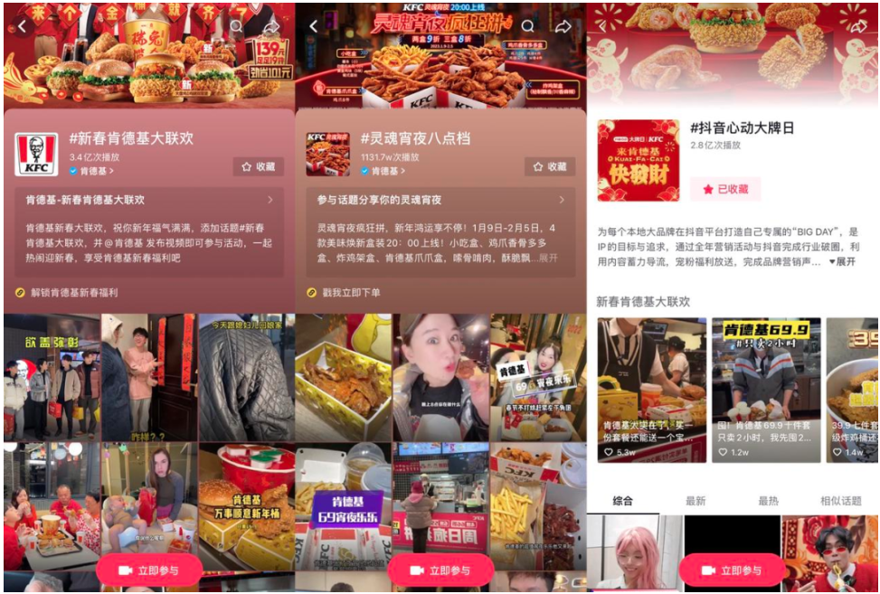 对于广大西式快餐等产品发售频次较高的餐饮商家而言,「应季上新」四个字不陌生。据艾媒咨询《2022年中国西式快餐行业发展研究报告》,新产品上新以49%的占比成为驱动消费者购买的第二大因素。「应季上新」可以是新产品的研发、新概念的包装。但是如果回到实际动作看,它意义不仅仅是如此。 落在生意,一次「应季上新」,意味着一次新品吸引力的释放,它将撬动短期内的生意增长;落在品牌,企业与消费者对话的机会弥足珍贵,实际上,「上新」的不仅仅是商品,也是营销动作——每个场景的营销动作,都折射出品牌形象;这些细节也展示了餐饮商家,以何种方式与用户“对话”。 2022年以来,肯德基与抖音生活服务平台合作,通过达人合作、阵地优化、创意活动等一系列营销手段,上新数十款商品,在实现生意高效转化的同时,持续为用户带来新鲜感,形成了新的数字化链接,并增强了品牌影响力。拆解肯德基在抖音平台的上新动作,或许能为有高频上新需求的餐饮商家带来启示: • 如何围绕新品特质,打造令人印象深刻的上新动作? • 如何在抖音将单点上新的动作主体化,形成连贯丰富的上新IP? • 如何借势抖音上新,强化与用户的链接、以至为后续的长效经营打好基础? 01差异化商品+多元化合作对象,把新品特质“拎”出来 商品是体验的综合,上新的第一驱动点,是给消费者带来新鲜的商品体验。围绕抖音阵地,肯德基带来的上新新品,用“差异化”营造新鲜感。 以抖音为阵地,在过去的一年多时间里,肯德基从商品体验、优惠组合(品)、多元化的展示(内容)去构建这种差异化。 第一,品牌要关注商品体验。对于西式快餐而言,供应链较为稳固、消费者的对产品本身类型的认知,也比较稳固。所以要做改变,视觉、口味亮点最易入手。 在视觉上,回顾肯德基的上新产品,往往能切入到年轻人关注到的IP热点、文化热点。如,2023年初,围绕热门IP宝可梦,肯德基推出有可达鸭吸管的可达鸭双人桶等梦幻联名产品。在兔年新年,与故宫合作挖掘“兔”的生肖形象,推出“瑞兔揽金”大金桶,精心设计新春产品包装,产品包装全线共七大颜色及十余种纹样。在口味上,肯德基也懂得充分把握当时的地域热点,或季节性喜好:如围绕川蜀文化,打造秘制、川香新口味产品;在夏季,推出当季限定的油柑茶饮料等。 ![]() 第三,品牌要着力打造与新品相关的新创意、新内容。在抖音,以内容驱动生意是基本逻辑。依托抖音强大的达人生态,在应季上新过程中,肯德基围绕新品特点,迎合用户偏好,选择在地合作对象,塑造出千姿百态的内容风格,让上新更吸引人。 ![]() 以今年4月肯德基“嗷嗷大鸡架”上新为例。北方人民,天然对鸡架这一食品有着深厚的感情,因此,品牌在选择北方达人传播时,穿插东北方言、专属BGM,以“主人”、“东道主”身份主推产品,强化在地用户的归属感。而在肯德基与南方达人合作中,主打“慕名已久”、“距离太远”等关键词,强化产品味觉地域特质。洗脑式音乐、带劲的“嗷嗷大”北方口头禅,这些个性化内容,“拎”出了鸡架背后的“性格”,令人印象深刻。 ![]() 02把握场景化特点,切入公共热点,让关注从四方“汇”进去 当然,让一个“品”亮眼,对于品牌来说是远远不够的。一个品牌的“应季上新”,要在消费者的心智里扎根,需要将关注点公众化,将输出的“品”内容,变成公共话题,形成上新大事件。抖音生活服务平台为肯德基打造上新系列“大事件”,提供了丰富的场景与资源。 首先,打造营销事件,需要再次思考商品、梳理商品的特质。肯德基抓住的点是“场景化”“社交化”。 肯德基观察到,当前年轻消费者已经不满足于“三餐”。“夜宵经济”,不仅意味着新的市场空间,对于肯德基传统的用餐时段来说,也是一次补足。去年9月,肯德基携手抖音生活服务平台级营销IP「抖音心动新品日」推出宵夜新品“鸡爪香骨多多桶”,加以KFC王牌宵夜产品,共同打造KFC「灵魂夜宵新菜单」。不仅成功将此新品多多桶打造成为明星爆款,同时也强化了消费者中肯德基的“宵夜”心智。 8月,肯德基又洞察到了暑期聚会、旅游出行多人场景的餐饮需求,打造第二个IP“呼朋唤友炸鸡节”,一方面,在量贩新品上做文章,激活用户“囤货”心智;另一方面,达人、官号、矩阵号接力直播,既实现了暑期爆款的“应季突围”,也为区域经营打牢基础。 ![]() 去年11月,世界杯受到了球迷,尤其是年轻群体的广泛关注。肯德基联合抖音心动观赛季,打出“肯德基灵魂宵夜,看球标配!”的口号,让“灵魂夜宵再上新”,同步推出多款新品、性价比套餐,同时在11月18日邀请品牌代言人鹿晗开启抖音专场官方直播,和大家一起“撸串”“聊球”,最高在线人数超6万人,IP成功“破圈”,深入人心。 ![]() ![]() 首当其中的原因是,以“场景化”为入口,肯德基可以深入一大批主要消费者的生活方式。无论是夜宵、还是夏夜聚会分享,都会长期、反复出现,IP得以反复触达消费者,加深其印象。此外,“社交感”延伸了餐饮的意涵。无论是为夏日新品上抖音“打卡”,还是和朋友相约分享美食,手中的肯德基,都成为了同好们“共同的语言”。社交感的实质是,品牌洞察并满足着用户的情感期待。 不妨回顾肯德基「应季上新」的脚步:在与抖音的合作中,打造抚慰晚间的“灵魂夜宵”,打造出适合夏日聚会