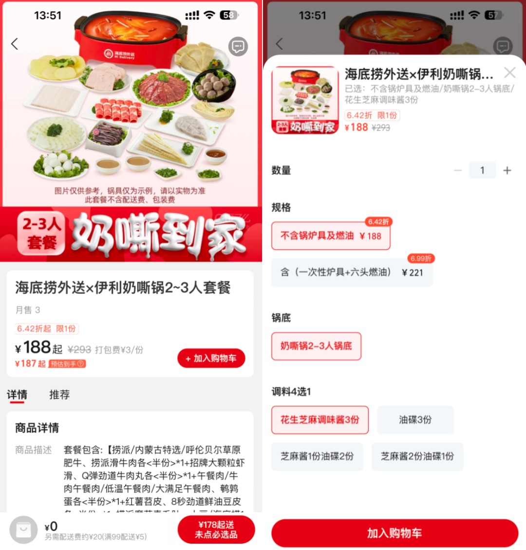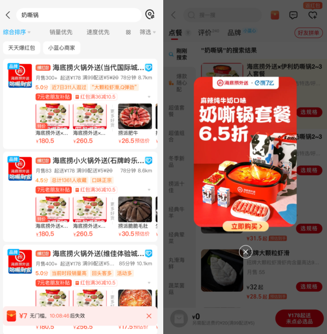 作者:张云清 汪真 编辑:鹤翔 出品:零售商业财经 ID:Retail-Finance 1月26日,由伊利和海底捞外送联合推出的“奶嘶锅”在饿了么平台首发上线。这也是伊利和海底捞这两家乳品和餐饮巨头在产品层面的首次牵手出圈。 在万物皆可“跨”的趋势下,过去一年,一众餐饮和零售企业的“放飞自我”给消费者带去了惊喜满满的新潮体验。各式各样的跨界联动也助力不少品牌进一步收获了销量和口碑。 当然,在各类市场反响平平的行业案例中不难发现,品牌间单一且频繁的跨界活动容易产生消费者审美疲劳,唯有双方契合的新奇联名才有可能产出爆款,达到 1+1>2 的目的。 这一次,伊利与海底捞外送结合自身优势,推出“奶嘶锅”这一跨界口味,无疑给市场注入了一剂强烈的新鲜感,也给不擅长吃辣的年轻食客带来了更Nice的用餐体验。 「零售商业财经」认为,这样极具反差感、新颖度、稀缺性的新口味,对合作品牌而言,能促进不同用户群的碰撞与融合,创造更多元、有趣的服务场景,激发并满足用户潜在需求。 “餐零”跨界的新样本 笔者以“奶嘶锅”为关键词在饿了么平台上搜索发现,目前海底捞外送品牌logo统一新增“奶嘶到家”蓝底白字字样,同时线上门店开屏设有“奶嘶锅套餐6.5折”活动推送。 ![]() 图源:饿了么 产品售价方面,一份2-3人奶嘶锅套餐包括两种规格,不含锅炉具及燃油套餐188元起,含一次性炉具和六头燃油套餐则为221元起。 ![]() 图源:饿了么 与其他火锅套餐不同,奶嘶锅中由两包海底捞火锅底料与三盒伊利脱脂纯牛奶组成的麻辣纯牛奶口味的定制锅底,是最大的产品亮点。据悉,此次跨界新吃法的灵感来源于海底捞在海外备受欢迎的“麻辣牛奶锅”:它采用专属调制的香辣牛油风味汤底,融合了脱脂工艺的牛奶,使锅底辣味更加温和,奶香浓郁,让平时不擅长吃辣的顾客也能够轻松驾驭。 众所周知,海底捞以“创新”拥抱市场,从演唱会“捞人”到科目三爆火,深度洞察消费者需求和心理是其牢牢抓住食客们心和胃的秘密武器。 在海底捞社区营运总经理张赢看来,牛奶与火锅互不排斥,属于天然的搭配组合。奶嘶锅的出现,让平时不擅长吃辣的顾客也能轻松驾驭,带给年轻消费者更好的用餐体验,更大的满足和乐趣。 奶嘶锅诞生的底层逻辑就是口感创新,牛奶的香醇与甘甜能够在微辣中“杀”出一记漂亮的回马枪,让消费者唇齿留香、回味无穷。伊利上海分公司总经理王保广表示:“在这次跨界联合中,伊利发力重点就在于通过联名产品本身提供给消费者反差感、新颖度、稀缺性,以及一定程度的情绪价值。” 就拿“奶嘶锅”新消费场景来说,创意锅底不仅拓宽了客群覆盖面,让微辣人群的有了更多可选项,实现品牌的多元场景占位,更好地触及潜在消费群体。 海底捞与伊利的品牌合作为“奶嘶锅”的诞生奠定了可能,而饿了么作为平台方,在此次合作中不仅提供了最基础的销售渠道及履约配送,更依托于新品孵化中心的数字支撑,帮助两家企业捕捉市场需求、进行新品研发。 从这个角度来看,海底捞与伊利成为“Fun搭子”的背后,也是饿了么推动创意性“餐零”融合、建设和繁荣本地生活的一次新尝试。与此同时,饿了么向行业传递的价值信号也发生了明显转向:不希望只成为一个上货再分销的渠道,而是希望与整个零售业态的品牌一起,共同建立更贴合消费者、贴近本地生活的全新经营生态。 定制化场景营销玩出新增量 事实上,奶嘶锅并非饿了么第一次试水“餐零”融合跨界。 早在2019年,华润雪花啤酒就与饿了么开展合作。饿了么借助其用户端优势,为华润雪花啤酒提供定制化营销策略,帮助其实现精准客群投放和品牌阵地的私域沉淀,通过热点内容撬动流量,以话题营销、事件营销等多种方式帮助其破圈,实现品牌的拉新与复购。 ![]() 图源:雪花啤酒勇闯天涯官微 2024年,华润雪花啤酒直接提高了在饿了么的增长目标:要实现80%以上的增长率,其中连锁渠道增长55%、餐饮零售新渠道增长150%以上、新供给渠道增长至少350%。 ![]() 图源:饿了么微博 同样地,饿了么还成功地为王老吉和海底捞在线上创造了“火锅搭配王老吉”的联合营销概念。这一营销策略与双方的产品特性完美契合,推广期间,捆绑销售的套餐迅速成为海底捞销量前三的热门选择。 除了品牌×品牌的双向合作外,在去年双十一,饿了么发起小蓝盒×活动,联合一众品牌发起#冬天是用来泡的#话题,聚集联合利华、奥利奥、星巴克多品牌组成冬日搭档。通过“内容种草+情绪营销”的方式,锚定消费者的生活习惯和情感诉求,携手众多品牌共同搭建多样化的冬季生活场景,实现内容营销的深度植入。 ![]() 2024年开年的“奶嘶锅”项目则带来了餐零融合的在产品层面创新的新方向,未来或许会有更多零售品牌跨界找搭子,推出创新产品。 在各式各样的跨界合作中,饿了么提供的不止于最基础的线上销售和履约配送服务,而是充分发挥了“机会洞察-撮合合作-研发口味数字支持-跨界场域营销一体化”的能力。 这一能力涵盖了从市场洞察、合作伙伴匹配、口味研发的数字化支持,到跨行业营销的全面支持,这也是饿了么能撮合成功不同品牌组成“Fun搭子”的核心竞争价值。 本地生活下一步的“生态繁荣” 本地生活的大蛋糕向来被互联网巨头们牢牢关注着。根据艾媒咨询《2023-2024年中国本地生活服