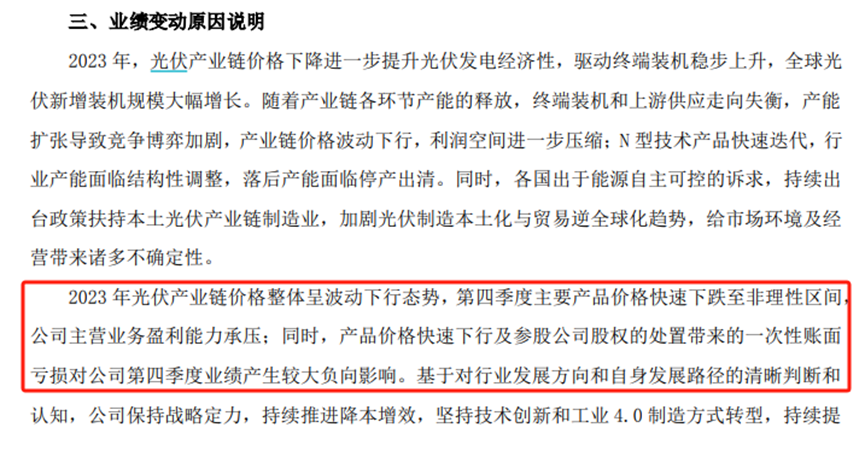 来源:阿尔法工场研究院 新旧增长动能切换,资产优化势在必行 在业绩宣告下行之际,TCL中环(002129.SZ)宣布回购增持。 1月26日晚,TCL中环发布2023年度业绩预告,公司2023年归母利润相比上年同期减少29.6%-38.4%。 ![]() 业绩下滑的原因,根据公司披露,2023 年光伏产业链价格整体呈波动下行态势,第四季度主要产品价格快速下跌至非理性区间,公司主营业务盈利能力承压;同时,产品价格快速下行及参股公司股权的处置带来的一次性账面亏损对公司第四季度业绩产生较大负向影响。 ![]() 为何前三季度表现可圈可点,四季度出现“骤降”?笔者认为,原因可能主要来自两方面。 ![]() 一方面,行业大环境因素。去年一季度末,光伏硅料和组件价格达到顶峰之后,出现加速下滑。 ![]() 2022年-2023年中国单晶硅片(182mm/165μm)现货价格(平均价)走势图(单位:美元/片) 到了年底,去年12月28日,硅业分会市场行情数据显示,P型M10单晶硅片(182mm/150μm)成交均价为1.92元/片,N型单晶硅片(182mm/130μm)成交均价为2.18元/片。 就在一个月前的11月16日,M10单晶硅片价格还是2.39元/片,N型单晶硅片成交均价为2.4元/片。特别是P型M10硅片价格,与2022年底的5.41元/片价格相比,一年降幅高达65%。 光伏组件价格,下跌同样明显。今年以来,光伏组件价格从年初的1.8元/瓦下滑至6月底的1.3元/瓦,再到三季度跌破1.2元/瓦,年底再度跌破1元/瓦。 面对硅料和组件价格持续下行,管理层计提硅料和组件存货减值,当属主动采取风控措施之所当为。根据财通证券和国金证券等券商估测,这方面TCL中环计提减值亏损约 8亿元-10 亿元。 对可能暴露于风险的资产计提大额减值,是一种审慎的行为。短期内虽不免引发公司利润波动,但也降低了未来的风险敞口(risk exposure)。 更值得注意的是,减值的发生,并非是全方位、无差别的。光伏价格下行风险在P型硅料或组件为代表的旧技术端,更加明显。以N型为代表的新技术路线,作为未来的行业主流,有望率先走出下行周期。 近期数据也支撑了这一点。最近,N型硅料呈现结构性紧缺,N型硅料均价环比上涨。硅业分会数据显示,1月31日,N型硅料成交价格区间为7.00万元/吨-7.30,平均7.19万元/吨,相比去年底的6.78万元/吨均价,上涨约6%。而同期P型硅料涨幅低于2%。 在价格波动带来的供给侧出清震荡下,对于提早布局N型路线的硅片龙头,反而有机会再度推高N型硅片市场占有率,并享受到相应的增长红利。 自TCL中环确立从P型到N型的转型路线之后,主动大量“抛货”P型硅片和组件,同时加快N型的投产,N型硅片开工率占比快速提升。 另一方面,笔者观察到,TCL中环自身也在积极主动优化资产结构。这有利于甩掉“负重”,轻松上阵,聚焦新技术路线。 出让参股公司新疆戈恩斯的股权,应当是配合转型战略、进行资产优化举措之一。 新疆戈恩斯生产的主要产品为棒状硅。业内普遍认为,棒状硅将逐渐被更具成本优势的颗粒硅替代。 去年四季度,TCL中环对新疆戈恩斯持有股权的处置正式完结。根据券商估测,这一处置将带来超过4亿元的一次性账面亏损。 上述计提资产减值及处置股权损失,合计将为TCL中环带来约12亿元-14亿元的亏损。有卖方分析师预计,公司四季度亏损中值约为16亿元。可见,TCL中环四季度业绩下滑,更多受到了非主营业务因素影响。 无论是风控“出清”还是资产优化,对TCL中环未来的经营基本面而言,无异于“价值重塑”。四季度利润下修,反而为市场带来一次“报表底”。 新旧周期切换中,各项指标会在“探底”的起点上得以修复,新的产能生态效应重新建构。未来实现价值回归,并不令人意外。甚至,股价短期波动,对于能真正辨识清晰这一逻辑的投资者,是一次难得的机会。 或许正是基于这样的逻辑,管理层也以“真金白银”迅速向市场表明了对公司未来发展的信心。 业绩预告发布三天后的1月30日,TCL中环再次公告已回购近500万股股票,成交总金额达6256万元。 ![]() 以技术创新驱动,引领中国光伏产业 与“追涨杀跌”的短视投资者不同,光伏从业者对行业的长期信念,并非建立一份报表的几个数字上。 单薄的数字之外,是宵衣旰食、焚膏继晷,忍耐住寂寞,即使在底部,亦抱持“技术创新”的坚守。 中国光伏产业20多年发展史,是一部技术路线变迁史。中国光伏业,正是靠着持续不断的技术更新换代,驱动发展。 回顾十多年前,从2009年保利协鑫建成国内最早的多晶硅产线开始,中国光伏企业通过自研自产和引进改良国外技术两种手段,一次次打破国外技术垄断,最终推动中国光伏业驶向“光速”快车道。 而今,技术迭代已经成为全球光伏行业发展的主基调。 以“技术派”TCL中环为例,或许正是因为抓住了每一次技术竞赛中的“赛点”,方能实现长达20年的高速发展。这得益于公司对研发和专利长久的投入和支持。 笔者发现,自成立以来,TCL中环主导多次技术变革和创新,始终在引领行业发展。 曾几何时,受制于成本约束,多晶硅市场份额远远大于单晶硅。众多业内外玩家疯狂涌入多晶硅赛道,而TCL中环始终坚持物理结构更优的单晶硅路线,难能可贵。又凭借在成本和产能等方面数次突破,令TCL中环最终实现了单晶硅对多晶硅的“取代工程”,成为“光伏硅片双雄”之一。 2019年,TCL中环全球首发G12大尺寸硅片,光伏从此进入大尺寸化时代。大尺寸硅片技术,不仅是通常意义上的尺寸加大,而是兼顾了