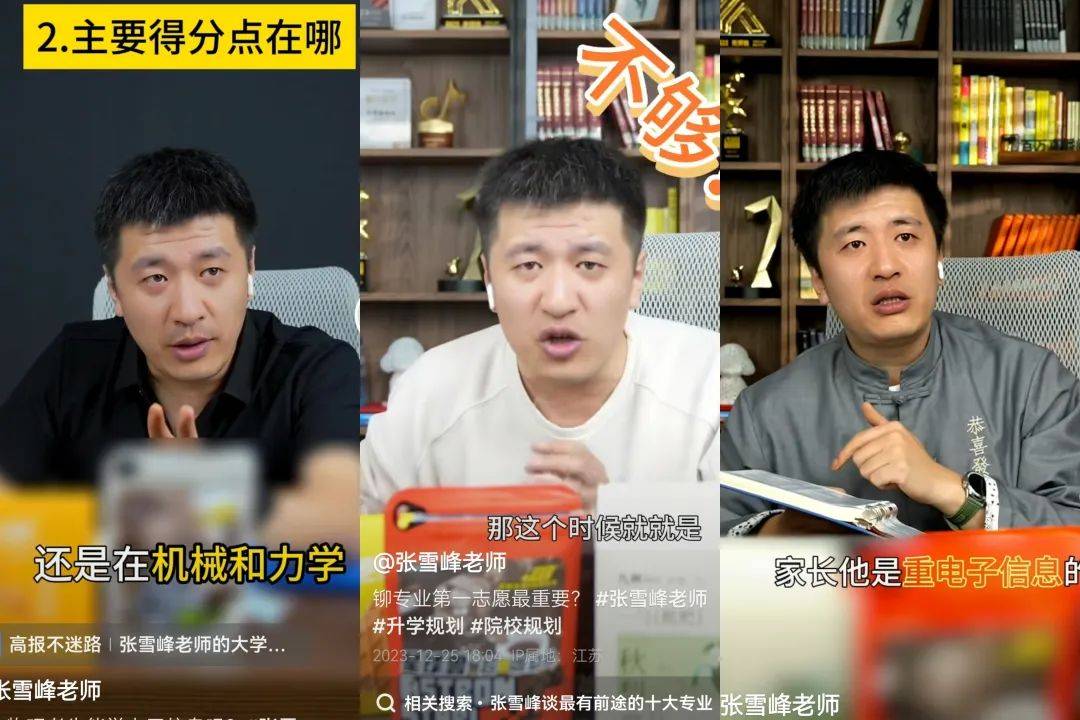 来源:卡思数据 1月22日,曾起诉张雪峰的微博博主@顾言右 宣布撤诉,“文科都是服务业”这一言论引发的舆论喧嚣也终于走向尾声。 但热搜上,张雪峰的名字还在频繁出现。春节期间,在一众春晚热搜中,张雪峰的“建议大学举行入学考”多少有些显眼,他在微博吐槽自己“格格不入”;春假末尾,他称自己给员工包了一个下午红包,结果“张雪峰晒开工红包”又挂上热搜,引来众多打工人羡慕。 ![]() 过去一年,张雪峰无疑赚足了流量和关注。在鸥维数据统计的中国年度话题人物榜中,张雪峰热度位居第三,排在他前面的是董宇辉和许家印。这一年,他的抖音账号@张雪峰老师 涨粉超1240万,位列年度涨粉榜单第八位。 自从去年5月因“新闻无用论”引发巨大争议后,张雪峰的每次出圈几乎都与其言论有关,外界舆论纷纷,带动他的热度水涨船高,而当我们回顾这些热搜,也不得不承认:时势造就张雪峰。 网红张雪峰,因言走红 张雪峰在互联网上的首次走红发生在2016年。在那支流传全网的《七分钟解读34所985高校》视频中,他像讲脱口秀一般快速解读着自主划线的高校,说哈工程“又好又好考,年年没人报,招还招不满”、形容吉林大学很大时说“美丽的长春,在吉大里面”……因为这条视频,张雪峰就此一战成名,开始了网红生涯。 ![]() 此后的张雪峰几乎每一步都踏在IP化的道路上:出书、参加综艺《火星情报局》《演说家》《零点食神》《奇葩大会》,甚至还参演了喜剧电影。 “因言走红”几乎是张雪峰网红生涯一套屡试不爽的模板。2016年,他就因为抨击哈理工“狗屁也不是”,收到了哈理工的律师函;2021年,北漂14年的张雪峰前往苏州,表示自己“没有北京户口”,恰好踩中了彼时年轻人“逃离北上广”的风潮,一时又冲入大众视野。 2023年,张雪峰也因其言论迎来了两次大规模出圈。“新闻无用论”来自于他抖音账号发布的视频。去年5月,在连线一位进行高考志愿咨询的家长时,张雪峰接连输出言论,劝退“新闻学”:“理科590报新闻?你会崩溃的”“拿中国本科专业目录里面,闭着眼睛摸一个都比新闻好”“如果我是家长的话,孩子非要报新闻学,我一定会把他打晕,然后给他报个别的”。 由于时间临近高考,这一争议性十足言论持续发酵,继而引爆热点。重庆大学新闻传播学教授张小强向他开火,“千万别被这样的网红忽悠”,各大媒体也纷纷下场,新京报点评,“要不要学新闻,不能只凭网红一张嘴”。更多言论被网友翻出来,诸如他不建议报考临床医学,“劝人学医,天打雷劈”,衡量适合报考金融的标准,是“有颜值,能喝酒”。 去年6月16日,张雪峰通过微博解释,“如果家境优渥,选择更多,不存在错不错的问题”“但是大多数家庭,条件没有那么好,选专业就要选适合自己的,能让自己吃上饭的。”在就业焦虑席卷年轻人的当下,这番立足于实用主义的言论迅速点燃了大众情绪,为他赢得了认同。 ![]() 在互联网上,张雪峰拥有两极分化的口碑。反对者认为他所提倡的就业导向思路过于功利主义,嘲讽他是个精明的商人;支持者则认为他为穷家庭孩子打破了信息茧房,提供了一条通往成功的捷径。最终,这场争论以张雪峰发文,称自己因过度劳累被强制住院而草草收尾。 但张雪峰的口无遮拦并没有改变。在2023年12月的一场直播中,他冲口而出,“所有的文科专业都是服务业,你知道什么叫服务业吗?总结成一个字就是舔,甲方都是对的,爷我给你笑一个吧,这就叫服务业。”相关直播切片疯传全网,张雪峰不负众望再次成为话题中心。 ![]() 舆论沸沸扬扬持续了一个多月,其间夹杂着张雪峰在微博“阴阳怪气”道歉、高校教授的指责,甚至还有与键政博主@马督工的“神交”,后者以他的“文科都是服务业”延伸出了社会议题;最为知名的,还有博主@顾言右 起诉张雪峰,在诉讼被驳回后,顾言右宣布撤诉,张雪峰又发微博表示,“被误解是表达者的宿命,当你误解别人的时候,就做好别人误解你的准备。” 这两场声势浩大的出圈为他赢得了大量流量。这一年,张雪峰抖音账号涨粉超1240万,位列年度涨粉榜单第八位,粉丝们称他为精神导师,“穷人的孩子不能没有张雪峰”。 可以说,作为一名“表演型网红”,张雪峰的出圈一部分来源于“暴论”,内核是实用主义,虽然被批判为“饭碗思维”,却精准踩中了大众情绪的敏感点。 2023年,“普通人”的定义捧起了于文亮,虚无感捧红了完颜慧德的“楼兰语”,拥有三个人格的闻神则被奉为“00后老了以后的样子”。在社交平台,年轻人描述自己“精神状态十分超前”,小红书则流行自我“物化”,“某年某月某日确诊为xx”成为流行句式。在这样一个逆主流精神的年代,张雪峰的实用主义虽然可能会被批判功利,但绝对是迎合风向的。 时代的焦虑映射到每个普通人身上,人生的成本需要精打细算。在看得见的现实困境里,年轻人纷纷扎入考公、考研的池子里,又翻箱倒柜找出张雪峰曾流传全网的金句:在2019年吉林财经大学的一场演讲中,他志气昂扬地讲,“学习,是你这辈子遇到过最简单的事情,没有之一。” 张雪峰,在抖音扩声量 2021年5月,张雪峰在苏州创立峰学蔚来教育科技有限公司,业务主攻人才培养、升学规划,其中最热门的是高考志愿填报。 艾媒咨询数据显示,2022年中国高考志愿填报市场付费规模为8.8亿元,预计2023年达9.5亿元。由于高考生缺乏获取