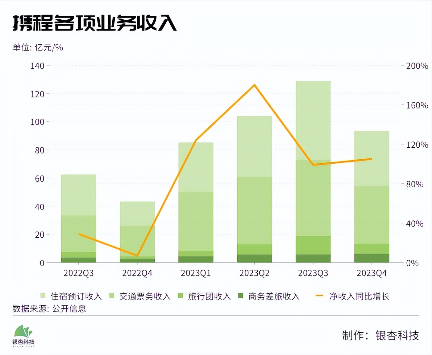 来源:银杏科技 北京时间2月22日,携程集团公布2023年第四季度及全年财务业绩。 财报显示,四季度携程集团实现净营收103亿元,同比增长105%,主要得益于旅游市场全面复苏,其中,国庆节黄金周旅游高峰的拉动作用显著。 三年亏损,一朝赚回,上半年完成修复任务后,几大主营业务继续如期保持回暖态势。四季度住宿预订收入为39亿元,同比增长131%;交通票务收入达41亿元,同比增长86%;旅行团收入为7.04亿元,较2022年同期增长329%;商务差旅收入6.34亿元,同比上升129%,环比增长7%。 ![]() 四季度成果的带动下,携程全年业绩明显回暖。2023年实现净收入445亿元,同比增长122%,全年净利润为100亿元,与上一财年的净利润14亿元相比大幅增长。财报发布当日,港股携程集团涨超5%,创历史新高,市值超2200亿港元。 国际业务成为业绩回暖的主要拉力,一是由于行业复苏、利好政策陆续释放提供外部发展条件,二是因为供应链方面多年布局奠定坚实的内功基础,使其得以率先享受市场复苏的红利。 但从另一角度,随着市场需求激增,机票和酒店的价格也水涨船高,不久前“春节游客出岛难”的现象,反映出旅游高峰期溢价飙升,已严重影响到游客的消费体验。波动性较大向来是旅游业的通病,敏感的供需关系对OTA平台的服务质量及稳定性提出了更高要求。 除了稳态不足的问题,携程还需面临更加复杂的行业环境。淄博和哈尔滨的先后爆火,展示出内容平台在文旅营销上无可比拟的影响力,尽管携程仍以市占率第一的身份稳居龙头,但身后追赶者的威胁也变得越来越明显。 涨势向好 中国旅游研究院发布的《中国国内旅游发展报告(2023-2024)》指出,2023年主要节假日旅游人数和旅游收入均比2022年有一定程度增长,全年呈现出高开稳增的态势。尤其“中秋+国庆”八天超长假期,国内旅游出游人次同比2019年增长4.1%,国内旅游收入同比2019年增长1.5%,两项数据均恢复至2019年水平,并有微小提升。 此外,节假日期间游客出游距离和目的地休闲半径明显增长,中远程旅游也在快速复苏。这些微观指标的提升,意味着国内旅游市场已经恢复正常的节奏。 宏观环境的利好,帮助行业修复的同时,也酝酿出新的发展机遇。财报数据显示,公司全球OTA平台总预订量同比增长超过70%。 分业务来看,交通预订通常是OTA平台的核心流量入口,交易额最高,但由于上游议价能力较强,平台在该项目的变现效率并不高。而旅游度假业务的利润相对分化,因为产品类型多样、定价分层,利润空间的差异较大。 酒店预订作为利润的重要支撑板块,变现效率会更高,因为除了直销占比较高的高端连锁酒店,平台对其他酒店商家的议价能力较强,佣金率较高。携程2023年全年住宿预订收入为173亿元,比2022年增长133%,住宿预订收入占2023年总收入的39%,比2022年高出两个百分点。 与业务扩容同步,2023年携程持续加码技术创新,全年产品开发费用达到121亿元,同比增长45%,占全年净收入的27%。 ![]() 尽管涨势向好,但想要稳步进入向上通道,携程面前还横亘着不少难题。 繁荣下的暗礁 春节假期刚刚结束,据文化和旅游部数据中心测算,春节假期国内旅游出游 4.74 亿人次,同比增长34.3%,按可比口径较2019年同期增长19.0%;国内游客出游总花费6326.87亿元,同比增长47.3%,按可比口径较2019年同期增长7.7%;入出境旅游约683万人次,其中出境游约360万人次,入境游约323万人次。 去哪儿数据显示,今年春节假期中国游客足迹遍布全球115个国家,覆盖全球1754个城市(除中国大陆及港澳台地区),仅欧洲就覆盖了400多个城市。最远的一段航程飞了18个小时。 ![]() 可观数据的另一面,是挤压服务资源的狼狈。 不久前,游客海南返程出岛难的话题刷屏网络,离岛机票贵到离谱、新能源汽车出岛船票“一票难求”、自驾车过海严重拥堵,甚至有游客不得已弃车跑路,或选择订机票从韩国迂回返京。“天价机票”和超出承载范围的交通压力,让许多游客的假期未能画上圆满句号。 如果说国内游的风险主要集中在价格波动上,其他因素还较为可控,多样化的服务资源和熟悉的文化环境,至少保证了服务质量的下限,那么出境游的风险则大得多,文化差异、营商政策、外交政治、治安环境等诸多因素均会造成影响。 也正因如此,与国内游的“热辣滚烫”形成对比,出境游虽有所恢复,但仍未完全回到疫情前的水平。位居行业领先地位的携程,第四季度出境酒店预订量和机票预订量也仅恢复到疫情前水平的80%以上。 波动性过大是旅游业的通病,导致服务资源在旺季紧缺、淡季过剩,背后反映出供给端的业务弹性和市场应变力还比较匮乏,这会直接影响到游客的消费体验。 艾普思资讯发布的《2023中国线上酒店住宿业市场现状及消费洞察报告》指出,2023年“五一”小长假期间,各大酒店、民宿预订火爆,由此滋生出一系列问题,如“短租房东提前取消未到期订单”、“民宿预订毁约”、“酒店坐地起价”等。以“酒店违约”、“民宿毁约”、“民宿强制取消”、“酒店单方面取消”为关键词,搜索全网2023年4月1日至5月8日的相关信息,结果数据高达3.16万条。 此外,供需矛盾的漏洞也极易诱发一些投机者利用不法手段谋取暴利。 自营化改革,是携程提出的一种解法。 通过整合服务商资源、规范履约环节的标准化流程、加强平台监管等手段进行提质增效,闭环生态扩大利润空间的同时,还可加强对需
