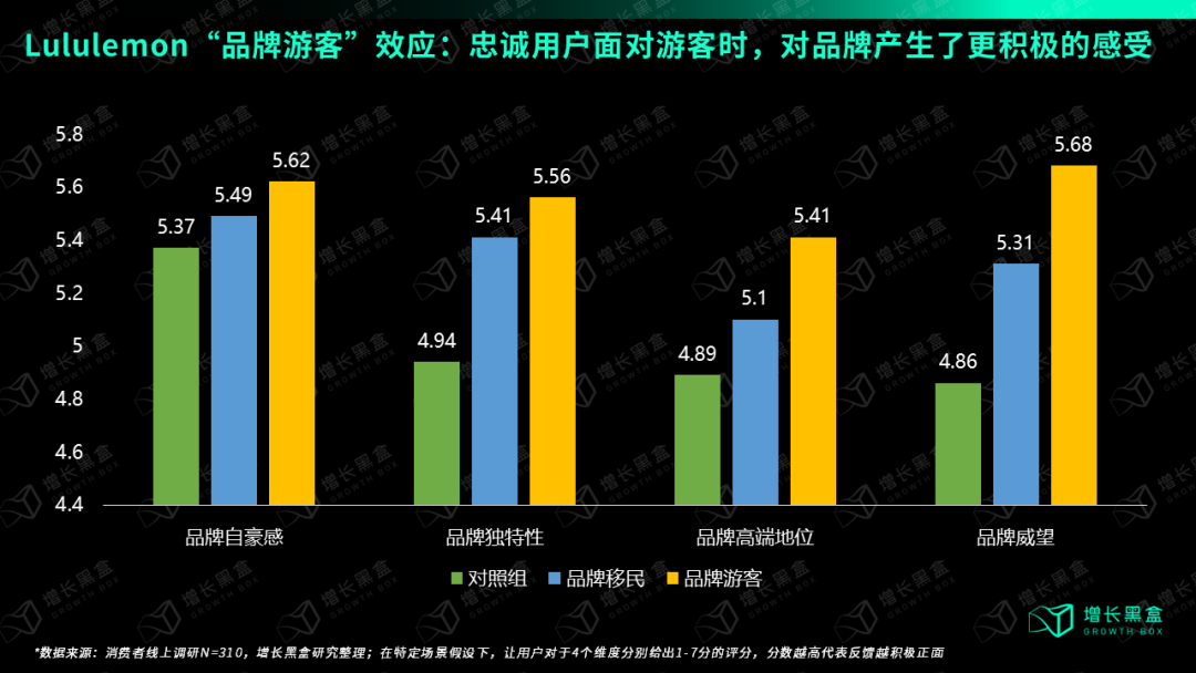![]() 论文作者通过奢侈品、教育、互联网、体育等多个品牌用户调研,验证了“品牌游客”会对品牌形象产生积极作用 - 将非公民定位为品牌游客,会在公民中产生积极的感受。当一个品牌的新用户中游客的占比越多,就对品牌下探型破圈越有利。 对于公民来说,内心其实希望游客变多。逻辑可以这样理解:假设你是个追星族,你肯定会不遗余力将自己的idol推荐给身边的人。idol越有名,欣赏的人越多,才越凸显自己作为粉丝的地位。当你跟别人提起自己的idol,自然希望对方回答一句:我听说过这个明星,很出名、很优秀 - 这就是对你间接的夸奖。 我们尝试将这个理论应用到了lululemon用户的调研中。 首先,lululemon有一个规律:所有最新款、核心款产品从来不打折,反而是用限量来做饥饿营销。平时打折的产品几乎都是非核心款、周边品类。 那么这个模型就可以简化成:只观察“新增用户”的静态情况,通过非打折产品(核心款)入坑的就是公民,而通过打折产品(周边款)入坑的就是非公民。 我们据此用场景假设的方法调研了公民在面对两种非公民的态度: 移民:购买了半价折扣的产品,并且认为自己是lululemon社区中的一员 游客:购买了半价折扣的产品,不认为自己是lululemon社区中的一员,但是欣赏&仰慕这个品牌 (对照组:公民不知道新用户的身份) 结果显示,从品牌自豪感、独特性、高端地位、威望四个角度来看,公民在面对游客时都展现了比移民更积极的态度- 这与论文中的结论高度一致,lululemon这个国家的游客越多,公民就对国家的形象越认可。 ![]() 实际上,抽样显示lululemon的游客占比高达36.5%,同时高于公民(36.1%)和移民(27.4%)。这代表品牌下探破圈的过程中的确有更多“路人粉”加入,让品牌形象在“脑残粉”心中更上一层楼。 那为什么lululemon有如此高比例的品牌游客呢? 我们认为第一点原因是:折扣活动本身就是一种招揽新用户入坑的手段。与其他服装品牌不同,其主要目的并不是清库存,而是给路人提供了一次尝试的机会,更像市场教育。 我们观察到,2023年lululemon的折扣活动频率比前一年要高出20-30%,这包括了国外的WMTM(we made too much)和国内的热汗回馈等。不过,lululemon打折的方式有个很大特点:折扣广度很大,参与折扣的SKU数量很多;但折扣深度不高,每件商品的折扣力度都很小。 左图显示,国际市场折扣广度从2018年到2023年提升了10%以上,而右图中折扣深度几乎没有变化。 ![]() 而在国内市场,lululemon在官网、门店等核心渠道的平均折扣率都在九折甚至九五折,非活动期间根本不打折。其原本用于打折的预算实际上转移到了零售体验、社群等成本中,但限时限量的打折活动越来越多 - 通过数据监测,我们发现12月热汗回馈活动带来了一波GMV暴涨。 第二点原因是:lululemon强大的产品创新能力,让好产品成为不同圈层用户通用的价值准则。即使新用户不去狂热的追随品牌文化,也会欣赏产品质量。 调研显示,lululemon更吸引用户的是产品本身,比如面料材质和款式造型,其次才是社交传播和品牌效应。而从满意度评分来看,产品质量和舒适度超过了其他所有选项。或许,并没有那么多新用户看重lululemon的品牌文化和圈层感,就是因为穿着舒服、时尚感在线才来入坑,产品的价值大于意识形态。 ![]() 这也从侧面说明了,品牌破圈不能只依靠营销包装能力刻意营造独特性,最终要回归到能否做出真正满足消费者需求的产品。想要高端品牌形象在市场下探中不被稀释,还要靠过硬的产品设计和质量。 而lululemon持续做产品创新的驱动力,是DTC模式下的用户洞察能力。 10年前,《华尔街日报》形容lululemon就像服装行业的“异类”:不做焦点小组访谈、不做大数据分析、甚至连CRM工具都没买。 公司对于客户的洞察,全部来自一线店员的观察:通过记录老客户的喜好、特点、产品反馈,从而像真的朋友那样了解他们,堪称“人肉CRM”。比如,公司特意将衣服折叠桌放在试衣间附近,而不是后面的房间,以便员工可以“偷听”用户的抱怨和投诉[6]。 那么在核心的瑜伽产品之外,lululemon究竟打造出了哪些切中消费者需求的周边品类? 根据久谦中台的数据,我们发现首先是性别的跨越,lululemon不再有女性专属的标签,电商渠道男性产品的销售额占比一直在上升,同时产品线也变的更加丰富、男女通用,标志性的align瑜伽裤产品线并不占大头。而我们也了解到从2019年到2023年,男性消费者的占比从个位数一路上升超过了30%。 ![]() 其次是场景和品类的拓展。lululemon的产品场景从单一的瑜伽转向跑步、户外、训练等,满足了用户更加多元的需求,也契合了国内市场当前的潮流。 ![]() lululemon更加大众的运动休闲产品已经成为最大、增长最快的品类,全面超越瑜伽。 ![]() 3. 规模之谜:去中心化零售如何走向中心化? 我们之前的研究显示:lululemon之所以能够靠power of three战略驱动增长(即社群营销、产品创新、客户体验),最关键的基础是在DTC模式+去中心化的组织架构。每家门店如同一个独立的BU,有着极大的自治权和高人才密度,可以自由的制定从战略到战术的规划。 而其它头部鞋服品牌以经销主导,更重视规模化扩张,零售体系都是中心化、标准化的。总部才是大脑,区域门店只是总部政策的执行者。 不难理解,当一个品牌规模较小的时候,还是靠人来构建零售体系,一切都可以个性化、自治化。虽然这种模式