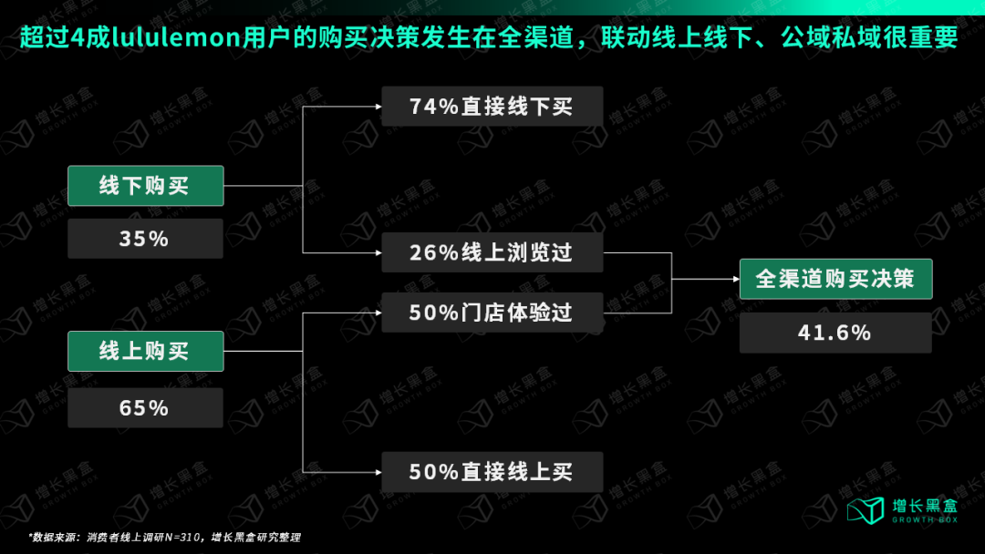 ![]() 那么,群里推了这么多内容,对于用户到底有价值吗? 通过消费者走访,我们发现一个有趣的例子:由于lululemon是个非常“政治正确”的品牌,所以大量产品图的模特会用黑人、胖子等。然而,国内许多消费者无法接受这种审美,经常能够看到用户吐槽模特丑。 但是,如果要重新定制一套本土化的产品主图体系,从拍摄到上架的时间很长,甚至会耽误上新节奏 - 这些几分钟就能拍好的KOS穿搭照,就成为了最好的替代品,且不影响官方调性。 如果用户不习惯政治正确的审美,就会去微信群和小红书找KOS的非官方照。这显然对于转化成交有着很大的促进作用。 内容上的“组合拳”能够让品牌保留个性的同时,具备服务上亿人的能力。从lululemon的用户行为中,也可以观察到鞋服零售一个普遍的趋势:今天消费者购买决策的链路更依赖全渠道,而不是通过单一的触点完成。所以,全域联动的内容体系才是零售场景的最优解。 ![]() 4. 增量之谜:去哪里找到更多的消费者? 对于lululemon来说,最有价值、最稀缺的其实是人群资产 - 这个破圈的系统必须远远不断地注入高消费力人群作为燃料,作为新增量的驱动力。 消费者在哪里,品牌就要去哪里,海外市场和电商渠道就成为了新的金矿。 首先,lululemon曾经做过一次全球用户调研,数据显示北美市场的品牌认知度已经非常高了,而中国大陆仅有7%,这其中“地缘套利”的机会不言而喻。有小道消息称,早在2019年lululemon内部业务大会上,CEO就要花四分之一篇幅来讲中国市场。 ![]() (资料来源:lululemon investor day) 现任CEO提到,lululemon的国际化拓展并非盲目出击,而是有一套完整的决策逻辑:通过名为“汗水指数(Sweat Index)”的公式来计算数据,以衡量当地市场容量、高端运动服装潜力水平以及消费者积极健康的生活态度。因此lululemon不仅能以居民收入水平来看待市场空间,还可以评估入场的最佳时机[16]。 有人推测这套高度机密的算法,原理是筛选出获客成本低、LTV高的市场区域[17]。 我们发现lululemon在中国市场不仅达到了70亿规模,占比生意超过10%,还保持了全球各区域最高增速。 ![]() 根据久谦中台的零售数据,中国地区的门店坪效、店效依然保持强劲增长;在门店数量不断扩张的情况下,同店增长率可以高达30%,比北美地区高出2-3倍。 ![]() 其次,既然lululemon每年的营收都在增长,那不妨看看增长是由什么驱动的,即:每年营收多出来的这部分新增量(与前一年的营收差值),到底是从哪来的?为什么它总能比前一年多赚钱? 按照年度来拆分渠道类型对于新增量的贡献,就能发现:电商的贡献程度每年都在上升,从2011年的17%到了2022年的50%。lululemon每年比去年多赚到的钱,有一半都是靠电商。而从总营收角度来看,当前ululemon的电商占比已经超过了线下门店。 ![]() 早在2010年之前,lululemon就在创始人威尔森的带领下布局电商了。但受限于当年的互联网技术,网站的用户体验无法满足品牌调性,只能作为清库存的渠道。威尔森坚持要把电商做下去,一直熬到2013年之后技术成熟,lululemon官网最终成长为真正的“超级门店”。 中国市场上,在头部运动品牌普遍增长乏力的情况下,lululemon中的增长速度依然是TOP级别。 ![]() 威尔森一直认为,能够赶上电商的浪潮,还是靠线下零售打下的基础 - “没有门店去做电商必然会失败”。lululemon的门店数量恰好能够让用户建立足够的认知,却不至于像快时尚品牌一样遍地都是。在提升电商的交易效率的同时,也保证了品牌高端调性[11]。 综上来看,出海和电商给lululemon提供了更大的“人群包”资源,押中了更强的红利。 5. 翻车之谜:lululemon曾经的失败教训是什么? 我们有必要提醒一下大家:lululemon的破圈之路并非一帆风顺,而是有一段不为人知的“黑历史”,比去年花西子的翻车还要惨。 那么,lululemon掉入的陷阱是什么呢? 它最终还是踏上了鞋服行业的老路:疯狂开店、压库存。 从零售角度来看:2005-2010,lululemon用六年才开出87家门店。而2011-12两年就开了87家,开店速度提升了3倍! 但是,速度与lululemon“品牌套圈”的特点是违背的,无法匹配其最初的零售模型。