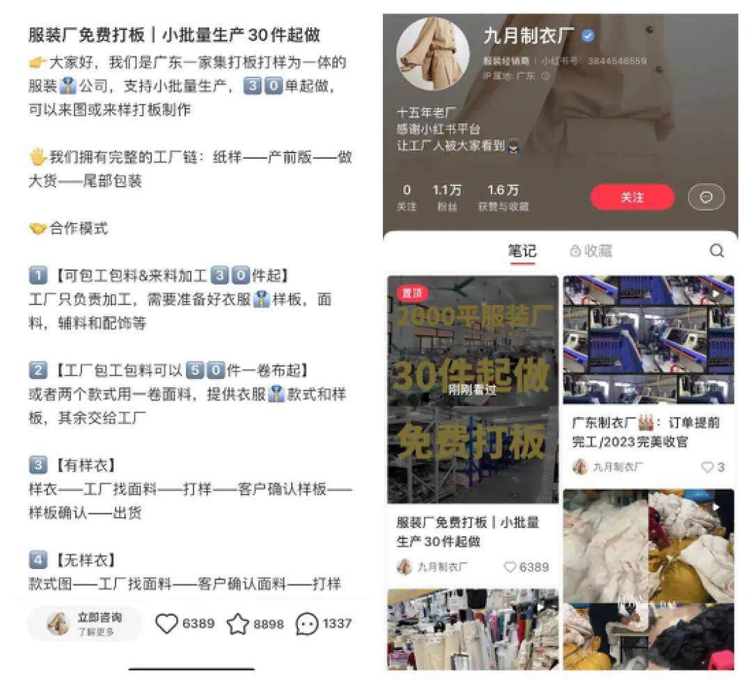 作者 | 张知白 编辑 | 陈维贤 设计 | 晏谈梦洁 2023 年“平替风”走红网络。“不是大牌买不起,而是平替更有性价比”的口号成为很多人的心声。 “平替风”的盛行,也让不少出售平替商品的 1688 工厂小镇火了,雪地靴要看桑坡村,家纺要搜南通,汉服找准曹县,这些小镇关键词都成了各个平台最火的热搜。 在这火热的流量下,诞生了很多生意机会——有的买手涌入 1688 小镇做起了代购生意;有的博主和工厂合作,开启了“厂号”一体的内容变现模式;还有的工厂老板自己捣鼓小红书、抖音账号,成为了网红“厂长”。 “平替”流量之下,1688 小镇还有多少生意机会?如何才能靠“平替风”赚到钱?今天运营社就来聊一聊,爆火的 1688 小镇,以及背后的生意机会。 01、缺钱的年轻人,捧红了桑坡村 做了十年电商运营的小刘决定,今年过完年后就不回杭州了。他告诉运营社,春节期间好几个老板找到小刘,希望他能留在小镇帮忙卖货。 过去一年不少小镇工厂生意兴隆,一些工厂老板借助互联网流量赚到了不少钱。小镇老板们觉得属于小镇的互联网经济似乎要来了,所以也愿意拿出不菲的薪水留住人才。 小刘的家乡是这些年里中国千千万万高速发展的小镇之一,这些小镇商家往往都有些“过硬”的好货品,但是在过去却不懂经营,只会帮人代工,往往只是在 1688 上挂个工厂信息,等着客户主动找上门来。 运营社给这些商家起了一个称呼——“1688 小镇商家”。它们都有着很明显的相似点:位居三四线小镇,生产的商品物美价廉,正努力尝试借助互联网的流量实现自身转型。 去年年末爆火的桑坡村正是“1688 小镇”的一员,文章《年轻人冲向“1688 小镇”:商家一天只睡 4 小时,年入百万算少的》曾提到过“一双雪地靴,带火了桑坡村”: 大约在 2023 年 10 月,雪地靴开始在小红书走红,打上#雪地靴 标签的笔记迅速超过 200 万篇。 但是国外大牌比如 UGG 的雪地靴普遍很贵,一些追求性价比的女孩开始在国内寻求工厂平替。 很快,一些买手开始在小红书上种草桑坡村的雪地靴,小红书上有关"桑坡村雪地靴"的笔记能轻松收获几千点赞,甚至“河南桑坡村”都成为了“雪地靴”标签下的专属词条。 桑坡村雪地靴能走红的关键就在于便宜。UGG 的天猫旗舰店里一双鞋大约 1000 元左右,淘宝桑坡村雪地靴大约在 100~200 元。 据天下网商报道,桑坡村的工厂每卖出一双雪地靴只挣 20 到 30 元左右,而没有工厂的店铺每双雪地靴的利润大约在十元左右。 ![]() 事实上,在走红前桑坡村只是河南一个名不见经传的小村子,一直为全球知名雪地靴品牌 UGG 代工,让整个村子积累了大量雪地靴的工艺。 但是过去几年来自海外大牌的订单缩减了,所以这些小镇商家不约而同地做起了“大牌平替”的生意。 据天下网商报道:”从去年 9 月开始,涌入桑坡村的生意人便挤满了村子。有的是本地商户,有的是代购,有的是散客,有的是电商达人。人最多的时候,村子里的旅馆涨价到了 600 元一晚。” 桑坡村的村民接受采访时提到,现在很多工厂都在互联网上做生意,不仅搭建了自己的淘宝天猫店铺,还借助抖音、小红书等流量来进行多元销售商品。 像是桑坡村雪地靴,就已经诞生了刘小北、老丁家等多个年销量十万多的淘品牌。桑坡村以经营雪地靴为主的实体店和电商店铺已经从 2018 年的十家,增长到了现在的 2000 余家。 其实像桑坡村这样的工厂小镇,在中国还有很多。做家纺的南通,做汉服的曹县。当小镇物美价廉的商品得到了很多消费者的认同后,小镇名字都成了不少电商平台的搜索的关键词。 ![]() 02、“平替风”火了,1688 工厂也在互联网走红了 过去三个月里,小红书#源头工厂 关键词话题浏览量达到 1.45 亿,相关笔记数达到 6.44 万篇。 ![]() 社交媒体的流量的火热,拉近了消费者与工厂之间的距离。不少工厂在小红书开设账号,分享工厂日常,还有些工厂则借助知名买手的力量,迅速将产品推广出去。 1)打造工厂账号,形成店号一体 运营社之前在《在小红书月赚百万,“厂二代”们迎来泼天富贵》一文中,提到不少工厂通过打造“厂二代”人设,轻松月销百万。 除了“人设类”账号外,还有些工厂商家,则以工厂直拍、和工厂合作模式介绍为主。比如在小红书拥有 1.1 万粉丝的@九月制衣厂 其内容朴实无华,有的笔记拍摄忙忙碌碌的纺织厂女工,有的笔记拍摄简单不加滤镜的商品。 工厂在小红书发笔记,主要也就是为了获得更多的商单。@九月制衣厂 其合作模式介绍笔记,在小红书投流后,点赞高达 6389,粉丝可以通过笔记左下角的“立即咨询”迅速联系到工厂商家。 @九月制衣厂 通过小红书被更多人看见,也获得了更多生意,这是不少工厂商家加入小红书的原因。就像@九月制衣厂在简介里写的那样:感谢小红书平台,让工厂人被大家看到。 ![]() 除此以外,还有一些工厂也用自己的账号直播带货,比如 1.3 万粉丝的@北方鹿羊绒服饰商家自播,单场销售额超 25 万元。 ![]() 2)积极合作博主,线上线下高效引流 另外,有一些工厂商家缺乏内容经验和相关人才,所以他们往往会借助一些博主、买手的力量,实现自身产品的破圈。 目前在小红书上,已经诞生了大量探厂博主。像是有 12.2 万粉丝的 @刀哥探厂笔记,1.3 万粉丝的丹姐探厂笔记。 他们的推广笔记非常相似,会直接在首图放“1688 超级工厂”的小牌子,把工厂的名字亮出