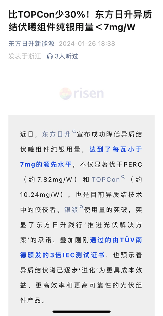 来源:阿尔法工场研究院 01.押注HJT 走过“一半是火焰,一半是暗礁”的2023年,从先进产能到消化过剩,光伏行业仅用了半年。 到今年2月春节前,分布式与集中式项目中标均价再度双双下行。 ![]() 去产能、解决开工率不足,仍是2024年光伏产业开门主题,已无可争议。一片肃杀中,却有个别公司表现,呈现出“逆行”之势。 ![]() 1月12日,天合光能(688599.SH)董事长兼首席执行官高纪凡接受采访时提到,“谁能研发出转换效率更高、输出功率更大的光伏组件,就能快速占领市场份额。技术领先带来的,是源源不断的订单,有企业部分组件的生产已经排到了2024年底。” 笔者与产业人士交流得知,高纪凡所说的公司,正是近年专注于HJT(Hetero-junction with Intrinsic Thin-film,本征薄膜异质结电池)组件的东方日升(300118.SZ)。 东方日升公司属于光伏二线企业,主要产品包括多晶硅太阳能电池、单晶硅太阳能电池、薄膜太阳能电池以及太阳能储能系统等。第三方机构InfoLink统计的2023年上半年全球组件出货量排名显示,东方日升位居行业第八。 东方日升走到今天,可谓一路起起落落。 公司创始人林海峰是“75后”。大学毕业接手父亲的橡塑厂后,林海峰尝试了汽车功放音响、进水机阀门等,均告失败。因负债上百万,林海峰甚至一度想替人当司机谋生。 靠着未婚妻5万元支持,林海峰通过注塑机生意东山再起,并因此接触到太阳能灯具。2002年宁海县日升电器有限公司成立,成为国内最早的太阳能光伏应用企业之一。2006年,第一条太阳能电池片生产线开建。又过了四年,东方日升登陆科创板。 这一年林海峰35岁,成为身家45亿的宁海富豪。 但不久后,“双反”影响下,组件营收暴跌50%。林海峰又通过大规模电站开发和补贴,在2014年至2017年,将东方日升壮大到100亿营收规模。东方日升再一次迎来高光时刻。 然而,其后东方日升经历了收购江苏九久科技麻烦,以及2019年7月首次可转债融资被否,以及“531新政”寒冰式打击。2018年,东方日式归母净利润再度下滑超50%。 本来2019年业绩有所恢复,但2020年一季报的业绩又下跌40%以上。 2020年4月,东方日升发布公告称,董事长林海峰卸任。坊间传闻,此次高层变动系“一季度业绩暴跌所致”。但也有买方研究员透露,林海峰主要是将精力放在旗下子公司、光伏胶膜龙头斯威克的IPO上面。 接任林海峰的谢健,之前是晶澳副总裁、董事兼首席运营官。2018年6月,谢健加入东方日升担任运营CEO,后接替林海峰成为董事长兼总裁。 东方日升管理层,显然对谢健寄予厚望。他的年薪从2019年181.75万元涨至2020年325.58万元,年涨幅近80%。 但谢健没能将扭转当时东方日升面临的困境。 2020年和2021年期间,上游硅料硅片和原辅材料价格暴涨。2020年,东方日升扣非净利润亏损1.35亿元,2021年归母净利润又亏损0.42亿元,创下上市以来倒数第二差的年度业绩。 2021年9月,谢健辞去东方日升董事长及总裁等高级职务,“退居二线”负责营销,2022年,谢健创立了上海元太新能源。 但谢健在任期间,即使在外部融资受阻的情形下,也力推HJT电池技术路线。在2021年年初致全体员工的一封信中,谢健表示:“HJT项目要按照推进计划全力推进,力争在今年实现既定的产能和出货目标”。 就在谢健离职前两个月,东方日升董事、副总裁黄强辞职。黄强曾是东方日升重要技术负责人,也是HJT的倡导者和推动者。 很快,林海峰重返东方日升董事会并被选举为董事长,随之启动了一系列措施。短时间内,东方日升“断臂求生”,迅速以“低价”出售了包括斯威克控股权在内的多项资产,并引来交易所关注和外界争议。 按照自称“东方日升重要机构投资者”羲和资产的看法:“东方日升估值一下子少了一百亿”,并在其公众号连续发布三次公开声明敦促东方日升团队纠错。 ![]() ![]() 彼时斯威克在全球光伏胶膜市场排名第二,产品销往全球20多个国家和地区。 因此当时双方争议还聚焦在斯威克值多少钱上面。 但资产出售只是权宜之计。如放眼整个光伏产业,羲和资产恐怕也会承认,押注HJT才是东方日升做过最正确的战略决策之一。 02.二线生机 全球出货量前十的光伏组件企业中,东方日升是唯一坚定选择HJT的。 这主要是因为,TOPCon和PERC阵营大局已定,而通威等大厂虽然喊HJT起劲,但真正落地产能的并不多,这给二线光伏企业带来了一线生机。 HJT市场公认的HJT龙头,还有2020年成立、资历尚浅的华晟新能源。而早在2019年,东方日升就开启了HJT项目。 或许在当时的东方日升看来,HJT的效率天花板更高,但工艺相对简单,值得长期投资。未来结合钙钛矿技术,HJT电池转换效率有望冲破34%。 2023年1月,东方日升通过定增募集资金净额49.7亿元,其中33亿元用于5GW异质结电池片项目和10GW高效太阳能组件项目。 截至2023年底,东方日升HJT电池和组件产能分别将达9GW与16GW。HJT电池有宁海南滨基地的5GW与金坛二期基地的4GW等两条产线,并且配套宁海基地10GW和金坛基地6GW两个组件项目。 技术革新方面,东方日升的HJT伏曦组件连续刷新四次世界纪录,功率达到741.456W,组件效率亦达到了23.9%。 据了解,在新产品的研究与开发过程中,东方日升并非像其他所谓跨界光伏厂商,直接购入设备、简单调试后再生产,而是一直注重自有专利完善。东方日升掌握了0BB(无主栅)电池技术、超薄硅片技术、以及低银含金属化材料技术等关键技术。 降本,是异