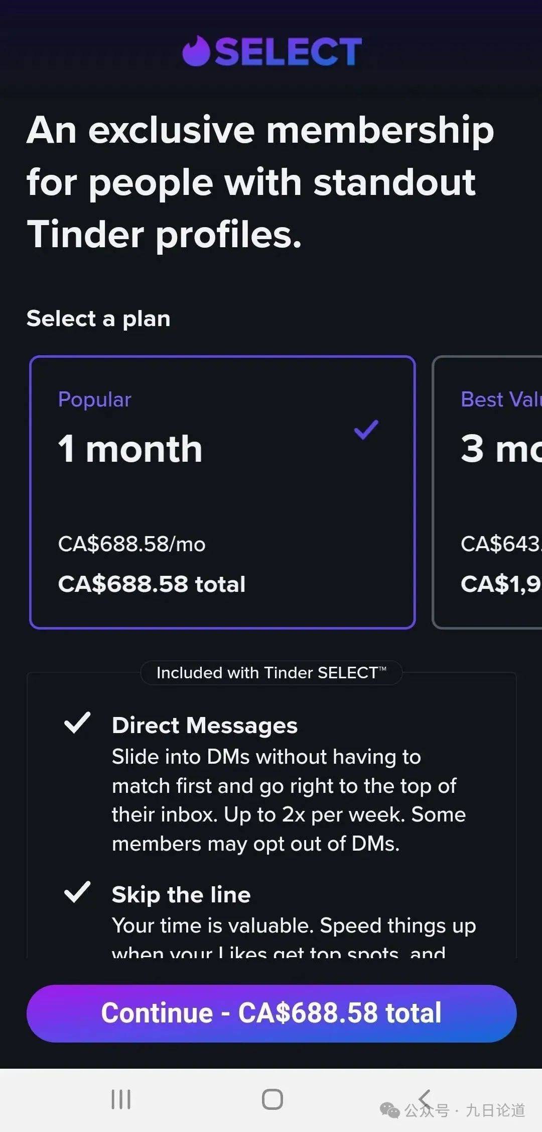你可以将 Tinder SELECT 会员资格与 Tinder Plus®、Gold™ 或 Platinum™ 订阅套餐叠加使用,尽享非一般的 Tinder 体验。划重点!你可以叠加使用!什么意思?明摆着的Crossselling,意思就是Select并没有TInder Plus或者Platnium的任何功能~你要开通其他功能,需要另外购买~ 当我们通过审核后,我们可以看到这样的订阅页面: ![]() 所以,Tinder并不是简单地加入一个可售的新会员服务。盲目加一个订阅选项会让人觉得很愚蠢,这世界并不缺乏能付得起499美金/月的用户。如果对外开放了,这个会员服务就会变得让人诟病。所以,Tinder通过审核制让用户把注意力聚焦到“稀有”、“社区认可”这个层面,而不是“销售”。 所以,即使整个大浪褪去,Tinder在整个约会软件的市场占有率依然遥遥领先。流量的红利是没有了,现在的APP拼的或许真不再是“获客”,因为怎么获客已经是公开透明的事情,现在的产品在APP整个行业步入夕阳的时候,拼的就是产品和销售能力。 文章来源:“九日论道”,未经允许不得转载。 文章代表作者观点,版权归原作者所有,热传平台仅提供信息存储空间服务。 |