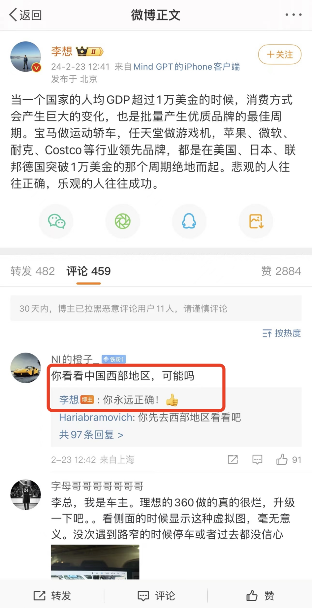 文 | 谢泽锋 编辑 | 杨旭然 来源 | 巨潮WAVE 2023年的中国车市,产销首破3000万台,新能源汽车爆卖949.5万,渗透率逼近32%。 惨烈绞杀、无限内卷之下,新能源车企冷暖不同。高合、威马跌入冰窖,蔚来仍在巨亏,但理想已经大赚上岸。 理想在过去一年斩获了新能源赛道诸多里程碑式的头衔:中国第一家年营收突破千亿元的新势力车企,30万元以上新能源汽车销量冠军,全球第三家盈利的新能源车企,年度盈利破百亿,一举填平过去五年的亏损…… 财报发布后,理想汽车美股大涨18.79%,港股更是暴涨25%,一日之内市值增长740亿港元,相当于“一天涨了一个小鹏”。 而比李想入局更早的李斌,日子则要难得多——蔚来汽车至今没有扭转亏损的迹象。 要知道理想仅凭借三款“套娃奶爸SUV”, 就在国内新势力榜单中霸榜了整整一年,甚至于被吐槽到“烂大街”的程度。而蔚来的年度销量还不到理想的一半。 悲喜不同的背后是各自定位和战略的分歧。理想均为30万以上车型,产品侧重家庭使用场景,且选用增程式,更多聚焦一线城市之外的“新中产”;而蔚来主攻一二线城市精英,客群特征是格调小资,对生活品质有着较高的追求。 分析两家车企的目标客群可以发现,理想走的是下沉市场里新近崛起的新中产路线,将车卖给那些注重家庭生活,不太在意驾驶操控体验的客户,他们财大气粗,对汽车品质和设计更容易满足,也造就了理想超高的盈利能力;而蔚来所聚焦的城市精英(可以称之为老中产)品味精致,推崇海外品牌,更喜欢挑剔和对比。如今他们正在被城市高房价、失业危机所拖累,消费能力下滑,蔚来的成绩也随之受到一定影响。 可以说,正是客群的不同选择,造成了两家车企业绩的天壤之别。 01.踏入不同的河流 截然不同的客群。2020年6月6日,何小鹏发布了一条微博。配图中,李斌的手搭在李想和何小鹏的肩头,就像兄弟一样坐在一起,自嘲道:“三个苦逼,在忆苦思变”。 彼时特斯拉风头正盛,“蔚小理”罕见地同仇敌忾,被网友戏称为“三英战特斯拉”。但此后,由于掌舵者截然不同的成长历程、性格及创业理念,三家企业采取了不同的发展战略。尤其是理想和蔚来,踏入了完全不同的两条河流。 在目标客户的选择上,双方分歧尤为迥异。汽车之家研究院的一篇调研非常形象,报告中指出,理想的典型用户是“小城奶爸”,他们是下沉市场里崛起的新中产,家庭收入在40万元/年以上,并不太追求彰显个性,对驾驶操控体验也没有太高的要求。 他们并非传统意义上的城市贵族,比如这位贵阳的理想车主,只有大专学历,平时做五金生意,家里有两个孩子,买车时他更看重空间,行驶里程,以及安全性。 ![]() ![]() 图源:汽车之家研究院 相反,蔚来的用户则是“城市精英”,他们普遍有着光鲜的高学历,有不错的工作和高薪酬,注重生活品质,看重家庭生活以及个人修养。蔚来也会以此为傲,每当俞敏洪、胡彦斌、李稻葵等各行精英前来提车的时候,销售们都会着重宣传一波。 Sinomonitor的调查更加细致,发现蔚来的车主中有很多女性,她们“喜欢健身撸铁、享受美食、泡咖啡厅、摄影、看展,性格偏内敛和稳重,乐于享受静谧的有品位的生活。” ![]() 来源:sinomonitor 这些群体并不差钱,但通常对产品更加挑剔,且经济环境影响了其消费信心。相对应的,下沉市场的新中产们往往“财大气粗”,出手阔绰,重视实用,对于产品没那么挑剔。 蔚来堪称汽车界的海底捞,在车圈,蔚来以服务著称,譬如1.2万元的“服务无忧”权益包,涵盖了保险代办、代理赔、维修、保养、洗车等;车辆维修和保养期间,还贴心地提供代步车;甚至还有喂猫、遛狗、接孩子、辅导作业等“特殊服务”。每年的NIO DAY,参会车主的费用都由蔚来买单。李斌本人在车主群里发红包,和用户同桌吃饭,最夸张的是,他居然还曾背着一个车主做游戏…… 但即便如此,用户是否真正买帐仍是个问号。例如新款ES6发布后,已购买了ES7的车主就以采用部分同平台的配件,而新车价格更划算为由,要求蔚来进行补偿。甚至当面“怒怼”李斌:“我们并不熟,我们这次是来谈判的,不是来谈话的。” 蔚来无意间塑造了用户的的心态,但销量还需努力。即便去年6月因降价销量短暂上冲到2万辆/月后,9-12月的交付量又回到2万辆以下。 ![]() 2023年,两家企业的销量均在增长,但无论是绝对量还是增量,蔚来都要逊色许多。蔚来年度交付160038辆汽车,同比增长30.7%;而理想共交付376030辆,同比大增182.2%。 来到2024年,李想更是喊出了冲击80万辆,挑战宝马中国豪华车品牌冠军宝座的豪言壮语。而另一边的蔚来,还在靠裁员来降低成本,提升效率。整体上看,李斌的雄心仍在,蔚来的产品力也在不断增强,但他的目标客群却显得有些跟不上。 03.业绩和资本表现差异巨大 截然不同的资本表现。美股大涨之后,理想汽车港股更是一日暴涨25.5%,距离历史新高仅一步之遥。 理想2023年的表现堪称历史最佳,甚至超出了几乎所有分析师的预期,2023年公司净利润118.1亿元,一把抹平了过去5年的亏损。 车辆销售毛利率是观察新能源车企的“灵魂指标”,2023年四季度,理想卖车业务毛利率上升到22.7%,全年车辆毛利率达到21.5%的历史高位。 ![]() 李想曾说,“理想汽车作为智能电动车企业,20%的毛利率是企业健康发展的门槛。”可见,20%的盈利指标在其眼中只是健康,并未到完美的程度。 对比来看,比亚迪