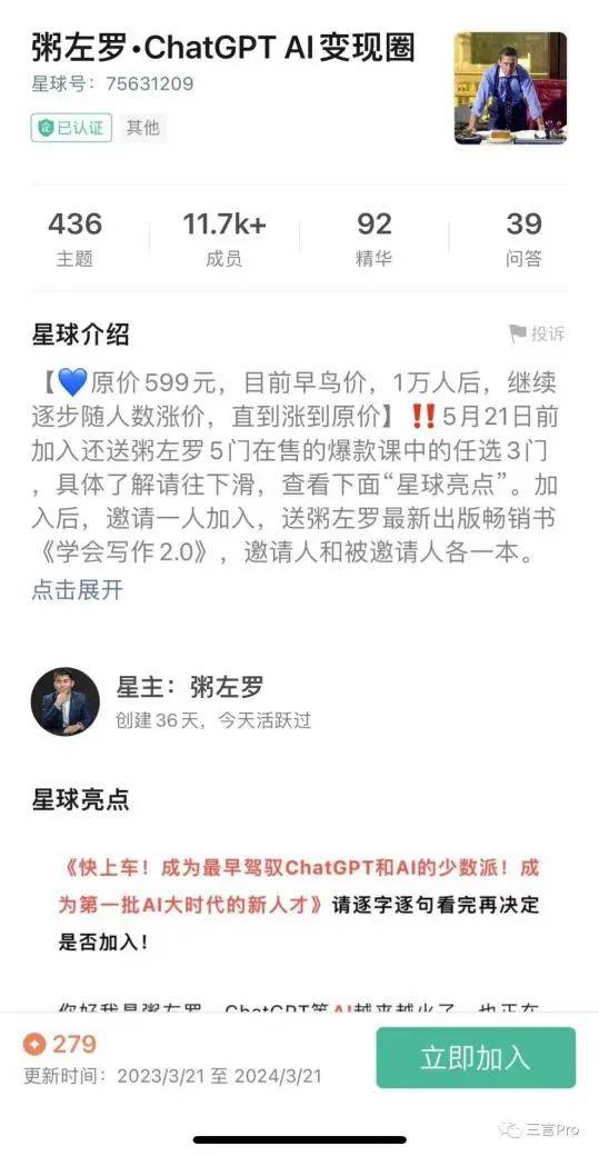 作者 | 铁观音 编辑 | 张知白 设计 | 晏谈梦洁 这几天,被网友戏称为“AI圈子里唯一一个可以和奥特曼(OpenAI 的 CEO)平起平坐的华人大神”李一舟又一次登上风口浪尖。 ![]() 图源:网络 事情的经过可以概括为:Sora 还在内测,国内连影都见不着,他就靠着教别人怎么用 Sora 赚了三千多万! 紧接着,此人就因为被多人投诉而遭到平台封禁。2 月 22 日午间,李一舟的微信小程序“一舟一课”由于违反《即时通信工具公众信息服务发展管理暂行规定》,已暂停服务。运营社观察到,到目前为止,李一舟的人工智能课在微信视频号橱窗仍显示为下架状态。 不明真相的吃瓜群众们不免好奇:李一舟卖个课,怎么就被封了? 其实,李一舟被封的背后,是整个“AI卖课”行业长期乱象频出。虚造人设、拉人头分销、强逼单等等行为让人瞠目结舌。 今天,运营社就带大家扒一扒李一舟被封背后的“AI卖课”乱象。以及,探讨 AI 卖课还是一门可做的生意么吗? 01、Sora火了,卖课的赚疯了 对于科技圈来说,二月份比年夜饭还要重磅的事情,无疑是 Sora。 北京时间 2 月 16 日凌晨,Chat GPT 的母公司 OpenAI 宣布推出全新人工智能视频模型“Sora”,再次引发行业地震。 通过文本指令,Sora 可直接输出 60 秒短视频,包含高度细致背景、多角度镜头、多个角色。这意味着,或许每个使用它的普通人都可能成为导演。 这头,打工人们还没从 GPT 的焦虑缓过来,又卷入了更大的焦虑里。更有甚者直言,待 Sora 应用成熟之时,一大批影视行业打工人都得卷铺盖滚蛋了,特效公司也该倒闭了。 另一头,有人因为闻到焦虑的气味而兴奋——李一舟趁虚而入,成为这场游戏里第一批吃肉的玩家。 前几年,借助清华的光环,李一舟在各个平台已经有了百万级的粉丝积累,算得上知识付费领域的老网红,不过真正让他红到出圈的,还是 AI。 来看看他为了直播带货给自己贴的标签:清华大学博士、三家科技公司创始人、融资数千万、职业经理人、擅长解决 AI 人工智能、商业模式、知识 IP 和流量问题。 乍一看,履历金光闪闪,不知道的还以为此人真是 AI 大神。 但网友口中的他是这样的:忽悠人、割韭菜......奥特曼看了都得无语:敢情一个卖课的,居然可以和搞研发的相提并论。 “卖课的”李一舟赚了多少? 数据显示,截至相关课程下架,李一舟最新推出的 199 元 AI 课程包销量 16.2 万,共计 3223.8 万元销售额。 这还只是微信平台上的收入。往前细扒,2023 年,李一舟可以说是赚得盆钵满盈,在抖音上也没少赚。 飞瓜数据显示,李一舟 2023 年一共直播了 476 场,直播客单价 200—300 元,直播销量为 10 万—25 万元,直播销售额在 2500 万— 5000 万元。 另据投中网报道,一位资深 MCN 创业者手中的某份较早数据显示,仅三年时间,李一舟卖课收入达到了 1.75 亿元。 其中,《每个人的人工智能课》收入 2786 万元,单价 2980 元的《一舟一课》收入为 1.49 亿元。 值得一提的是,这还是大概半年前的数据,不包括“一舟智能”会员等产品收入。更不用提,以卖课作为主要商业模式,李一舟也不必像 AI 企业那样投入巨额研发成本,在成本支出上就跑赢了一众企业。 无论五千万还是一个亿,板上钉钉的是,在 AI 大多数商业模式还没实现盈利的情况下,李一舟的利润已经比大多数 AI 创业公司都高了。李一舟不是 AI 巨头,但一定是 AI 领域赚钱的头子。 消费者这端却存在诸多不满,引发争议。 运营社向一位购买过李一舟 AI课程的用户了解情况时,对方表示:“我买了 199 的课,结果发现那些 AI 工具都是免费的,只是包装拿出来卖。”他告诉运营社,意识到自己“被坑了”之后就申请退课,不过李一舟的售后团队至今无人理会。 据了解,售价为 199 元的《每个人的人工智能课》课程介绍中提到,支付 7 日内,学习时长小于 10 分钟,即可申请全额退款。然而不少用户在冲动消费后,申请退款却失败了;通过抖音的小程序平台使用“联系客服”功能时,留下的号码也已暂停服务。 还有报道称,网友在社群里分享了“一舟模式”营销套路:先搞 199 元忽悠,然后拉群开 3 天课,让买 1980 培训课,这是第一期,第二期 3980 起步,说了一句“不买课”,立马就被踢出了群。 课程质量是第一道红线。消费者付出真金白银的成本却无法享受基本的服务,抛开虚假宣传不谈,李一舟此举无疑侵犯了消费者权益,“翻车”属实不意外。 02、AI 卖课,能有多野? 靠着 AI 卖课致富的,不止李一舟。每当新的技术出现,培训机构总是最先下场。 在 Sora 问世前,近一年来,随着各类 GPT、MidJourney 等各类 AI 工具的兴起,互联网上早已掀起一股 AI 卖课的热潮。一如当初区块链、元宇宙兴起时,市面上的培训班就多如牛毛。 运营社了解到,目前靠 AI 卖课吸金的模式主要分为两种:直播带货型和私域变现型。 1)直播带货,玩转公域流量 首先说说直播带货型,李一舟就是其中的典型代表——售价 199 元的 AI 课程,李一舟活活做到了千万级营收。 2023 年,ChatGPT 问世后,李一舟就直播卖起了 AI 课程。Sora 爆火后,李一舟更是及时发布了标题为《Sora 背后的中美博弈》的视频。他表示,AGI(人工通用智能)发展本来需要 200 年,因为 Open AI 发明的 ChatGPT 让这个速度提升到 20 年,到现在的 Sora,让其变成了 3-5 年,甚至 1 年。 这个视频为后续的直播卖课起到了重要的预热作用。在李一舟的概念里,学会 AI 不仅事关个人职业发展,更是“能不能