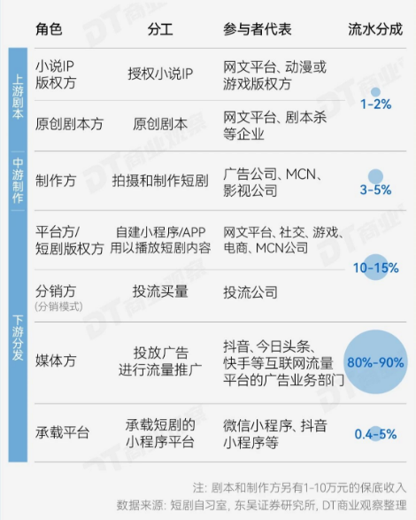 来源:果集 你会花钱看短剧吗? 公开数据,春节期间,短剧界异军突起,从万众瞩目的“电影春节档”中硬生生分走了8亿市场份额的大蛋糕! 咪蒙厂牌“听花岛”的作品《我在八零年代当后妈》更是突破圈层,公开数据,它创造了拍摄仅耗时10天、后期投入约8万元、上线当日充值超2000万元的短剧造富神话。 兜兜转转,互联网赚钱的还是那些人。在这波短剧热潮中,到底谁是最大赢家? 01 咪蒙爆款短剧炼成记:情绪为王+营销开挂 兜兜转转,互联网赚钱的还是那些人。 一个寒假,曾经的公众号流量TOP咪蒙,靠着两部短剧又杀回来了。 咪蒙最大的能力就是拿捏大众情绪的能力,通过紧跟社会热点、强化角色对立和情节冲突,这在她的作品里可见一斑。 ![]() ![]() 图源丨飞瓜数据 《我在八零年代当后妈》是一部典型的女频爽文,穿越话题,又是轻度打脸文(偏轻松幽默),叠加演员营销(明星脸、演员黑红营销),剧中把邻里间的各种矛盾冲突悉数呈现,并逐一化解。 《裴总每天都想父凭子贵》,故事巧妙地连接了豪门与贫女两个极端世界,主角设定新颖有趣:一方是假装贫穷实则富可敌国的总裁,另一方则是心怀善意、略带吹牛色彩的普通女子,让每一集都充满了强烈的戏剧冲突和高潮迭起的看点。 可以说,无论是农村还是城市题材,咪蒙又一次证明了其团队的操盘运作能力。 据垂媒娱乐资本论估算,咪蒙寒假期间发布的两部剧(《八零后妈》《父凭子贵》)充值已累计过亿。 短剧业内人士透露,咪蒙的短剧厂牌听花岛,即便在业内看来也是一家相对神秘的公司。团队规模并不大,有坐班编剧,同时也对外收稿。 短剧的承制方合作模式,目前主要分为四种:平台全投、承制全投、双方对投、制作出品。实力较强的制作方通常会选择由自己承担剧本和制作的费用,后续的分成大概在6%左右。 ![]() 图源丨DataEye短剧观察 咪蒙团队近日发布的两部作品就是与掌玩、点众合作的,后者均为短剧市场头部玩家,传言均是咪蒙指定合作方。 掌玩是一家新锐短剧制作公司,在2021年开设游戏业务,2022年入局短剧,其与阅文、点众等小说平台合作紧密。 掌玩此前耕耘男频,但在形成女频爽剧的一套打法后,水花才越来越大,去年下半年开始成为抖音短剧周榜常客。 《八零后妈》并不是掌玩网络2024年推出的第一部爆款。 公开数据显示,掌玩网络和点众联合出品的《裴总每天都想父凭子贵》《如此神秘的她》《厉总,你找错夫人了》等都是长时间在短剧热力值“霸榜”的剧集。 2023年下半年爆火之后,竖屏短剧正式走入大众视野,“播出8天收入破亿”“投流手月入20万”等业内财富故事络绎不绝。 从直播带货转向竖屏短剧,从横店变“竖店”,各行各业对于这个满地黄金的领域虎视眈眈。 然而监管大幅收紧、竞争水位全方位加深,市场竞争格局从无序逐步转向深度竞争。 销售轻松破亿,流量破十亿,离不开出品方“争议破圈营销+全平台漫灌式投流”这一组合拳。 掌玩在制作短剧时,注重将原著IP的“大饼”流量、轻松愉快的剧情(如《我在八零年代当后妈》中“无虐点、智斗极品亲戚、大女主经营”等爽点)与高颜值主演、有年代感的服化道相结合,以提高作品的竞争力。 营销方面,掌玩善于利用剧外争议性话题吸引关注,例如通过明星脸、主演cp绯闻或黑红营销等方式,有效提升作品曝光度和观众关注度。 对于短剧产品来说,除了优质内容之外,掌玩还看重巧妙的素材投放和大手笔的投流策略,运用多渠道发行策略,实现受众面的扩大和风险分散。 据了解,《八零后妈》一共82集,平均一集约2分钟,全长相当于一部电影,目前在抖音、微信、各短剧App和快应用上进行投放。不同平台的价格各不相同,看完这部剧,花费的价格在9.9元-99元不等。 ![]() 图源丨截图 其中,快应用以其高达77.73%的比重成为最主要的发行和投流阵地,而投放预算的主要流向则转向了巨量/千川广告平台。 与此同时,掌玩与两大关键合作伙伴——繁花剧场(隶属于北京点众快看)和趣看剧场(由中广电传媒运营)保持着紧密的合作关系。 这两家发行方在投放策略上各有侧重:繁花剧场主要负责在巨量/千川平台上进行大规模投入,趣看剧场则主要关注腾讯广告的投放。这样的合作模式不仅助力掌玩成功拓宽了受众覆盖范围,还在一定程度上降低了单一渠道风险。 而在具体的投流策略上,掌玩独树一帜地采用了“海量素材漫灌法”。 据公开数据显示,在剧集上线首周,掌玩便投放了超过7000条各类素材,这一做法明显区别于行业内普遍采用的少量素材集中投放的方式,旨在通过多样化的推广内容最大程度吸引并黏合不同类型的观众群体。 此外,随着该剧的爆火,演员的薪酬也水涨船高。据公开资料,演员日薪已经涨到了原来的3-5倍。 也难怪有人调侃,“土味短剧,越土越火!” 02 版权、流量与商业模式,谁是最大赢家? 据艾媒咨询发布的《2023年-2024年中国微短剧市场研究报告》,2023年中国网络微短剧市场规模高达373.9亿元,同比增长267.65%,而同一年中国电影市场的总票房也才不到550亿元。 咪蒙爆火,但绝不是短剧里最赚钱的,谁是短剧里最赚钱的? ![]() 图源丨DT商业观察 一般来说,短剧的产业链主要包括以下几个环节: