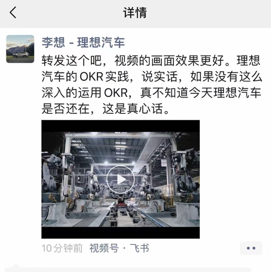 来源:光子星球 开年后的李想,春风马蹄疾。 几天前,理想汽车发布的2023年年报显示,公司全年实现营收1200亿元,成为国内首家营收破千亿的新势力车企。3月1日,理想春季发布会上,发布了首款纯电MPV车型MEGA。此外,李想还提到,未来将投入60亿元,建设超过5000个直营5C超充站。 ![]() 理想汽车在不到9年时间内,从草创到领先,从亏损到盈利,从增程切换到“双能战略”,完成这一系列变化并非偶然。 李想曾在社交媒体上罗列了衡量一家企业好坏的三个维度,分别是战略、组织、人才,其中战略聚焦带来高增长,理性组织提供高效率,人才成长带来高回报。 对于离散制造的车企而言,建立理性组织极其困难,为此,理想汽车找到的新方法OKR,以及一套与之匹配的协同工具。 理想成功在哪里? 2024年一开始,比亚迪便再度打响了价格战的第一枪。 过去一年价格战下,传统车企借助产业链优势不断压缩新势力的毛利空间,尽管新势力在产业链上存在短板,但高效率使之能有一战之力。理想汽车财报显示2023年全年毛利为22.2%,高于特斯拉。毛利直接反映效率,而理想汽车的高效离不开其对生产力结构的重建。 在模块化组织结构下,产品研发、供应制造、销售服务等环节之间的高效协同,几乎是阻碍所有企业跑起来的核心因素。具体表现在语言、目标、信息三者无法在企业内部自由流动。 信息流通不畅是最主要的病灶。例如推进一个新的芯片项目,至少涉及到主机厂、Tier1、代理商以及原厂四方。走向专精与垂直化的部门与跨域、跨界团队协作,每一家产业链上的企业都会存在广泛而具体的协同需求。 小到改一个前车灯尺寸,还得联络外饰、尺寸、质量以及供应商等十多个团队商量,花上几个月时间才能有个结果。 除了信息流动不畅,语言与目标不一致同样在车企内部屡有发生。一位刚进入车企的年轻人,往往听不懂各种行业专用术语或者“黑话”,很难迅速融入组织。当目标、信息无法在各部门间自由流动时,则意味着企业要想协同,不得不花费资金或者时间成本。 事实上,新势力掌门人大多意识到了协同的重要性。小鹏汽车创始人何小鹏曾说,一部电梯如果大家都要等一分钟才能上的话,那公司就会浪费很多的成本。 李想同样意识到,企业每个环节必须环环相扣,才能实现极致效率。 他此前在社交媒体上提到,营销做得差,是对研发团队最大的伤害;供应做得差,是对研发团队和营销团队最大的伤害;三个都差,是管理团队对员工最大的伤害。研发、营销、供应,代表了价值的创造、价值的沟通、价值的交付,三者是命运共同体,赢得用户的命运共同体。 ![]() 无论是产研协同,还是产供协同,实际运作过程中仍然存在大量“堵点”,任何一个环节阻塞将直接拖累整体效率。 例如产供协同中,为了避免缺料,确保正常交付,首先就需要进行数据统计。然而,所有数据散落在不同部门与各自系统中,统计难度极为复杂,即便完成统计也无法动态反馈。于是需要统一数据口径,并能提供即时反馈的协同工具。 一部分车企,如理想汽车开始借助飞书这类协同工具,自动实现缺料预警,让物料信息即时反馈。 另一个场景是审批,传统情况下遇到问题需要层层问、层层审批,效率低下。飞书针对理想车间工单巡检的具体方案,通过轻量化低代码平台,把线上巡检可视化。如今理想汽车各个系统之间都通过API接口打通,并将业务系统之间连接起来。 这只是协同工具解决目标对齐的局部,更重要的是一套建立在协同工具上的“理想工作法”。 “理想工作法” 李想在公开情况下从不吝啬分享理想汽车的管理实践。 事实上,理想汽车的高效生产力背后,是运用协同工具打造了一套“理想工作法”。所谓“理想工作法”指的是其借助协同工具,实现语言、目标共识、信息透明的统一,从而确保团队成员效率最大化,继而提升企业效率。 先说语言,新势力车企员工往往来源复杂,汽车制造、互联网、科技、软硬件等都有自己的话语体系,彼此间的沟通问题尤为突出。 对于刚入行的新人来说,看到大量缩写的字词时经常不知所云。某车企员工提到,由于自己不是汽车制造出身,在沟通时往往存在语言上的阻隔。蔚小理上飞书后,企业百科沉淀了大量专业术语,员工遇到不懂的词汇,不必专门搜索,只需点击词组,就会呈现相应解释。 统一语言只是理想工作法的第一步,而统一目标共识更为重要。大众汽车创造了制造模块化之后,车企协同变成了一件极难的事情。为了解决这一病灶,李想引入了OKR工作法。 李想曾说过,“如果没有深入运营OKR系统,不知道今天理想汽车是否还在。” ![]() OKR是一个有效提升企业组织能力的方法,可惜大部分企业引入这套管理方法时往往忽略了与之配套的工具,并未用好OKR。 理想汽车曾自研OKR系统,可是在UI展现上遇到大问题,“内部既有月度OKR,又有年度OKR,都呈现在一个界面中,不利于消化信息。”后续跟进也缺乏相应的功能,比如添加富文本。后来看到飞书解决了这一问题,便果断放弃了自研OKR系统。一位理想人士提到“从制定、对齐到跟进,从员工到落地场景,自研工具没有将OKR的效能提升到最大值,没有在团队层面跟进OKR。” 传统观点认为,飞书这类第三方产品,充其量只能为企业提供通用性解决方案。不过因为高频的共创,第三方办公协同平台与企业产生了良性互动——理想在场景中