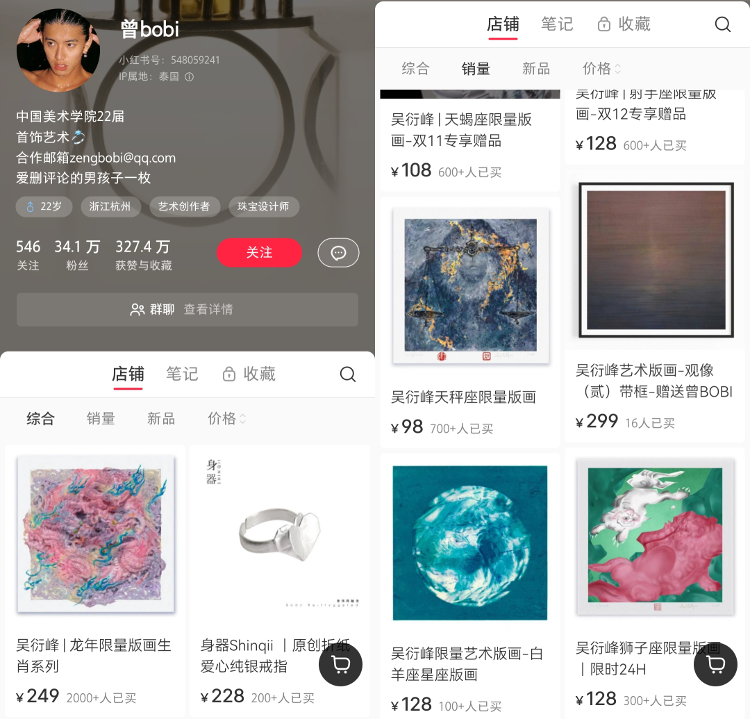 来源:卡思数据 “你有这么高速运转的机械进入中国,记住我给出的原理。” “黄龙江一派全都带蓝牙,黄龙江我告诉你,在阴间是那个化名。” 春节期间,“黄龙江文学”意外走红互联网,这段掺杂着大量高级专业名词、又宛如乱码的语句一跃成为新晋抽象顶流,并迅速点燃了用户的玩梗热情。在大量二创作品中,全网粉丝超百万的艺术博主@曾bobi 却惨遭“翻车”。 事情起源于他于2月更新的一则作品《假如美院人看黄龙江全部带蓝牙?并画下来!》。以“黄龙江文学”破碎的语句为灵感,曾bobi和两位朋友合力作画,在一番激情涂抹后,一幅元素混搭、颇具魔幻赛博风格的巨作就呈现在用户面前。在抖音,这支作品收获了89万次点赞,小红书则有着21万次点赞。 ![]() 图源:@曾bobi 视频《假如美院人看黄龙江全部带蓝牙?》 但很快,这幅巨作就陷入了争议的漩涡。有专业油画人从笔触、方位、颜料等多方面指出图中蹊跷之处,例如手脚处出现了明显的作图错误、画画前两块拼接木板都没有固定、画面质感和使用的丙烯颜料对不上等等,质疑该作为为AI作画。舆论迅速发酵,连锁反应之下,@曾bobi 过往作品也被发现有使用AI的痕迹,更有原作者出面实锤,“不要融我的作品”。 2月23日,曾bobi发布视频,承认自己的确在视频创作中使用了AI,没有如实标明,“甚至使用自媒体的表现手法,让大家以为这是手绘”,并展示了整张图AI制作的全流程。对于使用AI作画的原因,他表示由于自己和朋友有着“超负荷的手绘任务”,因此一部分难以完成的工作量不得不使用AI辅助。 ![]() 图源:@曾bobi 回应视频 当隔壁江寻千以直播雕冰龙反驳质疑时,@曾bobi 的回应多少有些避重就轻且缺乏诚意——这段道歉还被用户扒出存在大量的英语语法和连接词,疑似通过chatgpt生成。 事实上,随着ChatGPT、Stable Diffusion等大模型产品的陆续发布,AI协同创作已不是一件新鲜事。透过@曾bobi事件,我们应当讨论的是,当AI风口已至,创作者应如何驾驭AI,而不是被AI吞噬? 艺术博主,因AI翻车 @曾bobi是一名毕业于中国美术学院的艺术博主,本科专业为珠宝设计,全网粉丝超过百万,主营阵地包括B站、抖音与小红书。在内容平台,@曾bobi 打造的是高势能人设,“美院学子”既是他的身份,也是他的标签,带来了大量的话题度。 以@曾bobi 的小红书账号为例,首条笔记更新于2021年9月,前期内容主要为珠宝设计,@曾bobi在镜头前一一展示自己设计的戒指与耳饰,间或穿插着生活vlog。2022年11月,国内首档美术综艺《会画少年的天空》上线,曾bobi邀请了两位朋友——版画系吴衍峰与西美的马老师——进行刻薄点评。 由此,账号内容的丰富度进一步提升,三人形成了一种固定搭配,时常一同点评美术综艺、接力作画、野外写生以及刻薄互评对方的写生作品,比如“中国美院学生互画自画像,居然画成了……”“一人画十秒,最后能画成什么样?”这类网感十足的内容迅速让账号升温,积累了35万粉丝。 ![]() 图源:@曾bobi 视频 虽然“黄龙江”巨作称得上@曾bobi 翻车的开端,但使用AI绘画在他们作品中早有前例可循。 2024年,三人奔赴贵州凯里,开启“每个城市画30张”挑战,为贵州的风土人情作画,但在发布作品中,网友却发现所谓的速写不少都有AI作画的痕迹,最典型的如手指错误,画像中人物的手指不是交叠在一起,就是多出或缺少指头,显露出AI的破绽。此后,曾bobi还制作了一期视频,三人互称老师,“锐评”对方的“原创手绘”作品。 尝到AI绘画带来的效率以及流量“甜头”的曾bobi,开始在作品中频繁利用AI。在一期“当美术生坐火车回家过年”视频中,类似的问题再度上演,视频中大部分作品都像是直接由照片转AI,画面风格则被用户指出融了国美周刚教授的水彩画。 ![]() 图源:@曾bobi 视频 除此之外,出现在@曾bobi 账号中的画作大都没有详细的绘画过程,作品呈现类似于“一秒变装”——从大面积铺色、小范围特写精修到成品,堪称断崖式跨越。 信任的崩塌如同被推倒的多米诺骨牌,@曾bobi的过往作品受到了更为严格的审视,由此形成了一连串连锁反应。此前由吴衍峰创作的十二星座版画与龙年版面,被指出抄袭和融图、描图的痕迹。一张水墨风的盘龙,被原作者虢子楷亲自打假“请不要熔炼我的龙母”;射手座版画则疑似AI跑图,融合了多个油画名作。 虽然曾bobi在回应视频中,“用人头担保”朋友吴衍峰的十二星座与龙年版画都是他在工作室和学校独立完成的,但用户的质疑声仍然一浪高过一浪。春节热度最高的小粉龙依旧被质疑AI跑图,理由包括龙身轮廓与山西浮雕蟠龙完全一致,但细节却模糊不清;吴衍峰创作的过程像是摆拍,有用户指出画中龙身体的方位与成品不一致,“画要收尾了调色板还是干干净净的”。 ![]() 图源:小红书笔记 更为危险的是,这些受到质疑的作品,@曾bobi与作画者吴衍峰都进行了变现。在小红书店铺,粉色蟠龙版画单价128元一张,两张价格249元,卖出了2380份,位列热销商品第一;98元的天秤座版画卖出超700份,价格分别标为108、128元的天蝎座、射手座均有着超600份的销量。目前,粉色蟠龙已在其店铺下架。 ![]() 图源:曾bobi小红书店铺 值得注意的是,在种草视频中,曾bobi还多次打着“版画”的旗号进行宣传,让粉丝误以为收到的是传统版画,实际上却是采用微喷技术的数码版画。后续有粉丝询问印刷技术,客服的回应也是“微喷