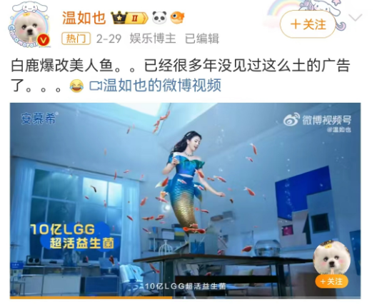 作者 | 杨阳 来源 | 顶尖广告 内娱都喜欢给明星贴标签,比如内娱普女,有人总结是:白鹿,杨紫,赵露思,虞书欣 ![]() ![]() 今天的主角就是白鹿,安慕希最近为代言人白鹿整了个美人鱼的创意。 ![]() 图源:安慕希官微 海报还算正常,该有的蓝色、海边、星空、美人鱼元素都有了。 ![]() 图源:安慕希官微 但当美人鱼动起来后,安慕希的广告就彻底翻车。白鹿被嘲把美人鱼爆改成“丑人鱼”,网友笑吐了。 ![]() ![]() 01 美人鱼怎么就变成丑人鱼?先戳视频看看。 白鹿化身办公室白领忙到手忙脚乱,闷了口安慕希酸奶后,瞳孔放大,仿佛能量爆棚。 ![]() 图源:安慕希视频号 这时候房间变成海洋世界,白鹿变成美人鱼,飘呀飘游啊游~ ![]() ![]() 图源:安慕希视频号 看完一大波人开始陷入沉默:没有女人味只有鱼腥味。 ![]() ![]() 就连粉丝都看不下去了。 ![]() 受伤不止是代言人和安慕希,还有金龙鱼、海飞丝,可能是拍的太不像酸奶广告。 ![]() 02 迷惑点一,创意的关联性很尬。 网友愣是没搞明白一件事,安慕希为什么要用美人鱼概念。 ![]() ![]() ![]() 创意不是天马行空,而是要为策略服务,让人对产品品牌产生更多关联性联想。 都知道安慕希是做酸奶的,跟美人鱼八杠子打不着关系。 如果愣是让我想个联系,我能想到的就是几个不正经的可能性。 首先强调“希腊”出身的品牌定位。 安慕希最初给自己定位就是“希腊酸奶”,名字来源于希腊的“Ambrosial”,据说产品也添加希腊雅典农业大学最新研制的菌种。 ![]() 图源:安慕希官微 西方美人鱼源自古希腊神话,是人身鱼尾面容美丽的女性。 不排除安慕希找“美人鱼”代言,突出自己的产品概念和品牌定位,总比大喊“我来自xx”强得多。 其次突出产品卖点。安慕希益生菌酸奶宣传的卖点是10亿LGG活力益生菌,减蔗糖更轻盈。 ![]() 图源:安慕希官微 这美人鱼最大的特点是什么?美美的游泳。 虽然这美人鱼向上游还挺费劲,看起来一点都不轻盈。 但品牌方可能想通过美人鱼概念,表现女主喝了安慕希酸奶后,活力变身更美丽模样,点题“活力”和“轻盈”。 最后还想表达“摸鱼”概念。 品牌方自己的推广文案里,就提到分身乏术想摸鱼,美人鱼四舍五入就是“摸鱼”,看起来也勉强能接受。 ![]() 图源:安慕希视频号 迷惑点二,广告画面拍得尬。 策划向安慕希和代言人捅了一刀,特效又补了一刀。 要么吐槽广告风格太土。 ![]() ![]() 要么吐槽美人鱼造型假。 ![]() ![]() 最大的问题是美人鱼腰部、尾巴过度不自然,鱼尾太短尾巴不够大。 简单来说就是:上半身美人下半身鱼,“美人”和“鱼”各管各的。 ![]() 图源:安慕希视频号 迷惑点三,就是还设计了甩尾的动作。 我也能理解特效,既然设计美人鱼的形象,光游还不够。 咱们尾巴不得甩两下,主打一个物尽其责,人尽其用。 ![]() 图源:安慕希视频号 只是琢磨了半天,也没整明白鱼尾甩掉桌上的电脑用意在哪里。 结果一甩尾巴动了身体不动,暴露身体尾巴不协调。 ![]() ![]() 创意和特效的双重翻车,网友开始怪到代言人身上。 搬出白鹿的气质和普女的言论,以此来说服“美人鱼”当然不好看。 ![]() 不过说到底这个广告说到底是品牌方的锅,创意是品牌方出的,造型是品牌方设计的,怪到代言人身上大可不必。 03 话说回来,白鹿被品牌方的造型坑惨也不是第一次。 之前花西子跟抖音直播合作,就把白鹿拍得一言难尽。 差点以为花西子在用《回家的诱惑》的方式打开白鹿。 一样的紫一样的花,巴不得把“霸道总裁爱上我”“花开富贵”的元素堆满海报。 ![]() 图源:花西子 一看还以为是什么狗血言情小说封面,虽说土到极致就是潮,虽然咱们叫花西子,但也不能随便大小花。 花西子把人拍土拍low了还不算啥,最离谱还是把人拍的性别不分。 李佳琦眉笔风波后,花西子请来奥运体操运动员丘索维金娜,拍了个《温婉中国妆》的广告。 差点以为是照着李佳琦画的,从妆容、发型到首饰,每一个都是跟“温婉”对着干。 ![]() 图源:@君君的旅行日记 关键是花西子还拍出“女装大佬”的画风,让人一度以为花西子是在反向输出审美。 花西子是真的疯了,好好一个外国运动员,非得强行让别人玩中国风。 再对比一下杭州丝绸品牌万事利,人家给丘妈拍的广告,那是拍出了体操运动员的灵动柔软,拍出高奢的质感。 ![]() 图源:万事利丝绸 同样是国货品牌,同样是杭州企业。 花西子镜头下的丘妈是一整个怪异,万事利视野下的丘妈是优雅有贵气。 04 说到白鹿,说到专出丑图的品牌,就不能再说美妆品牌MAC。 美妆圈流传着一个传说:没有一个中国代言人,能笑着看完自己的MAC广告,有点像自己又不敢认。 让人总是怀疑MAC的造型师,是不是跟品牌方有仇的。 尽整些阴间审美,尽用死亡角度来拍艺人,尽情把艺人往最丑里整。 吴磊被拍成人类高质量男性,锃光瓦亮头发紧贴头皮,欧式大粗眉,阳光少年变油腻大叔,只需要一个MAC。 ![]() 图源:@饭圈蔗糖 还有赵露思的海报,第一眼白雪公主里的皇后,第二眼蒙娜丽莎。 ![]() 图源:@八鹅吃瓜菌 建议把赵露思跟吴磊的海报放着一起看,你就会知道《星汉灿烂》“吴露可逃”的CP名,到底是哪来的。 张艺兴被拍成纸扎娃娃,跟泥塑一样,以为是哪个村儿跑出来的年画娃娃。 ![]() 图源:艾玛娱乐菌 再看看白鹿的mac广告,竟然是这个系列里唯一还能看的,不过也只能说是差强人意。 ![]() 图源
