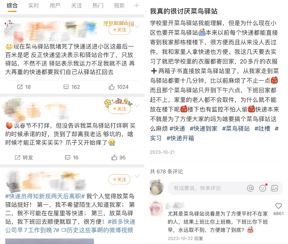 来源/ 锌刻度 撰文/ 李觐麟 编辑/ 陈邓新 排版/ Annalee “都3月5日了,怎么我的快递还是直接放在菜鸟驿站?”3月1日,《快递市场管理办法》(以下简称“快递新规”)正式生效后,有快递员因为加大的工作量而怨声载道,考虑转行,却也依旧有消费者没能拥有选择权。 快递抵达驿站后,系统自动发来的取件码仍然是多数消费者的唯一选择。政策的落地还需要时间,而横在快递员与消费者中间的菜鸟驿站似乎还在继续充当着“最后一公里”的终点站。 不过“快递新规”的出现迟早会推动市场的进步,一边是快递员在新规之下工作量加大、收入不见增加的生存压力,另一边是消费者维护自身消费权益的合理诉求,双方角色都有自己的立场。矛盾之下,横在中间的各家快递企业与驿站终会需要面对着更多审视,如何平衡服务好消费者与快递员之间的关系,变得至关重要。 “快递新规”的出现,是快递物流行业服务升级的必经之路,对于快递企业和驿站来说既是挑战,也是机遇。尽管眼下的矛盾焦点在末端的快递员与消费者身上,但说到底,还是需要企业拿出担当,回归本源,以更良性的经营方式来尊重市场,赢得市场。 新规之下:快递员想离职,消费者依然没有选择权 “快递新规”实行不到三天,快递员冯齐就萌生出了辞职的想法。“新规生效之前,我们快递员之间就讨论过,其实大多数都不太当回事,总觉得船到桥头自然直,但这两天真实行起来,就一个字:累!” 冯齐在重庆渝北区某片区送了两年快递,他所在的站点每天到货量在2500-3000件之间,5个快递员每天要送500-600个件,如果遇到618、双11这样的大促,派件量就更大。但从“快递新规”落地开始,这个速度就降下来了。 “之前很多人都习惯了把快递放在菜鸟驿站,所以留的地址不完整,而且电话号码也有很多都是错误的。但现在要求突然一改,我每天打电话和确认地址的时间都要花几个小时,遇到实在联系不上的,只能又带回站点,效率当然降低了。”冯齐对锌刻度表示派件量的下降会直接导致收入下降,他认为自己三月份的收入估计只有5000元左右。 与冯齐这样的“通达系”快递员不同,负责同一区域的京东快递员吴浩并没有觉得工作状态有什么变化。“我们一直都是要提前联系客户,看他选择送货上门还是放在快递柜,然后再进行相应服务的。所以新规出不出现,对我的工作都没什么影响。”吴浩还提到,“公司还会给快递员报销油费,也和运营商有合作关系,我们打电话既不用担心费用问题,也不担心会被系统识别成骚扰电话”。 不过吴浩也表示自己在网上看到了很多快递员打算转行,他们认为送快递本来就不算是什么铁饭碗,所以做不下去了大不了就换个工作。这与吴浩的想法相反,今年是吴浩成为京东快递小哥的第三年,因为公司的各项福利待遇和已经积累起来的稳定客源,吴浩表示如果不出意外的话,自己会在这里一直做下去。 不难看出,眼下不同快递公司的快递员正在面临着截然不同的情况,“通达系”快递员原本的工作方式与驿站高度依赖,“快递新规”的出现打乱了这一节奏,影响着工作强度和收入水平,但京东、顺丰快递员则由于一直以来的高服务标准而得以平稳过渡。 ![]() 有消费者依旧只收到取件通知 除了快递员以外,因“快递新规”而受到明显影响的则是处在消费链条末端的消费者。大学毕业后留在武汉工作的汪茜因为几次租房搬家的缘由,和不少菜鸟驿站打过交道,“快递新规”出台之后,她表示自己的诉求终于能得到满足了。 “能不能遇到一家负责任的菜鸟驿站,纯粹是靠运气。” 汪茜对锌刻度谈到,“我之前租房的地方入住率不太高,所以菜鸟驿站总是早早地关门,可以说开门时间和我这样的打工人时间完美重合,我下班之后去取快递不知道吃了多少次闭门羹。后来我要求快递不要给我放到菜鸟驿站,要么送上门,要么放到物业处,但菜鸟驿站的老板自己也承包了快递派送,所以还是长期给我放在菜鸟驿站,弄得我很麻烦。” ![]() 消费者对菜鸟驿站怨声载道 周醒也和菜鸟驿站有过几次不愉快的接触,他所在片区的菜鸟驿站虽然一直提供着上门派件的服务,但他却认为“还不如不送”。 “小区的菜鸟驿站只送从淘宝天猫购买的快递,据说他们的派件情况会直接影响店铺评分。有几次我不在家,所以让他们别送货上门,他们就让我帮忙同意送货上门,但实际不给我派送,之后我自己去驿站去取件。但后来我发现已经被出库却又没有送货上门的件都统一堆放在一个区域,我的快递有两次都被其他人拿错了,最终虽然也把快递找回来了,但整个过程却变得麻烦多了。”周醒认为,这样的上门服务不同于快递员的直线联系,出错率会大大提高,反而影响了体验感。 打开微博、小红书等社交平台可以看到,消费者对于菜鸟驿站的吐槽与汪茜、周醒类似,但又不止于此。“快递新规”的出台,让快递员、消费者、驿站之间存在着的矛盾无处遁形,亟需解决。 面对新规:什么才是快递企业赢下来的筹码? 京东武汉太和站点负责人从未没把送货上门当做是一件需要额外对待的事,因为五年来,这都是他基础工作的一部分。“我在的站点有20多名快递员,新规过后也没有听说有任何人想要离职,我们本来就会把每一个快递都送货上门。”该负责人表示。 “90后”京东快递员小颜在送货上门这项服务上也有着一套自己的经验,“