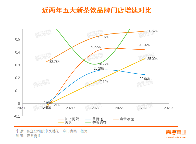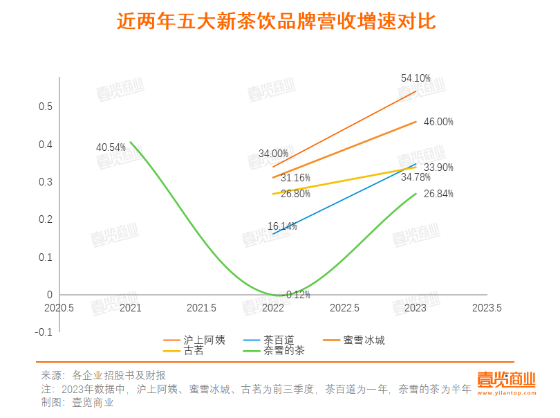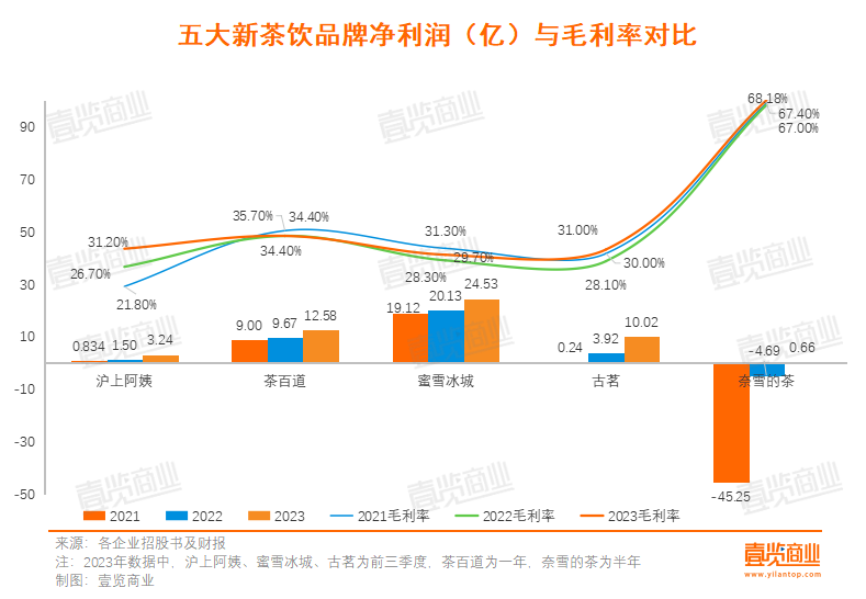 出品/壹览商业 作者/李彦 蒙嘉怡 编辑/木鱼 一般认为,一个行业如果涌现多家上市公司或者即将出现多家上市公司,那么这个行业发展趋于成熟,开始走向规范化和商业化,同时说明这个行业急需大量的资金。行业里企业间的竞争将开始从粗放变精细,经营效率、研发能力、资金储备都将会成为接下来竞争的关键。 当年快递行业就是如此,2012年顺丰上市,随后几年通达系、京东物流纷纷登陆资本市场,快递行业展开了一场科技提升效率的竞争。如今的新茶饮行业也要走到这一步了,自2021年奈雪的茶登录港交所后,2023年以来茶白道、蜜雪冰城、古茗、沪上阿姨等头部新茶饮品牌纷纷递交招股书,后面还有霸王茶姬、甜啦啦、茶颜悦色等玩家跃跃欲试,随时递表。那么,新茶饮行业到底发展如何,有何秘密,谁的发展最为良性,谁最急于上市,谁能在后续发展中更有优势。壹览商业拆解了这五家企业招股书,发现了一些东西。 上市门槛为40亿,蜜雪冰城最强 从整体看,新茶饮企业能够递交招股书的营收基本在40亿左右,也就是说这个行业上市门槛可能在40亿规模。其中,规模最大的茶饮企业为蜜雪冰城达到150亿,且还在保持每年30%以上的速度增长。其次是古茗,自2022年开始营收便超过了50亿,2023年前3季度营收额为55.71亿,几乎与茶百道一年的营收持平。 ![]() 与之相比,沪上阿姨的营收规模最小。从2022年数据来看,是唯一维持在20亿-30亿营收的企业,2023年三个季度的营收还不如奈雪的茶半年营收数目高,排除最头部的蜜雪冰城,古茗和茶百道的营收规模约为沪上阿姨的2倍。 ![]() 从营收增速看,整个行业规模虽然在不断增加,但增速在下滑。据艾媒咨询的数据,2022年新茶饮整体增速下降到了13.5%,2023年只有6.4%。五家企业,除了奈雪的茶营收在2022年大幅下降以外,其他茶饮企业年增速均在上涨,且绝大部分企业的营收增速超过了行业平均增速。其中,沪上阿姨,2021年到2022年,及2022年前三季度到2023年前三季度,沪上阿姨营收增长率分别为34.00%和54.1%。以营收增长率来看,沪上阿姨是前五大现制茶饮店品牌中增长最快的品牌。 ![]() 值得注意的是,奈雪的茶2021年、2022年连续两年增速不及平均值,2022年增速最低,为-0.12%。客单价下降是影响奈雪负增长的原因之一,另一个重要原因则是竞争激烈,门店顾客被分流2022年每间奈雪茶饮店日均订单量348.2单,相比2021年的416.7单,下降了近17%。 虽然奈雪的茶营收增速在2023年有所回升,不过与其他企业对比仍显颓势,连续两年“垫底”。除此以外,古茗的增速也显著放缓,增速排名被茶百道反超,后劲不足。门店网络的扩展能力,往往被认为是新茶饮取得成功的关键因素之一。 加盟仍是新茶饮的主流模式 五家新茶饮企业在2022年门店数量达到49833家,同比增长224.35%,翻了两番。 ![]() 壹览商业了解到,茶百道的加盟店一年新增约1500家;沪上阿姨加盟门店数量由2022年的5244家增至2023年的7245家。除了奈雪的茶,其他四家新茶饮企业加盟店占比均在99%以上。 ![]() 事实上,加盟更利于品牌发展。 首先,直营直面消费者,而加盟则面向加盟商,赚品牌授权、供应链、运营管理的钱。从蜜雪冰城披露的招股书中可以看到,它压根不是靠卖奶茶赚钱,而是通过卖给加盟商原材料,赚供应链的钱。 其次,在加盟模式下,企业的成本结构能够得到优化。相比直营事事费心,还不一定能盈利,加盟模式则是将成本与风险转移分摊到了加盟商之上,只要企业控制好节奏,基本可以实现“躺着赚钱”。 从成本来看,直营模式要付出更多的人力成本,加盟模式只需控制原材料成本。如奈雪的茶,虽然直营模式能够让其直接享受商品溢价,毛利一度接近70%,但直营模式需要付出更多人力成本和租金成本。相比之下,在供应链体系已经十分完备的情况下,蜜雪冰城只需支付原材料成本以及少量的销售费用,净利润轻松登顶。 从风险角度出发,加盟模式将运营风险转移到了加盟商上,增加了公司盈利的确定性。 ![]() 从门店扩张速度来看,2022年为茶饮企业高举高打的一年,蜜雪冰城门店增速超过50%,一年净增10405家门店;其次便是沪上阿姨,门店增速高达40%。 对于古茗而言,2023年才是其加速扩张的一年,门店数量增加到9001家,全年净增的门店是2022年净增门店的两倍多。就在这一年,长期盘踞于南方市场的古茗终于攻向北方。 值得一提的是,古茗至今未在北京、上海开店,且近80%的门店位于二线及以下市场。招股书显示,浙江、福建、江西、广东、湖北、江苏、湖南及安徽这八个省的加盟店为古茗贡献了近九成的GMV。可以明显看出,古茗的拓店布局依然谨慎性十足、区域性很强。 除此以外,奈雪的茶2023年增速超过70%,堪称“一骑绝尘”。这主要是由于奈雪的茶在2023年7月开放了加盟。 截至2024年2月,奈雪开业加盟门店超200家,平均每个月新增29家门店,这个速度超过了2022同期,成效显著。2月28日,奈雪公布了2024年加盟新政,单店投资预算降至58万元,2024年6月30日前完成签约的加盟店,还可享受单店6万元营销补贴。 奈雪长期扎根于一二线城市,门店数量占比一度超过90%。此次调整加盟政策,或许正是看到了诸如蜜雪冰城、古茗这类扎根下沉市场的企业业绩,不想落后对手太多。 加盟模式,成为新茶饮企业快速铺开规模的杀手锏。 不过,加盟模式对品牌方挺好,但对于加盟商可能就是一场风险投资。据了解,茶百道、