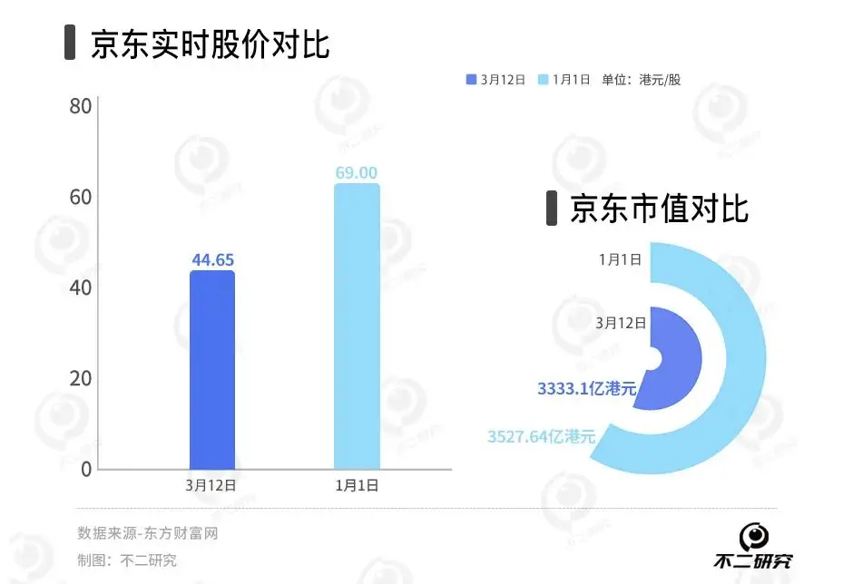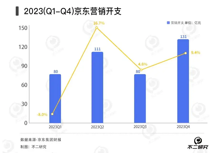 作者 | 若楠 熊生 排版 | Cathy 监制 | Yoda 出品 | 不二研究 “火拼低价”一年后,内忧外患的京东如何破局? 3月6日,京东集团(09618.HK,下称“京东”)发布2023年四季度及全年业绩。尽管其营收净利双增长,但业绩增长背后仍有隐忧。 「不二研究」据其最新年报发现:2023年,京东营收增速放缓至3.7%,核心业务经营利润率下滑至2.6%。目前,京东主要面临营收增速放缓、核心业务经营利润率下滑等问题,在「不二研究」看来,这主要是由于京东推出“百亿补贴”策略,还有对第三方商家的扶持政策,自营模式下的商品降价使其收入增速承压;与此同时,京东的电商业务不仅受到拼多多的低价冲击,其旗下本地零售业务的达达也面临美团和饿了么的竞争。 京东是一家自营式电商企业,旗下设有京东商城、京东金融、拍拍网、京东智能、O2O及海外事业部等。 截至3月12日港股收盘,京东集团报收98.55港元/股,对应市值3333.23亿港元(约折合人民币3056.11亿元);对比今年1月的市值高点3527.64亿港元,其市值已经蒸发194.41亿港元(约折合人民币178.25亿元)。 ![]() 「不二研究」据京东年报发现:2023年,京东总收入10847 亿元,同比增加3.7%;同期,归母净利润为242亿元,同比增长132.82%。 2021年11月的一篇旧文中(《三单季由盈转亏、下沉市场失利,京东的冬天也来了吗?》),我们聚焦于京东营收超市场预期,但仍面临增收不增利的困境。 时至今日,京东不仅面临营收增速放缓、核心业务经营利润率下滑等问题,且直面拼多多等互联网公司的低价冲击。 内忧外患营的京东,在电商“三国杀”的下半场如何破局?由此,「不二研究」更新了去年3月旧文的部分数据和图表,以下Enjoy: 3月6日,京东集团(09618.HK,下称“京东”)发布2023年四季度及全年业绩。 京东发布财报显示:其在2023Q4实现营收3061亿元,同比增长3.6%;但净利润亏损34亿元,同比增长11.8%。 财报发布当日,京东的美股股价上涨16.0%,当日报收24.91美元/股,市值一夜飙升至54亿美元。 在「不二研究」看来,尽管京东通过成本控制和削减开支使业绩增长,但低价策略尚未取得成效;在电商平台火拼低价的这一年里,京东该如何破局? 营收增速放缓 1998年,刘强东在中关村创办了京东公司,但早期仅为传统IT渠道商,未涉足电子商务领域。 2004年,京东开始涉足电子商务领域,在刘强东的带领下不断发展,2014年5月于美国纳斯达克成功上市,2020年6月又于香港上市。 2023年,创始人刘强东回归,京东开启调整之年。除了推出“京东百亿补贴”、“京东秒杀”等销售活动,还扶持“不收坑位费、不收达人佣金,就是更便宜”的京东采销直播。 据京东最新财报数据显示,其2023年实现总营收10847亿元,同比增长3.7%。2023年Q4的营收为3061亿元,同比增长3.6%。 从营收增速看,京东在2023年虽然实现了收入的同比增长,但增速明显放缓。2021-2022年,京东的营收增速分别为27.6%、9.9%,而2023年,其收入增幅仅为3.7%。 据财报数据显示,2023年Q4京东的归属净利润33.89亿元,同比增长11.8%,2023年,其归属净利润241.67亿元,同比增长132.8%。 ![]() 对于归母净利润的增长,京东归因于成本控制以及非经营性利润的增加。 据财报数据显示,2023年京东的营业成本为9250亿元,同比增加2.9%。在费用方面,2023年,京东的营销支出总量为401亿元,同比增长6.3%,而2021年-2022年,其营销开支分别为387亿元、378亿元。 ![]() 此外,非经营利润也是京东利润增加的一个重要因素。 由于利息收入的增加以及股权投资相关亏损的减少,2023年Q4京东的非经营利润达到17亿元,而2022年Q4则为亏损4亿元;全年来看,该项利润更是高达75亿元,远高于2022年的亏损16亿元。 在「不二研究」看来,尽管百亿补贴能为京东带来收入的增长,但高额的补贴及低价策略所产生的营销费用或将对净利润产生较大影响。 “低价策略”成效不显 2023年,京东除了推行低价策略,还将部分利润低的业务由1P转为3P模式。 由于京东以自营业务为主,走的是品质电商的路线,这在一定程度上限制了其推行低价策略的能力。为了改变这一现状,京东在过去一年中采取了各种措施来吸引第三方商家入驻,即“3P商家”。 为了拉拢第三方商家,京东给3P商家更公平的流量政策,让1P和3P“赛马”,谁的价格更低、商品选择更多,就可以获得更多的流量倾斜。 与此同时,京东进行了内部变革,先是精简组织层级,取消事业群层级,京东零售CEO直接领导事业部,精简后基层员工到CEO的层级只剩三层;后来更是让各个事业部由统一的品类负责人管理,不再区分自营和POP。 ![]() 京东集团CEO许冉在财报业绩会上表示,2023年,京东将加快推进平台生态和低价心智的建设。此外,京东还致力于拉动3P业务的GMV和广告收入增长。 然而,在财报中,京东并未披露3P业务的GMV增长情况。从收入来看,低价策略在一年内给京东带来的业绩变化并不明显,既没有使京东在2023年实现收入大幅增加,也没有扭转收入增速持续下滑的态势。 从平台及广告服务收入来看,京东京东发力3P,并没有带来预期的结果。 财报数据显示,京东2023年广告佣金收入847亿元,同比增长3.4%,而2022年该项业务的同比增速是13.7%。 对此,京东CFO单甦在这次财报电话会中解释称,广告收入的下降,与新商家免佣、部分品类主动降佣等策略有关,预计2024年第一季度回归增长。 ![]() 在「不二研究」看来,尽管京东的有效商家数、活跃商家数仍在加速增长,但低价策略尚未取