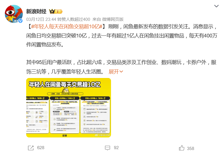作者:RBF视频组 编排:嘉欣 出品:零售商业财经 ID:Retail-Finance 只有你想不到的,没有年轻人在闲鱼做不到的。 最近一组数据十分引人注意,年轻人每天在闲鱼交易超10亿元。作为国内最大的二手交易平台,闲鱼早已成为年轻人的心头好了。在这里,每一件物品都有重新发光的机会。 ![]() 图源:微博截图 然而这只是开胃前菜!如今的闲鱼,早已不只是那个让每件物品游起来的平台了,而是钮钴禄闲鱼。一个为年轻人提供赚钱、省钱、小众爱好集合地的平台。 2023年,年轻人在闲鱼上一年平均赚了2723.5元。这可不是卖闲置用品回血的收入,而是凭借自身的技能、创意带来了源源不断的赚钱新思路。例如代做家长手工、夜市摆摊、甚至是宠物绝育时配合表演等方式。这些脑洞大开的商机,让不少年轻人在闲鱼里淘到了人生第一桶金。 这样的态势还会在2024年延续下去,2024开年至今,各技能服务成交量同比猛增,理财咨询上涨280倍、羊毛毡定制上涨481%、粤语方言教学上涨315%。 除了开源外,闲鱼也是年轻人节流的圣地。 过去一年,近3000万95后新用户涌入闲鱼,寻找省钱的信息差。尤其是酒店代订、门票等卡券类目,自2024年以来飞速增长,同比上升79%。毕竟我可以买贵的东西,但是我不能买贵了,有羊毛怎么能不薅呢? ![]() 图源:闲鱼2023年财报截图 还有租房安家、创业辅助、以租代买等等省钱方式,这届年轻人是懂如何开发闲鱼的。 除了开源节流外,闲鱼也是个绝佳的圈层交流聚集地。8300万活跃兴趣用户、1.5亿件在线兴趣商品、平台45%的交易占比和兴趣相关。 2024年以来,盲盒成交量同比增长137倍,最高单日成交量破万;装饰假发同比增长71%,主要为cos道具汉服配饰;lo裙的成交量同比增长37倍。 这些数据组成了具像化的闲鱼社区氛围,和同好交流,已经使得闲鱼在交易的基础上,逐步充满社交属性。每笔订单产生约40句聊天,其中40%的聊天发生在交易后,不少买卖家在确认收货后建立新交情。 ![]() 图源:闲鱼2023年财报截图 达到如今这副热闹的景象,不仅是闲鱼具备天然低价便利的优势,也是其不断深耕细作的正向反馈。近年来,为了规范平台内交易,针对更可控的标品,在奢侈品、手机数码、潮鞋潮玩、美妆四大领域,闲鱼推出了无忧购服务和48小时省心卖服务。 闲鱼从支付宝引入了芝麻信用,再加上代表账号安全的闲气值与代表用户信用分的鱼力值,为自身构建了一套平台信任体系。 你看,闲鱼早已经不是我们认识的那个闲鱼了。 自2014年推出至今,闲鱼已经走过10个春秋。最新数据显示,闲鱼用户数已突破5亿,其中95后活跃用户占比已经近六成,每天有超400万件闲置物品发布,发布规模近1亿。根据Quest Mobile数据,2023年9月闲鱼的月均日活跃用户达到3668万,同比增长18.6%。 手握大量年轻用户,增速超两位数,闲鱼守着的可是一座金山。其潜力有目共睹,去年11月,阿里巴巴财报会议上,阿里CEO吴泳铭公布了阿里第一批战略级创新业务——1688、闲鱼、钉钉、夸克。如今,闲鱼正式跻身淘天集团一级业务之列。 ![]() 图源:网络 闲鱼循环商店 除了大本营线上之外,闲鱼还向线下要增量。今年一月底,闲鱼循环商店在杭州拱墅区开业,开启闲鱼旗下首家全品类二手门店,以社区店形式为主,有闲置物品交易,甚至还有跑腿、遛狗、代铲屎等“挂出”服务。 实际上,这不是闲鱼首次尝试帮卖和开辟线下市场。2023年9月,闲鱼便上线了主要针对手机数码、潮奢、大家电等品类的帮卖服务。 线下店不仅是简单的销售渠道,门店的存在再次夯实了闲鱼的核心要素“信任”,有利于闲鱼扩大平台影响力。社区店的选址,既符合闲鱼的定位离消费者更近一点,无形中加深了社交氛围,也规避了商业圈选址的成本压力。 透过闲鱼能看到,未来线下将成为二手电商平台的兵家必争之地。 此前一直给人二手跳骚市场形象的闲鱼,摇身一变成为了年轻人的后花园。当越来越多的年轻人汇聚于此,也组成了闲鱼下一个十年的重要根基。 文章来源:“零售商业财经”,未经允许不得转载。 文章代表作者观点,版权归原作者所有,热传平台仅提供信息存储空间服务。 |