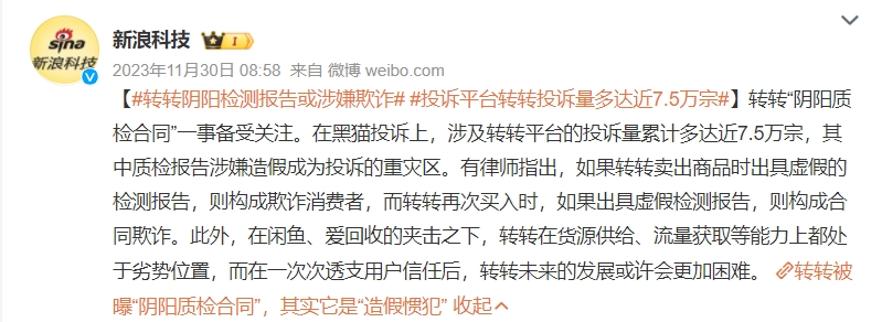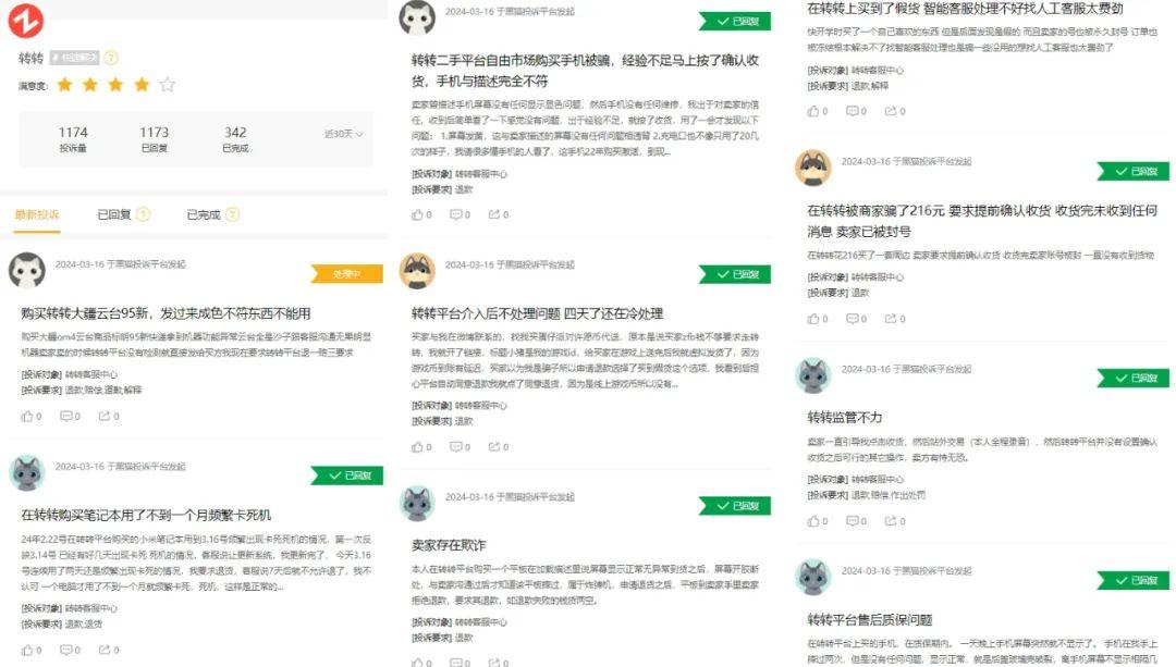 作者 | 姚悦 编辑 | 趣解商业 “在转转租手机堪比高利贷”“趣租机利息达本机价值的49%”“说逾期就付全款,还给通讯录所有好友打电话发短信,对生活造成很大影响”“二手手机官方验机报告和实际情况严重不符”……许多消费者在“黑猫投诉”平台上发起这样的投诉。 在“黑猫投诉”平台上,二手电商“转转”近30天的投诉量就已经超过1100条,累计投诉量有近80000条。 ![]() 图片来源:黑猫投诉截图 另据“网经社”旗下电商大数据库“电诉宝”监测数据显示,2023年转转共获得17次消费评级,3次为“谨慎下单”,14次为“不建议下单”。 ![]() 图片来源:电诉宝 2023年,正是“转转”真正意义上的转型升级头一年。二手电商行业整体增量减速,玩家一边拓展业务边界,一边发力存量变现。2022年11月,行业“三巨头”之一的转转宣布转型升级,打出“循环经济产业公司”的前沿概念。 现在看来,“转转”转型这一年来,一边“高调”地介入到交易环节中;另一边则“低调”地扩张金融业务。然而,这两方面,却同时使转转招致颇多争议,典型如其“趣租机”业务被指“明租实贷” ,还有被网友实锤“阴阳合同”事件。 二手电商玩家竞争日趋白热化,“三巨头”其二的闲鱼、爱回收各自长板突出,“新玩家”抖音、快手“携流量”来势不弱。高呼“二手拯救世界”的转转,会拿什么“拯救”自己? 01.“趣租机”被指“明租实贷” 近一年,关于转转“金融业务”的消息逐渐增多;其中,就包括转转在平台“我的钱包”功能中上线的类金融产品“趣租机”,该模式为“以租代购+到期续租/买断”。平台介绍其提供优质3C数码租赁服务,但却逐渐陷入“明租实贷”的舆论中。 在“黑猫投诉”平台上搜索“趣租机”,出现370余条相关投诉;其中有不少消费者投诉指向“趣租机”疑似“高利贷”。 2月8日,就有消费者在黑猫投诉上发起投诉称:“趣租机利息过高,新机发售时我租赁的这台机器的配置的发售价格是6100,租机价格全款是9632,不考虑折价的问题,利息高达本机价值的49%。” ![]() 图片来源:黑猫投诉截图 3月15日,“趣解财经”在转转APP上看到,99新的iPhone 14 Pro是“趣租机”上“最火”的iPhone产品,已租2.7万台。以国行金色256G版本为例,租期12个月,首月租金335元,后续每月455元;如果租赁期满后,可以选择直接归还、续租或支付尾款买断,买断价格为2795元。 照此计算,该款手机用“趣租机”租赁12个月的花费为(首月335元+455元x11个月+到期后2795元买断价),即8950元;而8950元已经超过了 iPhone14Pro (256G)的发售价8899元。 而在转转的二手交易页面,99新的iPhone 14 Pro (国行金色256G版本),最高价7228元,最低价6018元。如果参考这个价格,转转“趣租机”12个月的利息约占本金的24%-49%。而且,二手交易页面下,还有一定满减和补贴,且多数有“分三期免息”;对比下来,“趣租机”的相对利息会更高。 ![]() 图片来源:转转APP截图 从模式上来看,“趣租机”和“分期购手机”几乎没什么区别,但在利息的计算上明显更加复杂,甚至很多比平台分期购手机的综合利率要高。 除了利息高,黑猫投诉上,还有不少用户反映“趣租机”存在“暴力催收”的现象。 2月20日,有消费者在“黑猫投诉”平台上发起投诉称,“在转转租赁一个手机,期间逾期一段时间打电话,发短信恐吓,网暴通讯录。逾期解决过后,打电话说逾期就付全款,同时给通讯录所有好友打电话发短信,对生活造成很大影响。” ![]() 图片来源:黑猫投诉截图 据“趣解商业”了解,早在2019年左右,转转就开启了“消费贷”的互联网金融之路。最先在平台上线的是分期商城,后“低调”升级为“发条分期”和“发条借钱”;之后,转转的金融业务一直未停止。 当前,除了“趣租机”,在转转APP页面“我的钱包”类目下,还有发条借钱、发条分期、借钱优选、安逸花等金融产品;除了安逸花为马上消费旗下网贷品牌,发条借钱、发条分期、借钱优选均为网贷超市,再次为其他网贷产品引流。 ![]() 图片来源:转转APP截图 发条借钱与桔多多、钱小乐、豆豆钱、小赢卡贷四家网贷平台合作,在相应页面显示“大牌合作、正规机构、专业服务、安全合规”;但在“黑猫投诉”平台上,桔多多、豆豆钱、小赢卡贷各也有大量消费者投诉。 以桔多多为例,在“黑猫投诉”平台上搜索“桔多多”关键词,有累计超17000条投诉,其中涉及“暴力催收”、“扣高额费用”、“利息不合理”、“泄露隐私”等问题。新媒体“WEMONEY研究室”就曾在2022年报道指出,桔多多APP借款被用户质疑会员费就是变相的服务费,抬高了用户的借贷利息,有的借贷年化利率超36%。 ![]() 图片来源:黑猫投诉截图 中国企业资本联盟副理事长柏文喜表示,那些提供贷款信息、产品比较或者链接到其他贷款服务的平台,可以称为导流平台;在国内,这样的平台在法律上有一定的责任和义务,特别是在保护消费者权益方面。“例如,如果导流平台在推荐贷款服务之前未进行适当的审查,或者知道贷款平台存在问题但仍然推荐,可能会被认为存在过失。” 有网友曾调侃“互联网的尽头是金融”,对于积淀了一定流量的转转来说,选择涉足金融业务也在情理之中。但值得注意的是,据天眼查显示,转转运营主体北京转转精神科技有限责任公司拥有的13项行政许可中,尚没有看到金融相关牌照。 02.“阴阳合同”暴露模式问题 如