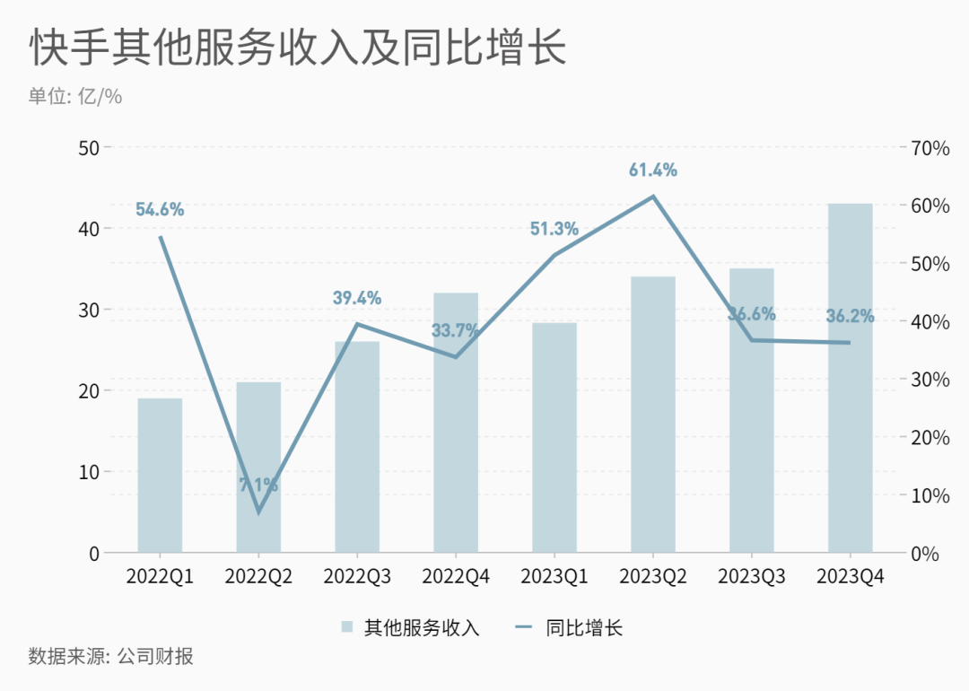 来源:新立场Pro(ID:xinlichang66) 作者:公白飞 编辑 :李凡 二季度扭亏为盈,三、四季度超预期盈利,年底宣布自上市以来最大的一次组织架构和管理层调整,2023 无疑是快手的分水岭。 昨天(3.20)快手发布财报,数据显示,2023 年全年总收入 1134.7 亿元,同比增长 20.5%;全年经调整净利润和期内利润均实现扭亏为盈,其中经调整净利润达 102.7 亿元。线上营销服务、直播和其他服务(含电商)对年收入的贡献占比分别为 53.1%、 34.4% 和 12.5%。 四季度总营收为 325.61 亿人民币,同比增长 15.1%;经调整净利润为 43.62 亿人民币,去年同期为亏损 4500 万人民币。 纵观其核心业务,快手去年几乎踩中了所有市场兴奋词,电商、本地生活、短剧、下沉市场,虽然从结果来看,都不算各个领域里最出挑的。目前其围绕广告 - 电商 - 直播构成的商业模型已经基本稳定,但市场审视的目光依旧苛刻,在确保核心业务增长的同时,新故事不能断档。 另一条暗线是互联网渗透率基本触顶,无论是月活用户规模还是人均使用时长都不再会有爆发式的增长。短视频在过去几年是吃到互联网规模红利最多的一条赛道,总量少有拓展空间之后,企业需要展现出足够的后劲。 对此快手 2023 年经历了两次架构变动,先是在 8 月改革职级体系,包括启动单序列职级,压缩档位;后是在 12 月将数条业务线重新整合划分部门。新架构下的内容和商业化势必有更紧密的协作,接下来的看点是,全站统一指挥,业务四面出击的方针,有没有换来对等的高效盈利。 01、内循环挑起大梁,外循环盯上新贵 流量平台的商业化设计都是以用户行为为依据,快手财报惯例会披露更详细的用户数据,给到多个角度的指标。 ![]() 四季度快手应用的 DAU 和 MAU 分别为 3.825 亿和 7.004 亿,同比分别增长 4.5% 和 9.4%。同一期间,快手应用的日活跃用户日均使用时长为 124.5 分钟,上个季度为 129.9 分钟。 总量之外还需关注平台内容在各行业的延展性,此处结合 QuestMobile 的统计,快手用户在本地生活、汽车、房产、求职招聘等行业活跃及渗透持续提升。综上来看有两个趋势。 ![]() (来源:QuestMoblie) 用户活跃度仍在增长,增速有一定放缓,从使用时长来看用户粘性略有下滑。总体而言流量与社区“信任”氛围相对稳定,这是核心业务增长的底气。 细分领域渗透率提升,意味着垂直赛道的商业化有更多可操作空间,这点将在后文新业务观察中展开。 本季度快手线上营销服务收入为 182.03 亿元,同比增长 20.6%。 具体来看,内循环广告与电商业务表现绑定,继续在广告收入中挑大梁。在上一轮组织架构变动后这种绑定更进一步,快手 “内循环中小客户中心” 由商业化事业部移向电商事业部。《晚点 LatePost》在报道中指出,商业化部门希望广告流水越高越好,但电商部门希望广告主能用更少的广告费用撬动更多销售额,以便更多商家入驻,提高平台整体 GMV。此次变动显然有意平衡这一矛盾。 外循环广告则关注细分行业表现。程一笑曾在 Q3 财报电话会中透露,付费短剧在快手投放消耗逐月提升,同比增长 300%,环比增长 50%,短剧无疑是快手站内的“内容新贵”。根据快手公布数据,2023 年快手短剧日均 DAU 为 2.7 亿,每日观看 10 集以上的重度微短剧用户数达 9400 万,意味着短剧日活占快手整体日活的 7 成以上,有希望成为提高用户活跃与用户粘性的新引擎。 以行业视角来看,快手本是最早发力短剧的平台之一,但 2023 年迎来一波风口期后,短剧赛道一时之间烈火烹油、竞争加剧,快手的先发优势没能完全展现。内容供给上,不止有抖音全力跟进创作激励,爱优腾这类长视频平台也纷纷下场,在此背景下,还未出现在多渠道均取得领先优势的短剧平台。 不过商业变现上,短剧正处于等待进一步开发的状态,当前主流的变现模式包括平台分账、广告植入和内容付费,具体操作还有很多改进的空间,变现效率可能是下一轮竞争的赛点。 相比之下,直播业务开始走低调求稳的路线。四季度快手直播业务收入同比持平,环比增长 3.4% 至 100 亿。 近几个季度直播业务营收算是稳中有进,有 2023 下半年以来监管趋严的原因,平台还在拿捏管理尺度以确保长期生态健康,“蛰伏期”可能还会持续一段时间。 02、GMV 强势,但营收还在找增量 四季度快手电商 GMV 同比增长 29.3% 至 4039 亿,电商全年 GMV 首次突破万亿规模达 1.18 万亿元。 ![]() 不过,主要由电商拉动的其他服务收入 Q4 同比增长 36.2% 至 43 亿,增速略微低于上季度的 36.6%,相比 GMV ,营收表现不算特别出众。此前快手一直有意强调先做大电商生态,包括成交量、商家规模和用户满意度,再考虑变现效率。盈利成为“主旋律”后,后者的重要性势必会上升。 影响电商平台货币化率的因素多样,比如服装和快消这些利润率更高的品类通常会设置更高的佣金扣点,以及品牌商家在广告投放和 CPC 付费上会更积极,都有助于提升货币化率。财报显示,四季度大促期间,快手电商品牌商品交易总额同比增长 155%。知名品牌自播商品交易总额同比翻倍增长,主要受消电家居、男装运动等品牌密集型行业拉动。 但此处需要注明,快手电商营收有很大一部分被划在了在线营销服务收入中。前文提到的内循环广告,即快手平台内的商家或主播花钱买推广的费用,按惯例应是电商收入的一部分。除开占大头的广告收入,电商营收再找增量提升纸面上的货币化率,就不那么容