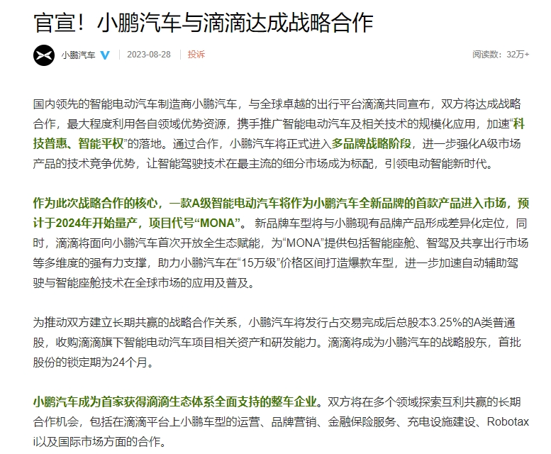 作者 | 刘亮 编辑 | 趣解商业 近日,小鹏汽车(9868.HK)发布了2023年第四季度和全年财务数据。从营收来看呈现涨势,小鹏汽车2023年营收306.8亿元,同比增长14.2%;其中,汽车板块营收280.1亿元,同比增长12.8%。从全年交付情况看,全年交付量为14.2万辆,同比增长16.7%。 ![]() 图片来源:微博截图 2023年,小鹏汽车净亏损103.8亿元,相较2022年91.4亿元的净亏损呈现扩大趋势。全年毛利率为1.5%相较2022年11.5%下跌明显;汽车业务全年毛利率是-1.6%,也就是说小鹏卖车已经进入了“毛亏”阶段。 为了尽快恢复销量规模,小鹏汽车也使出了大招,推出了价位在10-15万元的新车MONA,并且开通ToB销售渠道,和滴滴合作。 自2014年创立,今年10岁的小鹏要“跑滴滴”来自救? 01.小鹏,“变天”? 曾经的“造车新势力”三巨头,各有各的“地盘”;理想主打“奶爸车”、蔚来主打“高端化”,而小鹏主打“智能化”。 换言之,理想汽车卖市场、蔚来汽车卖服务,而小鹏汽车则卖技术。但随着行业“智能化”内卷,小鹏的竞争优势不再明显。 ![]() 图片来源:罐头图库 2022年下半年,何小鹏在一次财报会议上说道,“智能化领先后,电动化也要领先”。当时业内人士对此的看法就是,小鹏终于要从科技定位中走出来,重新寻找市场痛点了。 2023年,随着王凤英的加入,小鹏大刀阔斧的改革开始了;到了今天,王凤英加入已超过400天,小鹏也已经彻底“变天”。 其一,团队“变天”。 3月13日,小鹏汽车 “核心管理团队”成员由5位减少为3位。从小鹏汽车官网来看,身为总裁的王凤英紧随董事长/CEO何小鹏之后,在核心管理团队排位第二;而小鹏汽车的两位联合创始人夏珩和何涛已经从核心管理团队退出,成为了“终身荣誉”成员。 ![]() 图片来源:小鹏汽车官网截图 至此,小鹏汽车初期的三位创始成员——夏珩、何涛、杨春雷都基本上淡出了小鹏汽车的管理层。针对此次高管层的变动,小鹏汽车方面表示,联合创始人夏珩先生和何涛先生将以小鹏汽车终身荣誉顾问身份继续支持公司发展。 这也意味着,小鹏汽车将正式进入到由何小鹏完全主导的时代。而小鹏汽车的新三人“核心管理团队”可以说分工明确,何小鹏定调公司战略、产品技术方向、带领团队寻求合作伙伴,王凤英主抓公司产销工作,副董事长/联席总裁顾宏地则对小鹏汽车投融资业务有着重要的作用。 其二,渠道“变天”。 据“趣解商业”了解,在“新势力”品牌中,大部分品牌都是坚持自营,小鹏则是自营与分销“混搭”。去年开始,小鹏汽车也陆续被传出增加分销体系分量的消息;今年3月,澎湃新闻等多家媒体报道了小鹏汽车向经销商“压货”的情况,多位小鹏汽车的经销商表示,每个月要跟小鹏汽车采购目标销量一半的车辆。 对此,小鹏汽车方面确认了该报道的真实性,并且表示“半个月库存是为了更快地交付,提升效率,让经销商有车卖。国内经销商一般采用两个月库存,半个月库存并不是压库,而是我们‘直营+经销’混合的创新模式。” ![]() 图片来源:微博截图 在本次的财报会议上,小鹏汽车也表示渠道的扩张和变革正是公司2024年销量增长战略的重要一环。针对此前传闻的“要求经销商储备库存”的消息,何小鹏表示,从2024年二季度开始,公司启动了创新的经销商合作模式,通过建立半个月左右的短期渠道库存,大幅度加快终端交付速度,目的是激活经销商的积极性。 按照管理层的计划,2024年小鹏还将加速渠道下沉。“到今年三季度,销售门店的数量将会增加到600家,并且在新品牌上市后持续扩张。”何小鹏表示。2023年,在王凤英的推动下,小鹏汽车推行了名为“木星计划”的渠道变革方案,末位淘汰了超过130家门店,同时引进了160多家经销商,并新增覆盖了40个低线城市。 02.从“开飞车”到“开滴滴” 这套行云流水的经销商管理打法有很浓的“王凤英风格”,王凤英以前在长城汽车就因这套严格的经销商管理体系而被称为“铁娘子”。 这一波经销商“换血”下来,直观反映在财务数据上就是运营效益杠杆的增加。由于经销商数量和提成的增加,2023年四季度小鹏汽车营销费用同比增加了10.3%,环比增加了14.4%;而相应地其换来的营收的环比增加超过了50%,因此四季度的运营亏损也有同比和环比的收窄,为20.5亿元。 2024年,小鹏汽车还将加速渠道下沉。为了配合下沉的渠道就要有下沉的产品,于是售价在10-15万的新车MONA即将发布。 ![]() 图片来源:微博截图 据“趣解商业”了解,早在去年8月,小鹏就与滴滴共同宣布达成战略合作,并推出代号为“MONA”的A级智能电动车品牌。与滴滴的合作,意味着小鹏可以有网约车这一重要的渠道,能够和比亚迪秦以及广汽埃安S直接较量。 在本次财报会议上,小鹏汽车透露了一个信号。MONA会有ToC销售也会有ToB销售,“MONA将先从C端渠道开始,受到好评然后是B端渠道的销售。”这也意味着,小鹏要开始“跑滴滴”了。 ![]() 图片来源:微博截图 低价车能够快速走量并打开下沉市场,和B端的合作也会快速增加销量;但是,年10-15万元车型的市场竞争将异常激烈。 乘联会数据显示,2022年中国10-15万元车型市场份额约为31%,到了2023年,市场份额提升至约34%;与此同时,该价格区间的新能源车型渗透率也在不断提升。小鹏MONA要面对的不仅有比亚迪秦、宋、元、海豹等“集团军”,还有哪吒、零跑、深蓝、启源、埃安……等多达170多款热门车型的竞