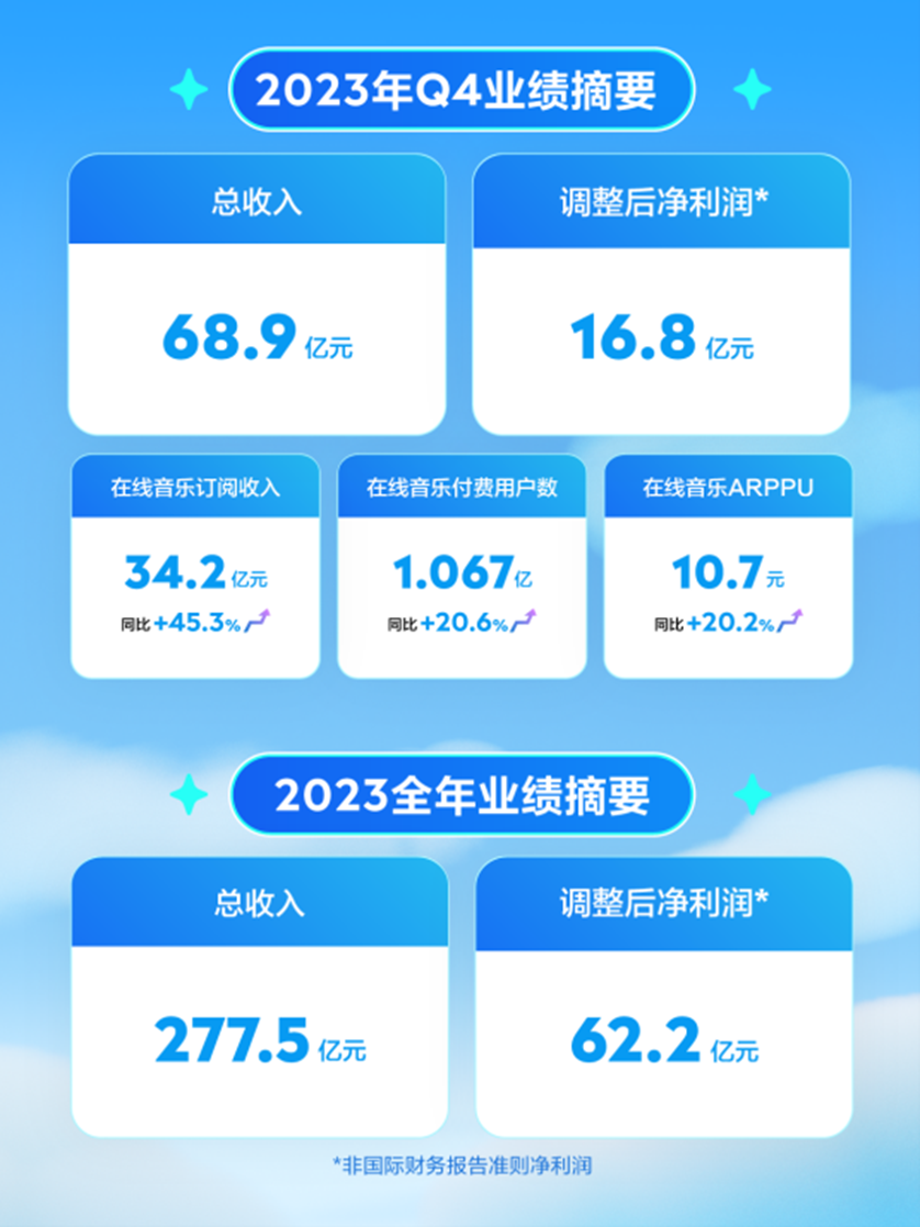 来源:阿尔法工场研究院 3月19日,腾讯音乐娱乐集团(tme.US/1698.HK)发布2023年第四季度及全年财报。财报显示,2023年总营收277.5亿元,同比下降2.1%。其中,在线音乐订阅收入121亿元,同比增长39.1%,占总收入43.6%。首次超过两大核心业务中的另一个——社交娱乐服务。 ![]() 腾讯音乐娱乐集团(下称“TME”)成立于2016年,由酷狗音乐、QQ音乐、酷我音乐和全民K歌等合并而来。核心业务包括两大服务:在线音乐和社交娱乐。2018年,赴美上市。 曾经的盈利担当边缘化 2023年以前,TME的主要收入来源,更多依赖社交娱乐服务。 以2019年Q2季度为例,在线音乐付费用户仅占月活用户的4.8%,营收占总营收仅26.5%。与之相反的是,社交娱乐付费人数,虽然仅为在线音乐的1/3,但营收却远超后者近3倍。总营收占比,超70%,是TME的盈利担当。 这种营收差距,和用户的消费习惯直接相关。人们更愿意为带有社交属性的服务买单,比如直播打赏、全民K歌虚拟礼物等。而为包括音乐单曲、数字专辑等在内的在线音乐服务,付费意愿相对较低。 ![]() 当时有分析人士预测,在线音乐短时间内无法实现盈利,只能发挥引流作用。两条腿走路的TME,并不平衡。 更加阻碍TME前进的是,自2020年以来,作为盈利担当的社交娱乐板块,呈现出明显的逐年下滑趋势。从2020年的198.04亿,到2021年的197.77亿,再到2022年的158.6亿,总营收占比,从67.9%滑落至56%。 在此过程中,TME多次对外强调,业绩下滑是因为受宏观环境、其他平台竞争加剧等多方因素影响。2023年,这些影响继续发挥作用。第四季度同比下降51.6%,全年收入同比下降34.2%至人民币104.3亿元,首次跌至在线音乐之下。 对此,TME执行董事长彭迦信表示“2023年是TME转型的关键之年”。这和社交娱乐与在线音乐的营收变化,相互验证。 转型的背后,是出于无奈还是积极的调整?社交娱乐收入的递减,是否会加大在线音乐的压力?这些问题,都将持续影响TME接下来的发展。 监管带来压力 众所周知,“社交”是融入进腾讯(TCEHY.US/00700.HK)基因里的,是包括微信、QQ以及TME等业务在内的最核心竞争力。 腾讯凭借“社交”这条中国企业中最为宽广的护城河,积累了大量用户,在一系列新产品、新业务开拓中,无往不利。TME的发展,也同样遵循这条逻辑。 随着科技发展和娱乐业态变化,TME所处的“音乐”赛道,产品形态和用户体验不再仅仅局限于“听”,越来越多元化。早在2017年,我国泛娱乐核心产业产值就超5000亿元。其中,网络音乐在其中占据越来越重要的位置。 和网易云(9899.HK)主打小众垂直评论、虾米音乐背靠阿里巴巴(BABA.US/09988.HK)大文娱不同,TME则自带腾讯社交基因,布局“发现、听、唱、看、演出、社交”多元产品和服务。主要收入来源为付费订阅、数字专辑、虚拟礼物和增值会员,这些都依托于社交属性。 比如,不管是“全民K歌”,还是“酷狗音乐”和“酷我音乐”的秀场直播、泛娱乐直播,都不再局限于“听”,而是利用用户的“社交”需求来盈利。 尤其是K歌的版权费、直播的打赏,都为TME提供了稳定的现金流,以及相对活跃的用户数量。除此之外,包括TME在内的平台,还一度把社交属性和饭圈文化有机结合,助推粉丝“打榜”。 以TME旗下“酷狗”为例,其专辑曾设置赠送榜、铁粉榜,榜单还有踢榜功能,和直播间的打赏榜类似。比如,肖战《光点》数字专辑下,铁粉榜榜首共购买了同一张专辑23399次,按单价3元计算,总花费7万元。 ![]() 更让TME大赚的是,《光点》一上线就被粉丝买爆,以超5000万张的销量,一度登顶全球音乐榜。1.5亿的单张专辑收入,完全可以覆盖版权等各项成本。而且,肖战并非个例。类似的情况,比比皆是。 由于“打榜”以无经济来源的学生为主,引起了不良的社会反响,新华社等官媒直接点名批评QQ音乐、酷狗音乐等App诱导粉丝氪金、重复消费等行为。给TME社交娱乐的一个重要收入来源,按下整顿键。 除了“打榜”,TME旗下平台上的内容以及直播玩法,也在面临越来越严格的监管。 早在2020年,广东省“扫黄打非”部门就曾对“全民K歌”APP传播色情低俗歌曲、青少年模式形同虚设等突出问题进行查处。腾讯进行30天整改的同时,下线了“交友陪玩”功能,这恰恰也是社交娱乐的范畴。 近两来,国家《网络主播行为规范》和“清朗·网络戾气整治”专项行动等相继出台,主播分类分级管理、体现新规等一连串动作,让TME社交娱乐另一个主要收入来源的直播,营收进一步收窄。 2023年全年社交娱乐收入的持续下降,也印证了监管带来的影响。 断臂转型 无论是出于主动还是被动,TME从依赖社交娱乐向在线音乐转型,都要经受断臂之痛。 道理很简单,就体量而言,二者相去甚远。据《中国数字音乐产业报告(2022)》显示,我国在线音乐市场规模约180亿,而包括直播和K歌在内的社交娱乐规模却近1000亿,是前者的5.56倍。 从付费意愿上来看,用户也更愿意为社交娱乐花钱。比如,去年三季度,TME社交付费用户人均付费,是在线音乐的8.37倍。 用户不仅在付费习惯上,有明显偏向,而且随着影音业态深层次发展转变,心智和需求,也在逐渐向短视频平台迁移。 更让TME雪上加霜的是,抖音、快手(01024.HK)等都已经跨界进入音乐赛道。 尤其是抖音在2022年推出的汽水音乐,截至2024年3月6日,iOS已经有3000多万次下载。在app store 排名中,位列音乐分类实时第一,总体评分4.9,高于TME旗下的QQ音乐。另据《2023快