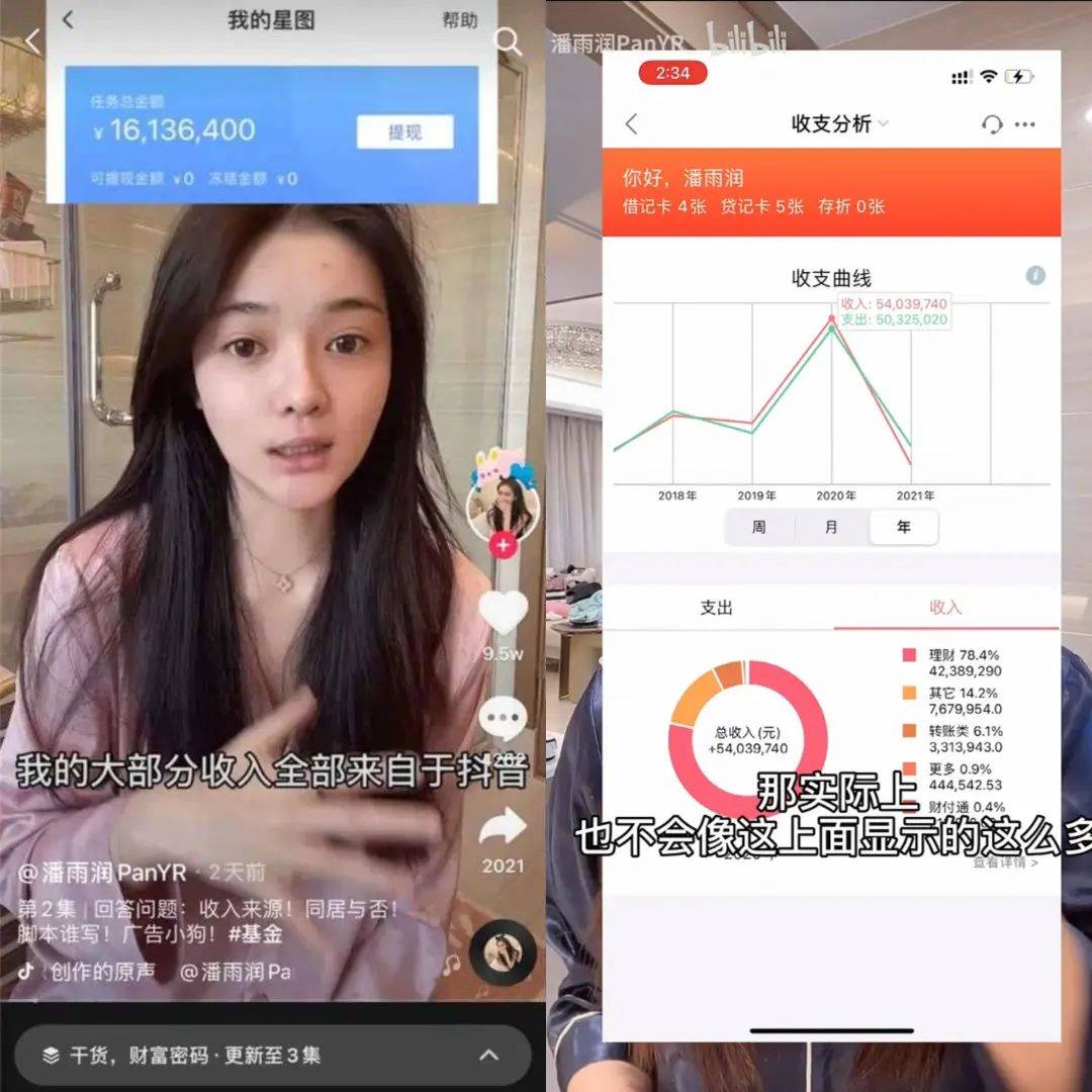 来源 | 电商在线 文|王崭 编辑|斯问 “知道当网红赚钱,但没想到这么赚钱。” 在众多打工人掐着手指算退税还是补税的3月,网红潘雨润在视频中晒出了自己交税9503万元的记录,引发一片热议。按照潘雨润“顶格纳税”的说法,她在2023年的收入将超过2亿元。 ![]() 潘雨润晒出的纳税证明 这个在抖音有着778万粉丝的网红,最早引发全网关注还是因为王思聪,也早早就明白“流量的尽头是变现”这个道理。 2015年,潘雨润在一片争议声中开起淘宝店卖女装,随后卖美妆护肤品,做起个人美妆护肤品牌,又在微博流量下滑时转战抖音,经营起“人设+直播带货”的流量生意。 供需旺盛的网红市场,向来不缺乏新人。互联网瞬息万变,流量中心的阵地不断变换,各路网红的爆火和消亡也被按下加速键,如何持续吸引流量,才是网红们最大的难题。而潘雨润不仅学会了如何制作流量,也早早学会了运用流量,引发全网讨论的“纳税近1亿元”,或许正是她流量生意的一环。 01.纳税近1亿,只靠直播带货? 交了近1个亿的税,潘雨润的收入有多少? ![]() 在“8年实现财富自由”的视频中,潘雨润直言“我觉得这是每一个人应尽的义务,所以我都是顶格交的,不做任何的合理避什么(避税)”。而按照个人所得税最高45%的税率来计算,潘雨润2023年的收入就超过了2亿元。 网红们的收入,向来是个谜,吃瓜网友们往往只能在各路网红偷漏税或是机构平台公布数据的消息下一窥大概。两相对比下,大方晒出纳税证明的潘雨润快速登上了微博热搜,也让不少网友再度为网红的收入震撼,“我一辈子可能都赚不到她纳税的钱”“怪不得大家都想做网红”。 有着778万粉丝的潘雨润,在整个互联网还算不上头部网红,一年收入超过2亿元,靠的是什么? 除去她曾在视频中提及的投资、理财,最容易被直接观察到的,可能就是来自平台的收入。 ![]() 2021年,潘雨润表示抖音收入1613万元 早在2021年,潘雨润就曾在视频中晒出过自己2020年的收支账单,显示收入5403万元,而在另一个视频中,潘雨润晒出了抖音官方星图数据,显示收入1613万元。 在2024年的2月23日,潘雨润就在发布的视频中透露自己的直播间年销售额能有10个亿。而第三方数据平台蝉妈妈显示,在2023年,潘雨润共进行了119场直播带货,场均销售额在500万元—750万元:即便按照每场直播销售额500万元来算,潘雨润在2023年直播带货的总销售额也达到了5.95亿元。 ![]() 同时,蝉妈妈数据显示,潘雨润在2023年带货品类中最多的就是美妆护肤产品,占比达到了50.2%,均价也达到了261.25元。澎湃新闻在2023年的一篇报道中,曾提及相较于其他品类,美妆的抽佣一直以来相对较高,“美妆品类抽佣比例常规在20%至35%,最高的一次做过40%”。按照这个比例来算,2亿元的年收入还在正常区间内。 但“名不见经传”的潘雨润,带货能力为什么这么强? 想在流量速生速死的互联网快速吸粉、变现,离不开“人设”。回看潘雨润2021年在抖音发布的第一个视频,形式类似情感博主,话题涉及女生是否应该同居,她在视频中表示独居生活能让你以后“不害怕失去任何一个人”。 ![]() 不到3分钟的短视频,直接给潘雨润立下“清醒大女主”的人设,也引得不少女性用户在评论区共情。潘雨润的“清醒美女有人爱”合集,10集播放量就达到了4720万,随后还发出了不少关于女生如何“搞钱”,女性如何理财的内容。 与之相对的,就是潘雨润的粉丝构成,蝉妈妈数据显示,潘雨润的粉丝中,有94%是女性。 吸引了足够多的女性粉丝,该如何去变现?潘雨润选择了针对女性赛道的美妆护肤,在讨论同居的视频后发出的内容,就是一条LAMER轻盈如霜的推广视频。 一边做大女主,一边做美妆护肤博主;一边吸引女性流量,一边把女性流量变现。这一套组合拳下来,潘雨润把“人设+流量生意”的模式稳稳立住了。足够的流量,和丰满的人设也为潘雨润的直播带货打下了基础,让她的后期带货做“事业“不容易引发反感。 就连此前透露收入,晒出纳税证明,或许都是打造人设的一部分:独立清醒大女主。在经济足够独立,有了足够的收入证明,似乎也让潘雨润的大女主内容更有说服力。 02.不停歇的流量生意 除了直播带货,潘雨润的商业版图有多大? ![]() 潘雨润视频中出现的公司部分员工 潘雨润多次在视频中表示自己目前经营了一家有着50多人的公司。企查查显示,潘雨润名下关联着8家公司,目前有两家存续中的公司,分别是“天津潘雨润文化有限公司”和“忠县潘润商务信息咨询服务部”。这两家公司名不见经传,但在潘雨润的合作伙伴中,刘晔这个名字颇引人注意。 刘晔是北京达人说文化有限公司的法定代表人与董事长,潘雨润正是美妆垂类MCN达人说的签约艺人,在达人说的介绍中,显示成功投资孵化的业务有气味图书馆、参半牙膏和毕生之妍等品牌。其中,参半和毕生之妍,都是潘雨润多次带货过的品牌。 潘雨润和达人说的合作已经长达9年,而9年前,不少人第一次知道潘雨润,还是因为王思聪。 ![]() 2015年2月,潘雨润在微博发文,“声讨“自己的“闺蜜”朱圣祎,质疑因朱圣祎举报导致自己错失上海戏剧学院的录取。微博刚发出来,就被彼时顶着“国民老公”称号的王思聪转发,站队潘雨润。因为王思聪的转发,众多吃瓜网友涌入潘雨润和朱圣祎的微博,而潘雨润也在后续的回应中透露,自己曾参与过王思聪的生日,“w先生对朋友一贯不